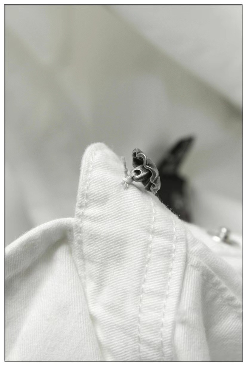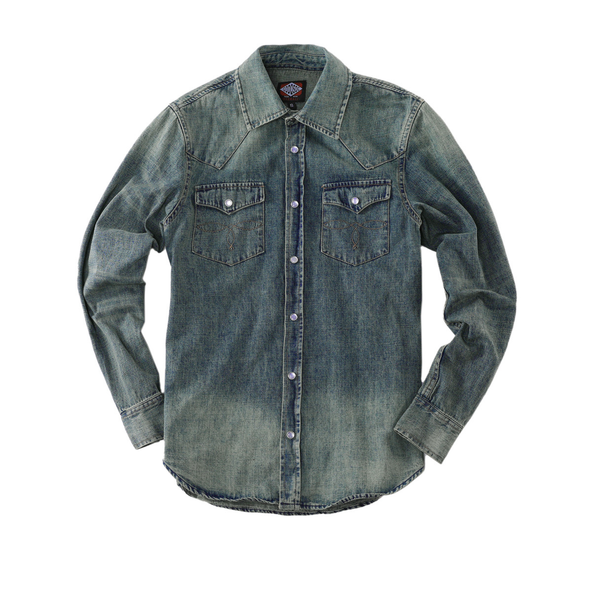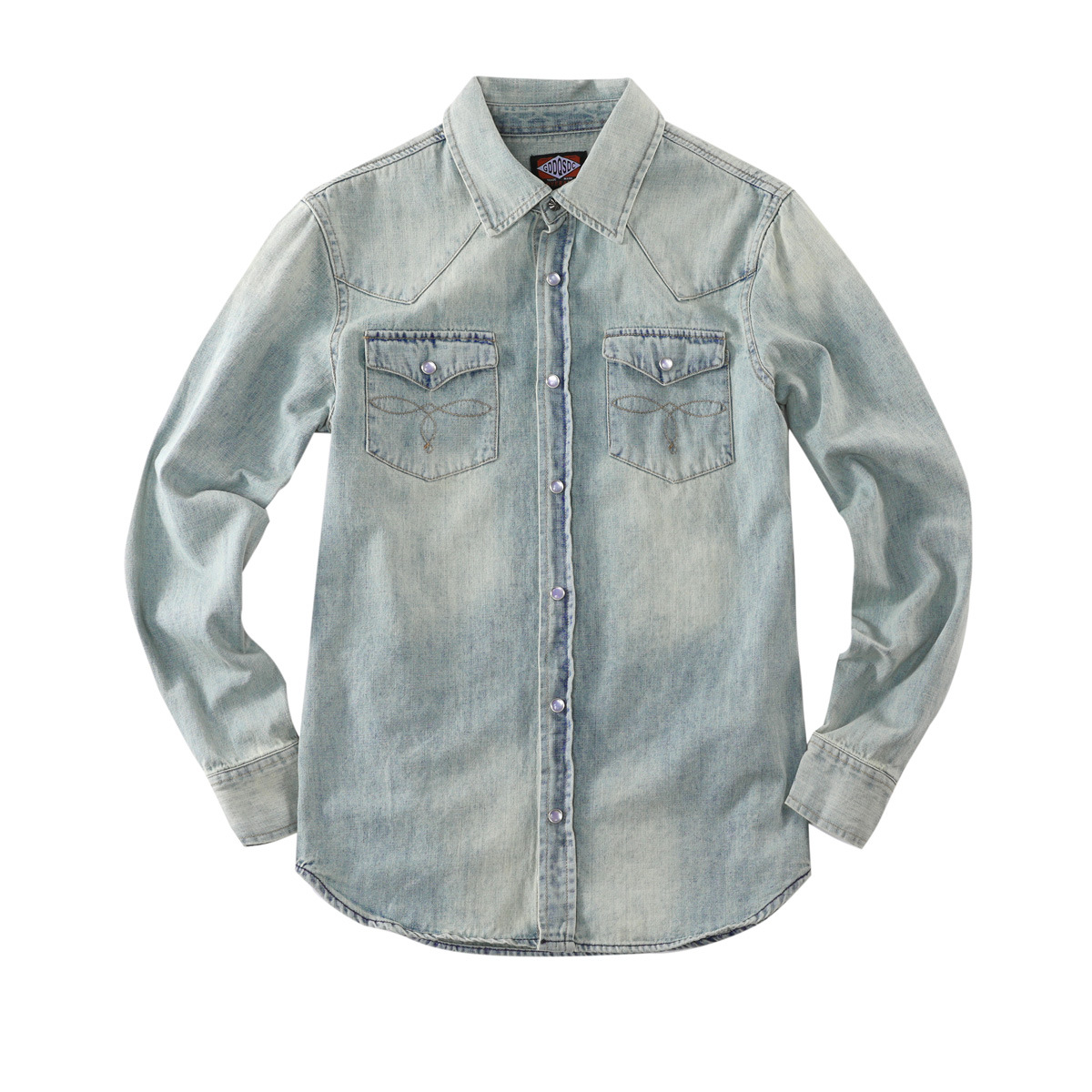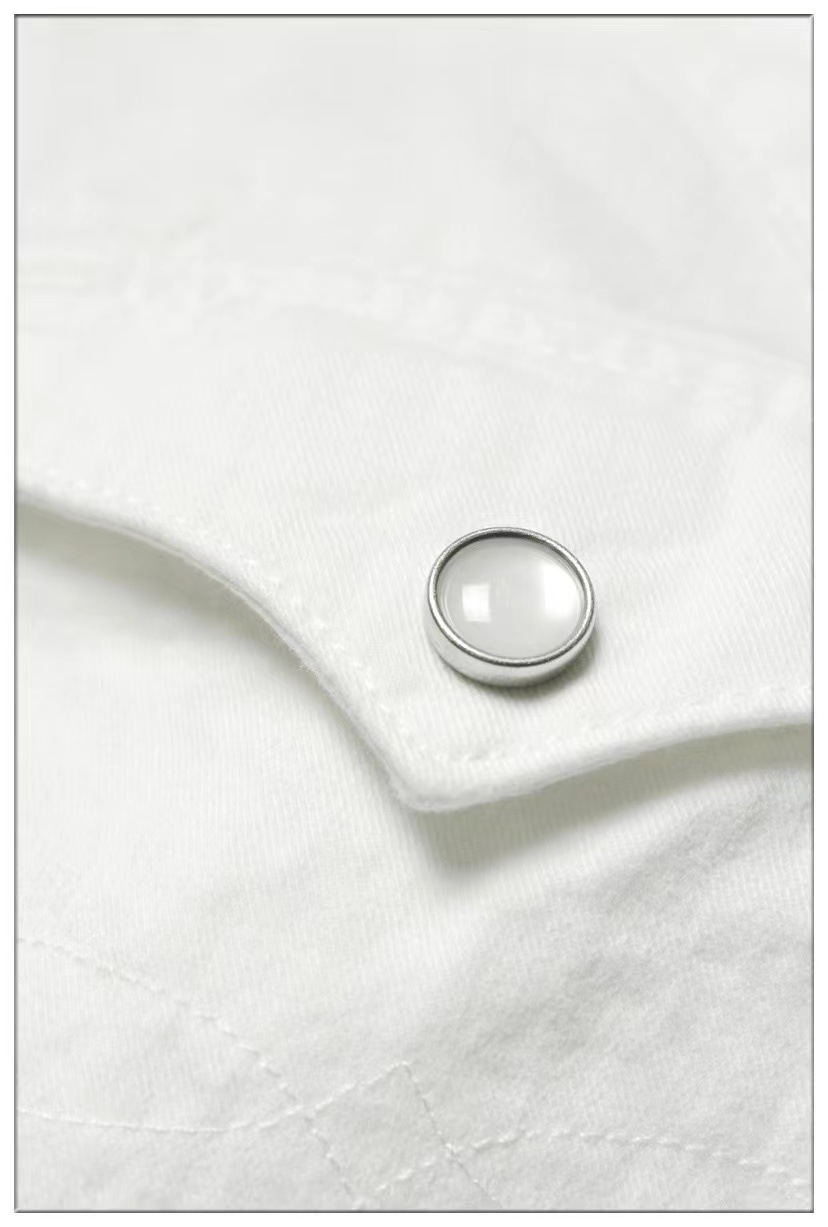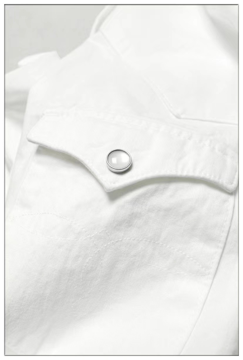 더블 R 작업 긴 소매 아이보리 화이트 세탁 데님 셔츠 남성 버튼 장식 순수 코튼 레트로 미국 스타일 슬림 봄 및 가을
