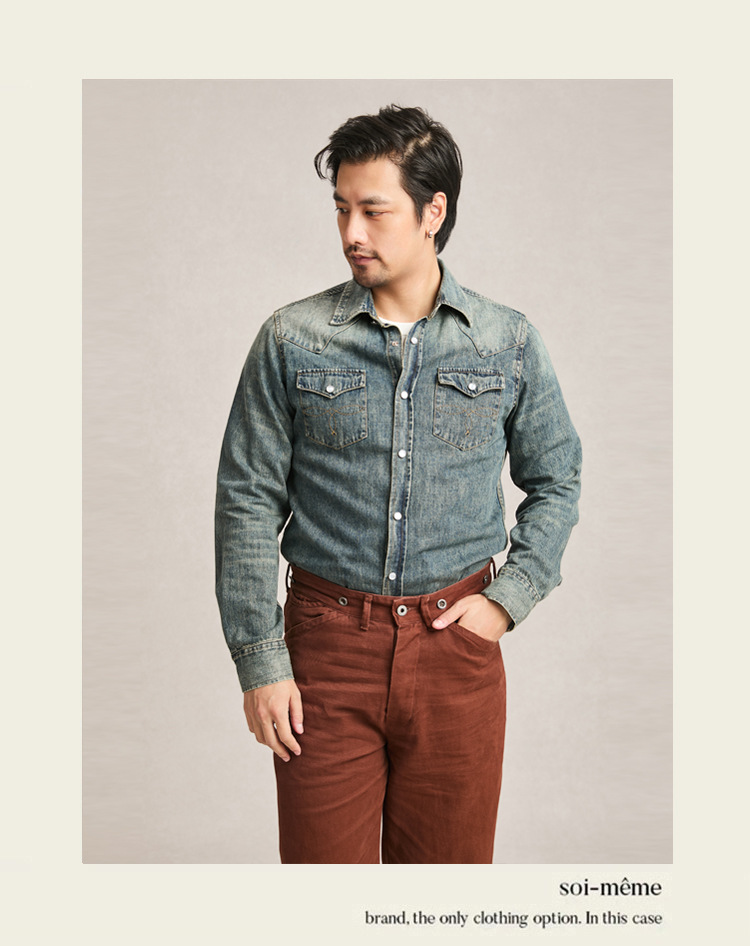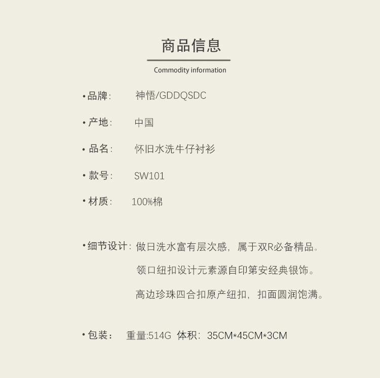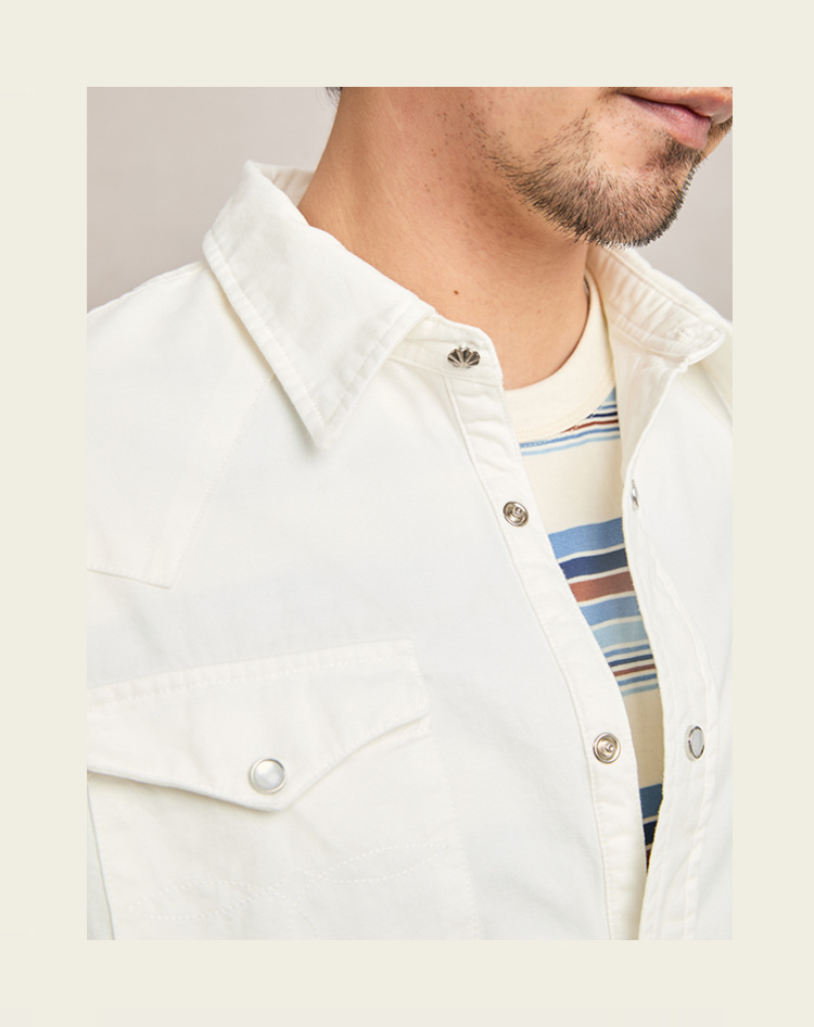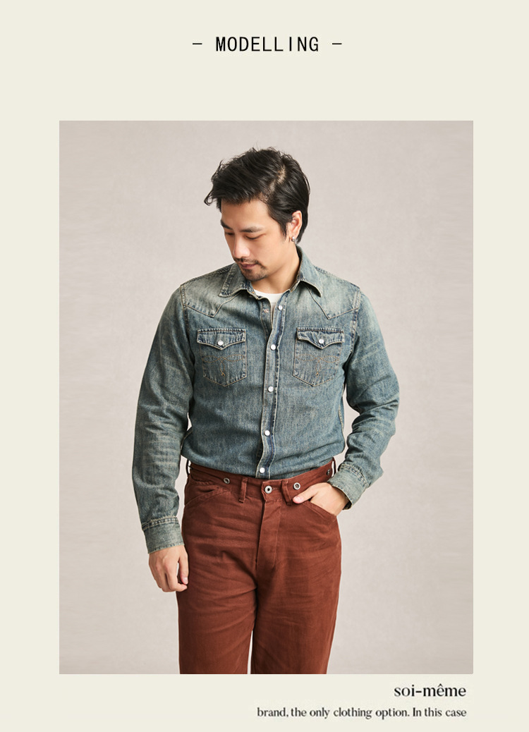 더블 R 작업 긴 소매 아이보리 화이트 세탁 데님 셔츠 남성 버튼 장식 순수 코튼 레트로 미국 스타일 슬림 봄 및 가을스토어 가기