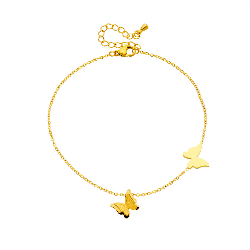 새로운 프로스트 더블 나비 티타늄 스틸 팔찌 여성 인기 수제 디자인 쥬얼리 티톡 인터넷 인기 액세서리 팔찌