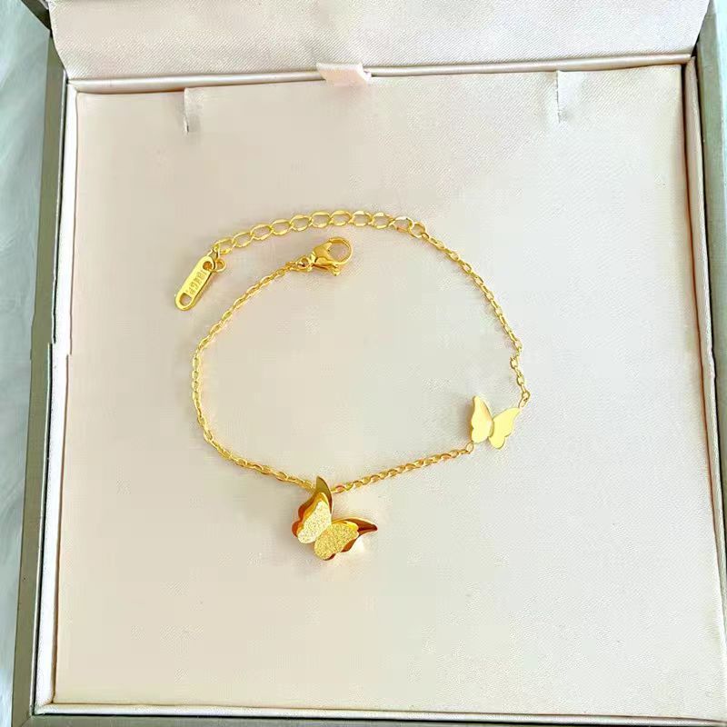 새로운 프로스트 더블 나비 티타늄 스틸 팔찌 여성 인기 수제 디자인 쥬얼리 티톡 인터넷 인기 액세서리 팔찌스토어 가기