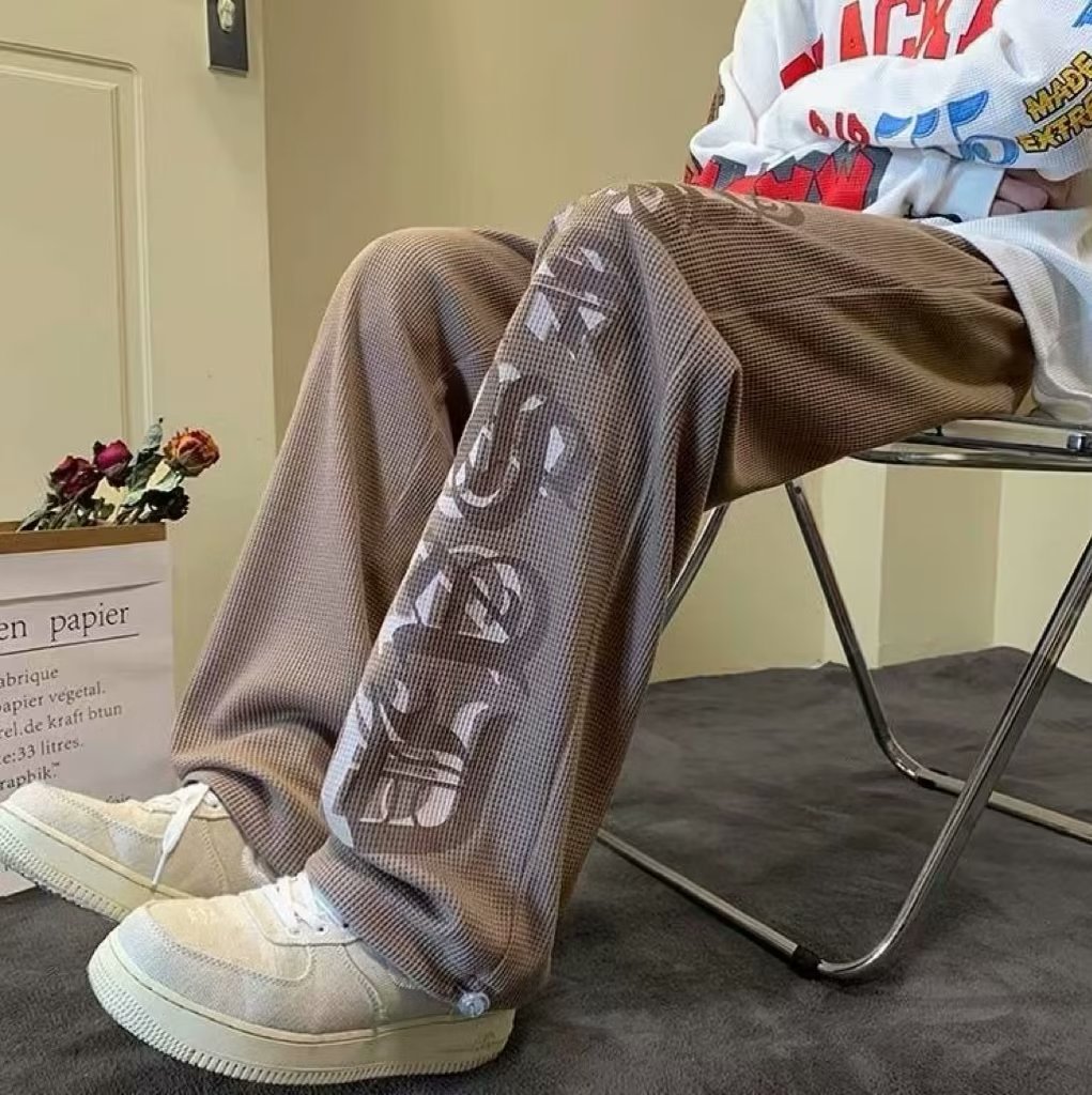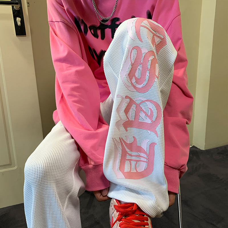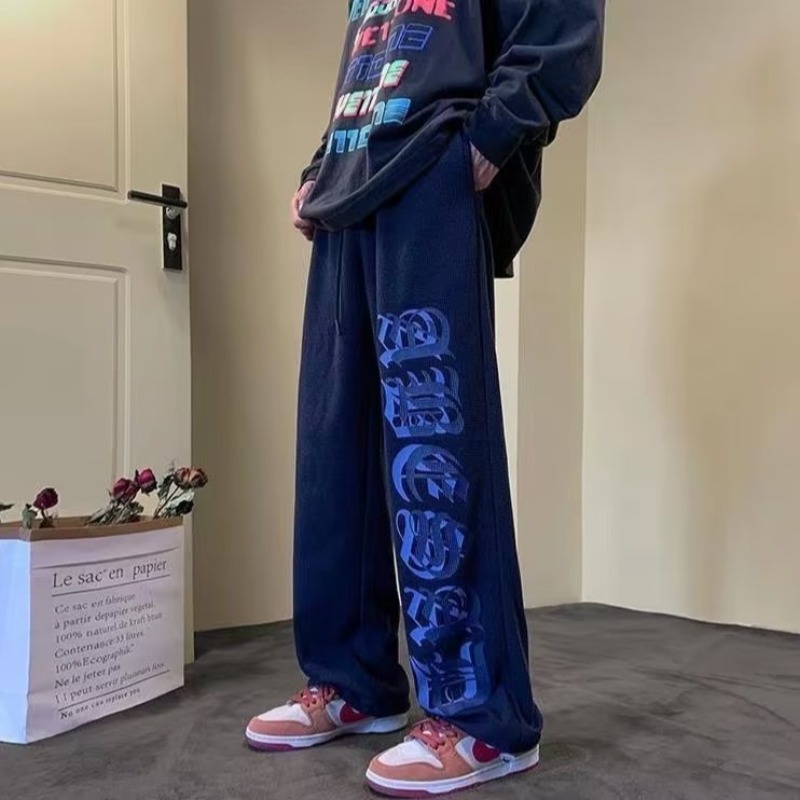 유럽과 미국의 Hiphop Pants Ins 하이 스트리트 패셔너블 와플 아메리칸 스타일 숨겨진 블루 스웨트 팬츠 남자의 디핑 스포츠 힙합 바지스토어 가기