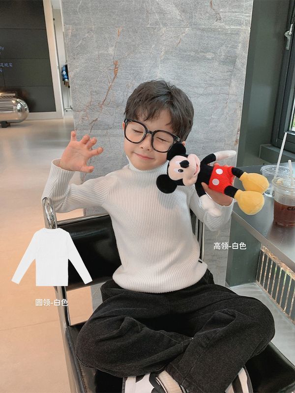 아동복 가을 겨울 소년 핏 스트립 디자인 서양식 크루 넥 니트웨어 어린이 베이비베이스 터틀넥 스웨터 남성용