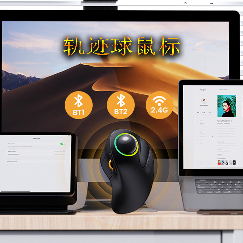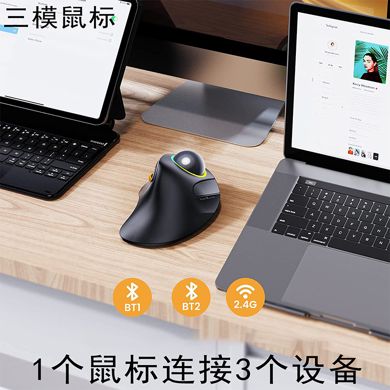 충전식 트랙볼 인덱스 손가락 제어 볼 인체 공학적 듀얼 모드 블루투스 무선 음소거 백라이트 드로잉 오피스 마우스