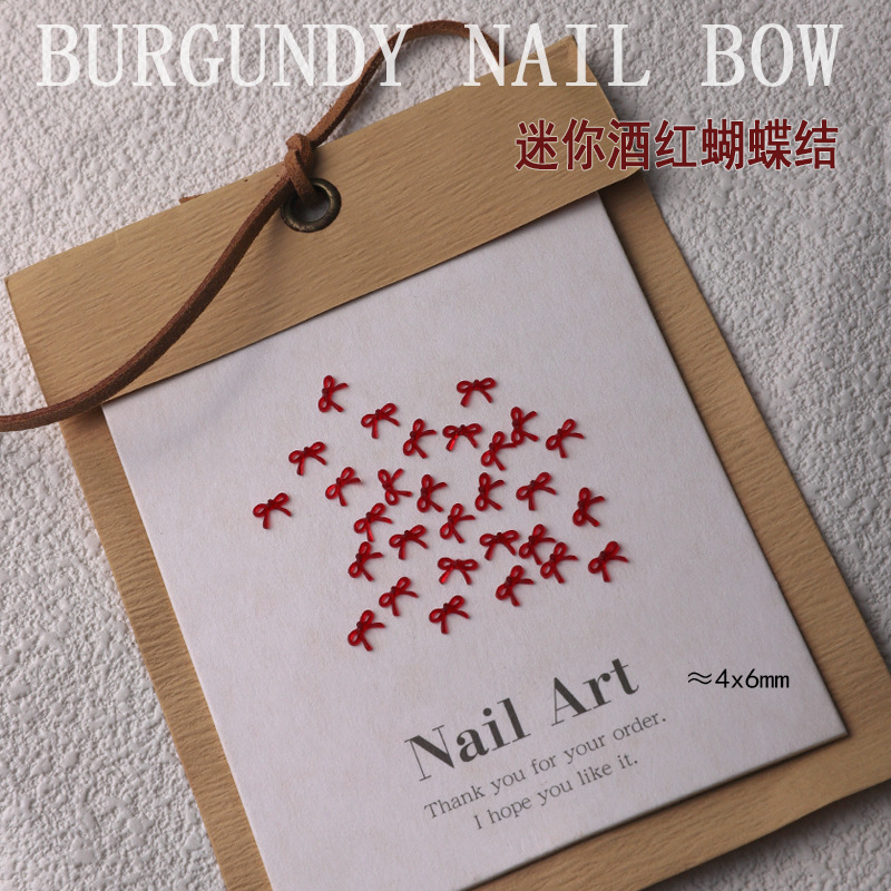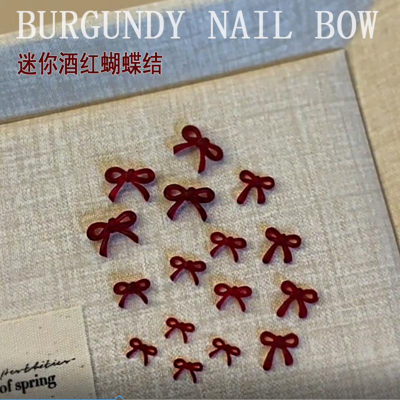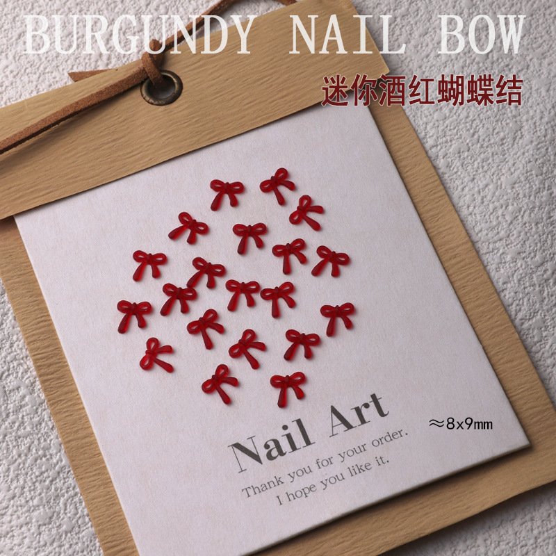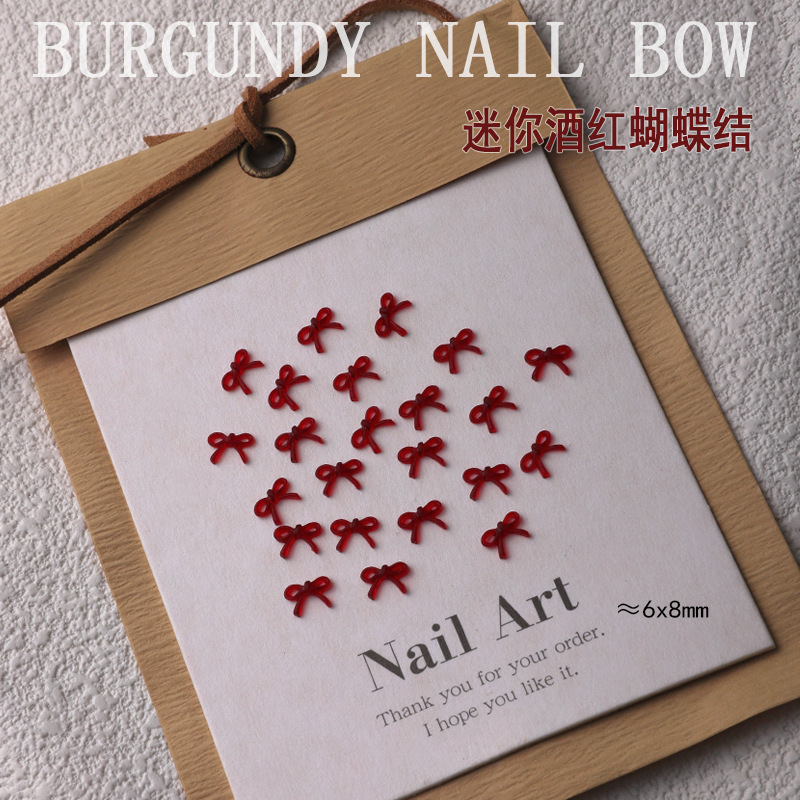 프랑스 스타일 버건디 보우 네일 아트 액세서리 새로운 도착 안 코라 레드 미니 활 네일 수지 다이아몬드 장식품스토어 가기