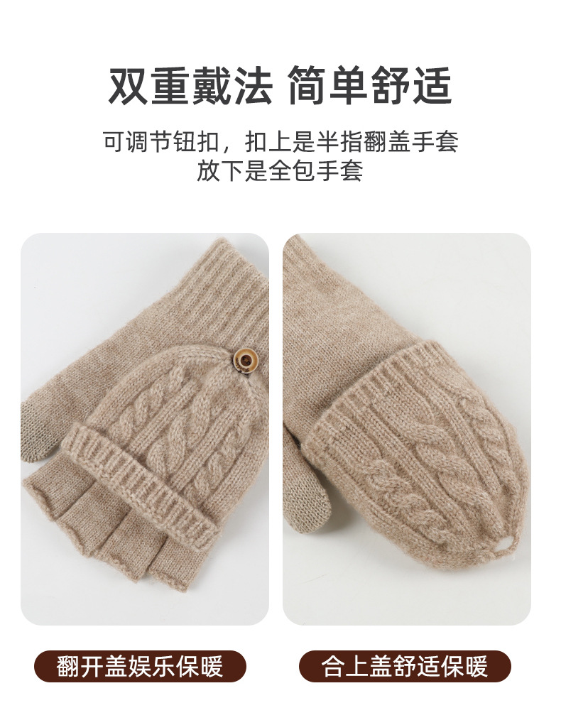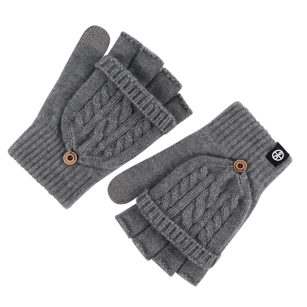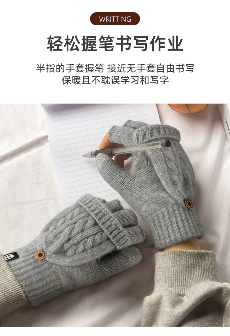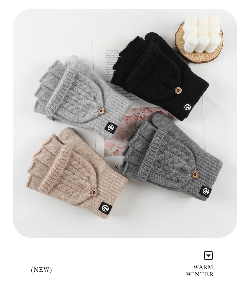 여성용 겨울 플립탑 겸용 반손가락 장갑, 방한 및 보온 학생용 터치스크린 장갑, 남성용 두꺼운 벨벳 오픈 핑거 장갑