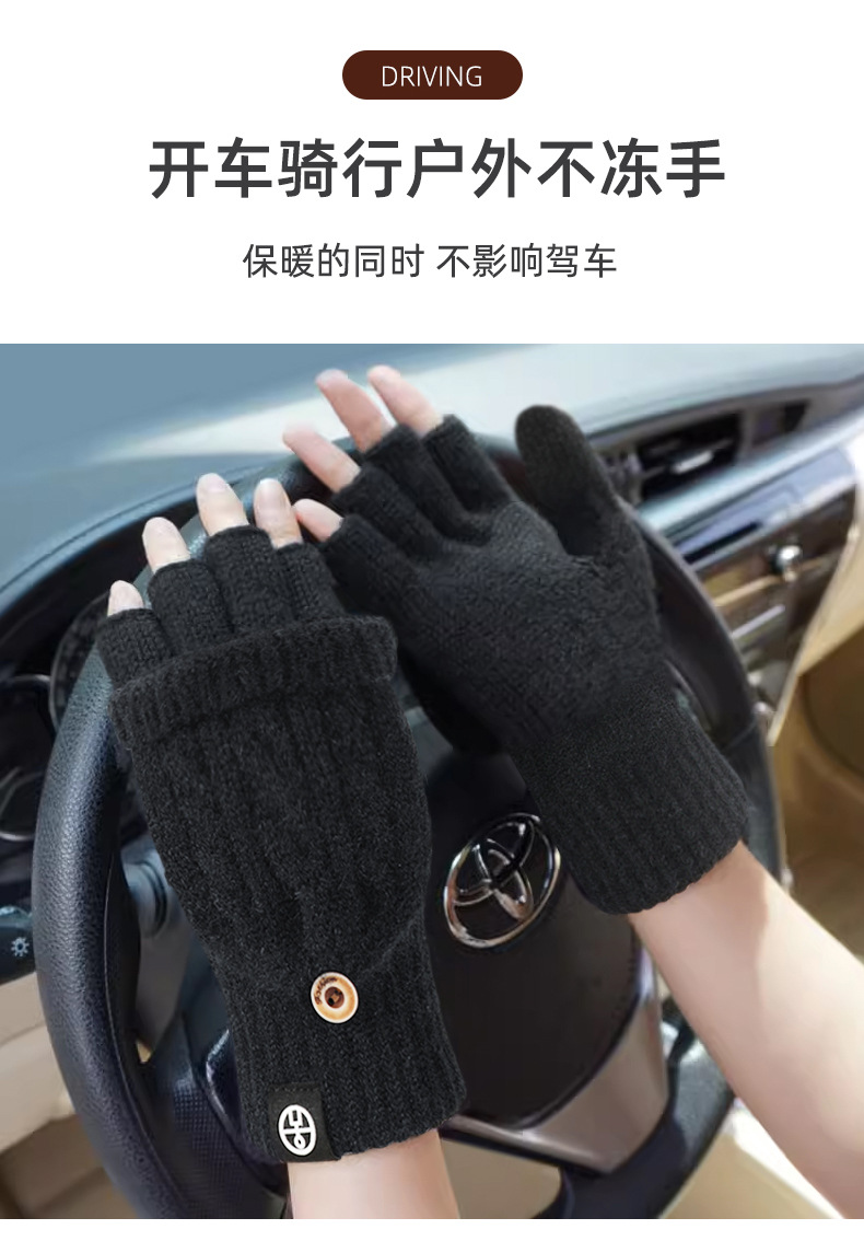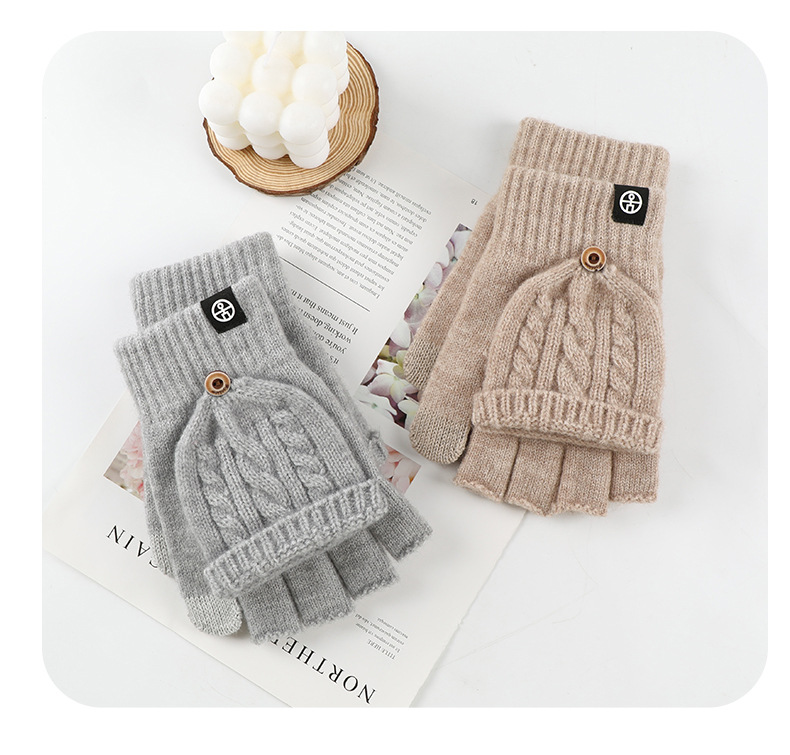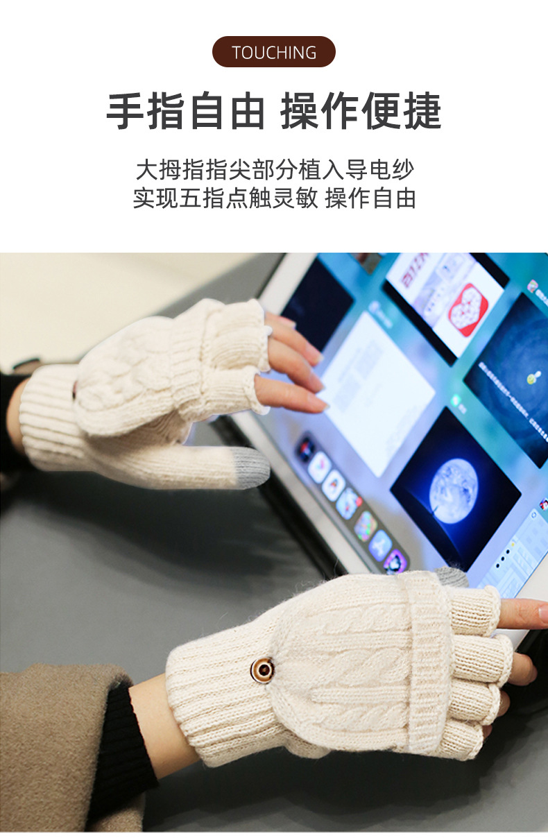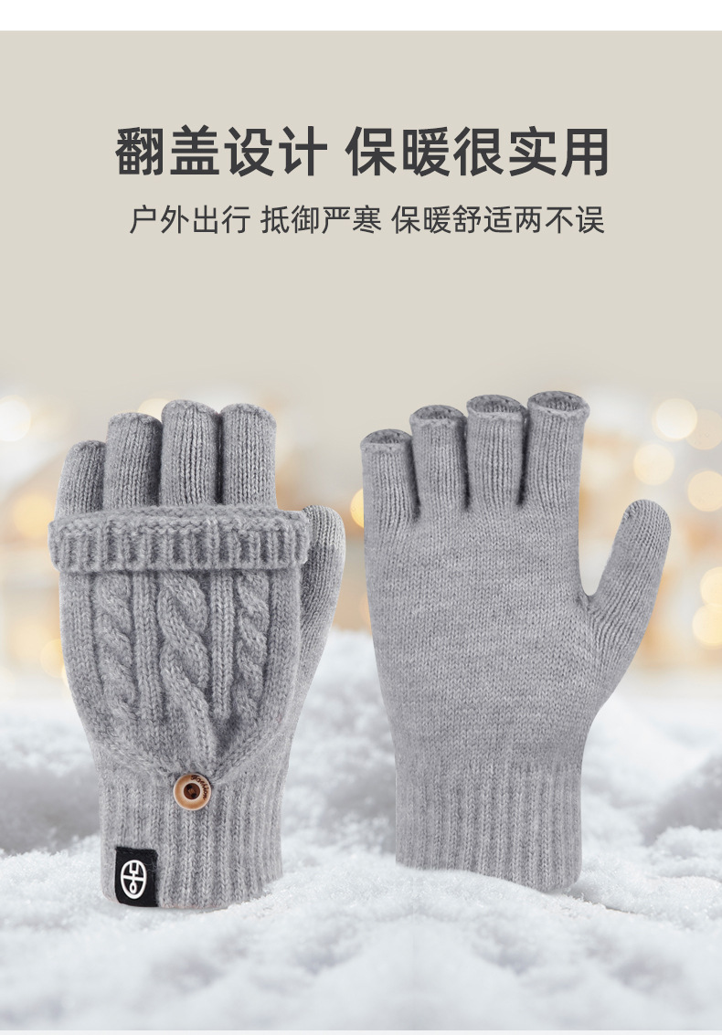 여성용 겨울 플립탑 겸용 반손가락 장갑, 방한 및 보온 학생용 터치스크린 장갑, 남성용 두꺼운 벨벳 오픈 핑거 장갑스토어 가기