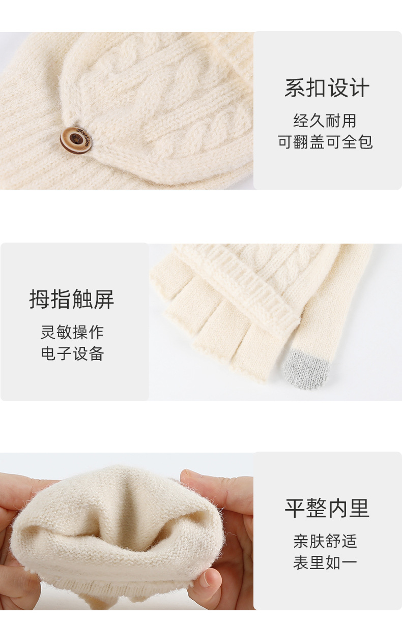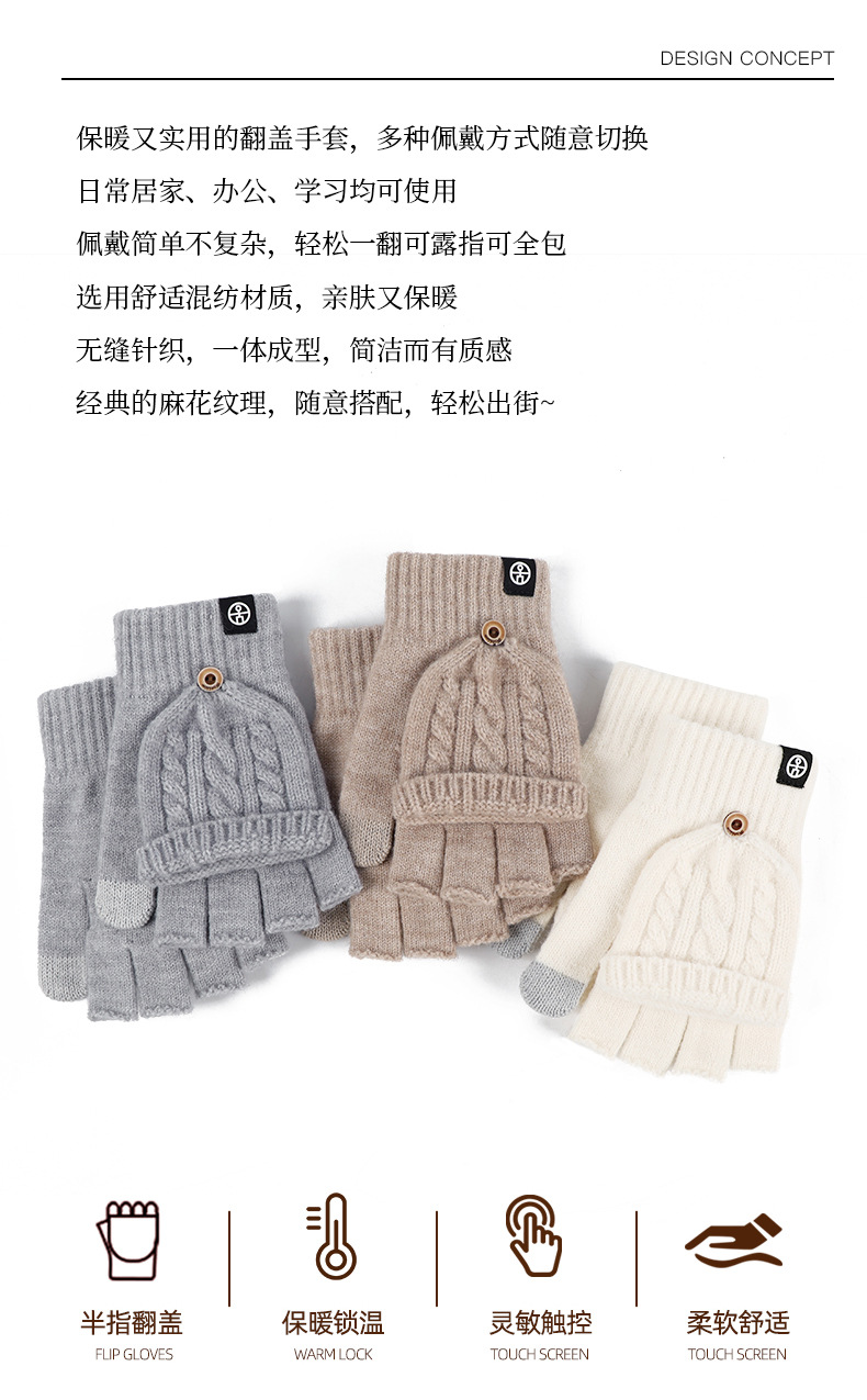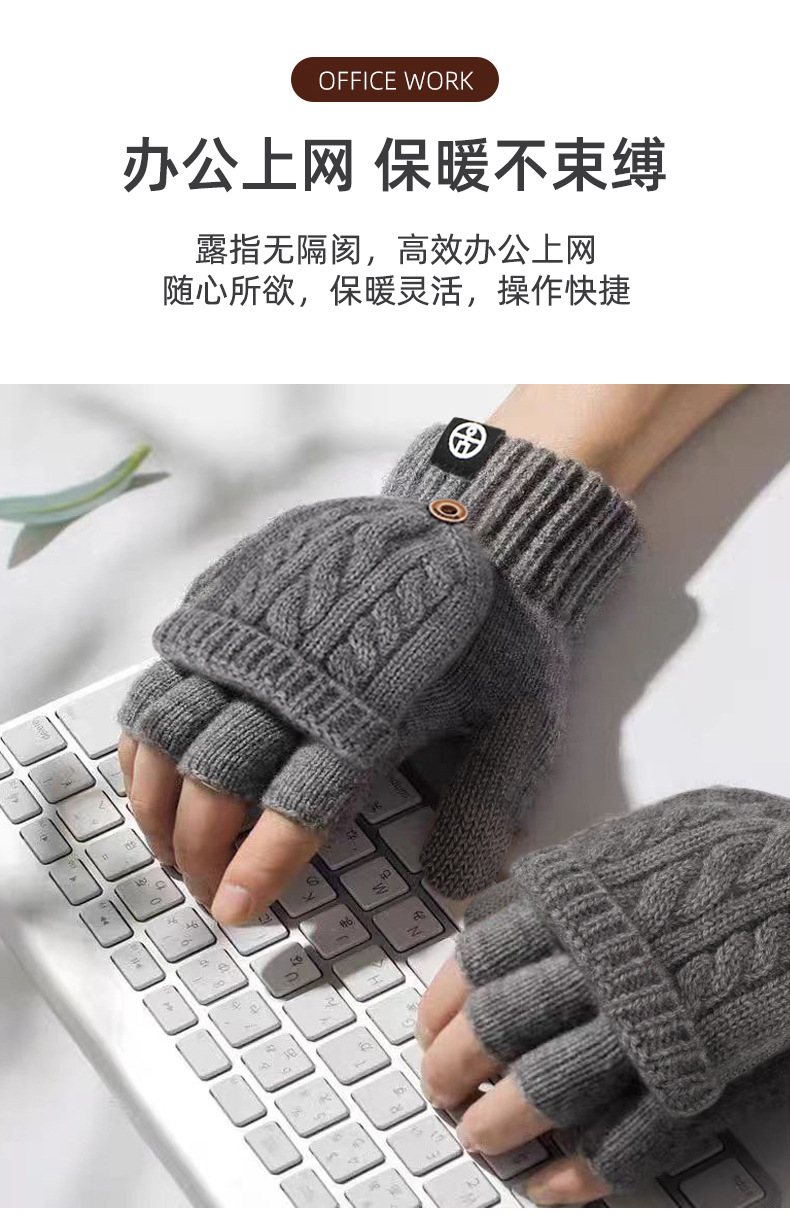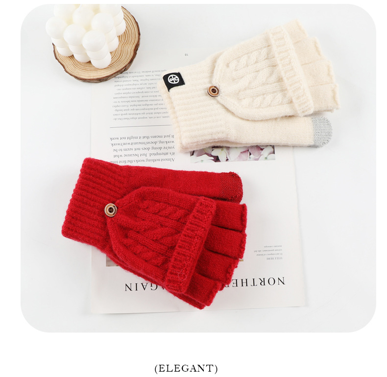 여성용 겨울 플립탑 겸용 반손가락 장갑, 방한 및 보온 학생용 터치스크린 장갑, 남성용 두꺼운 벨벳 오픈 핑거 장갑스토어 가기