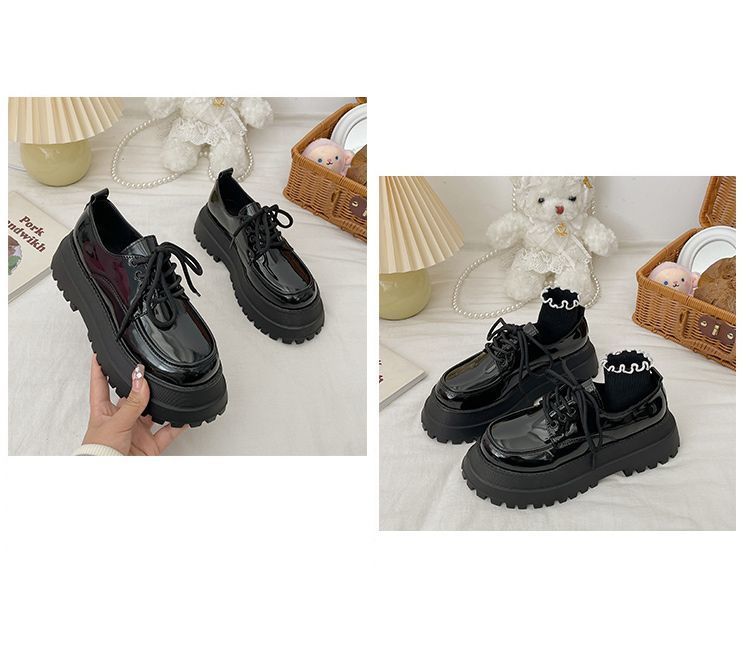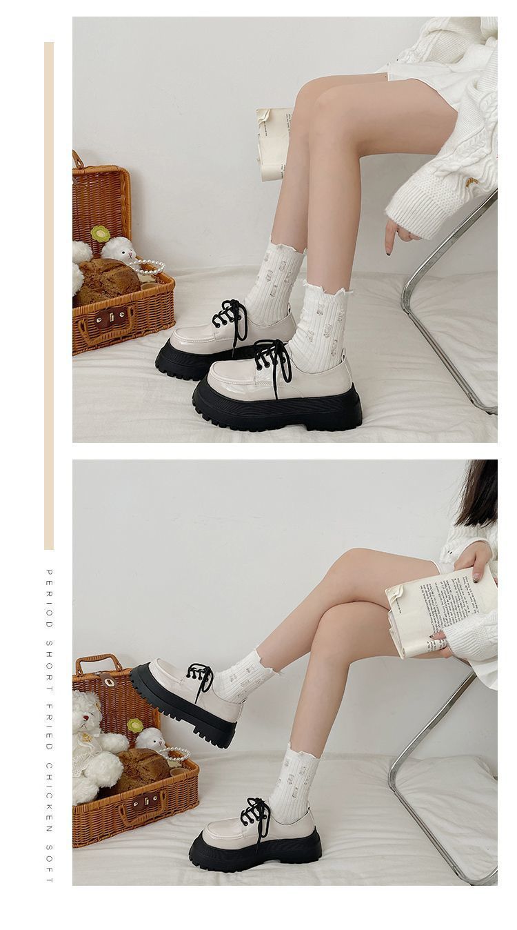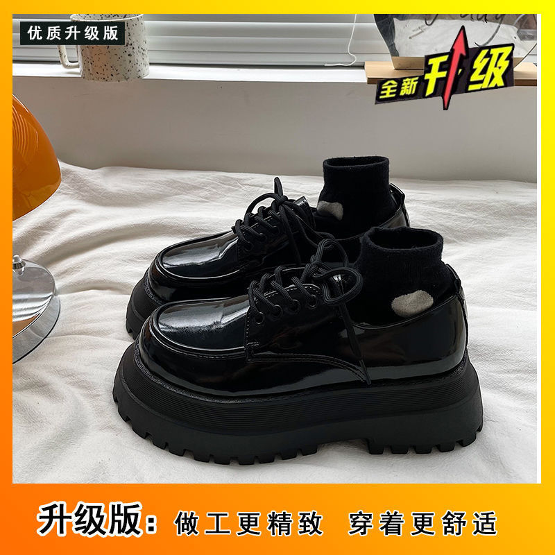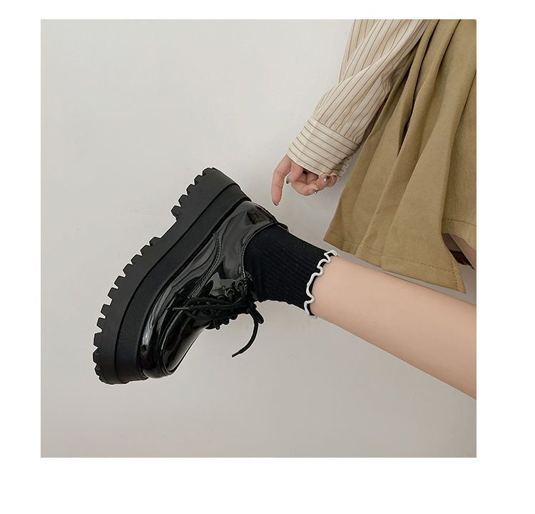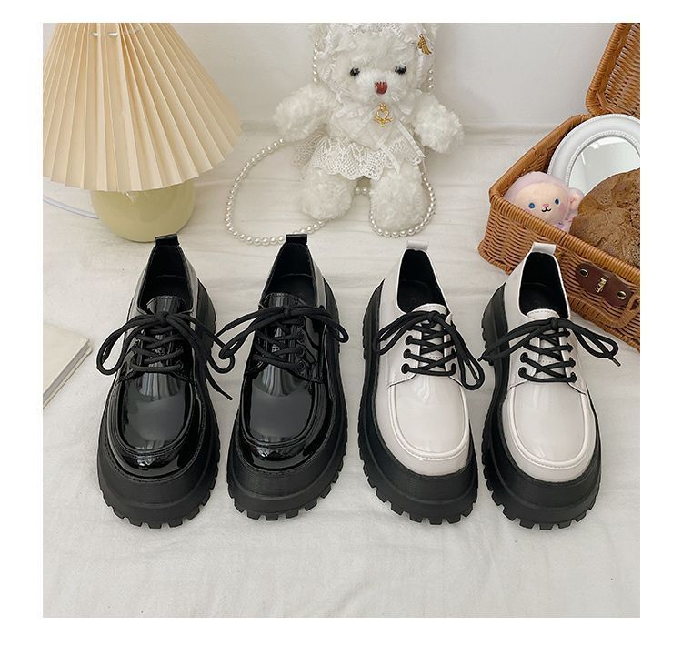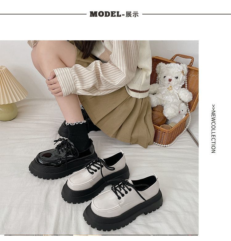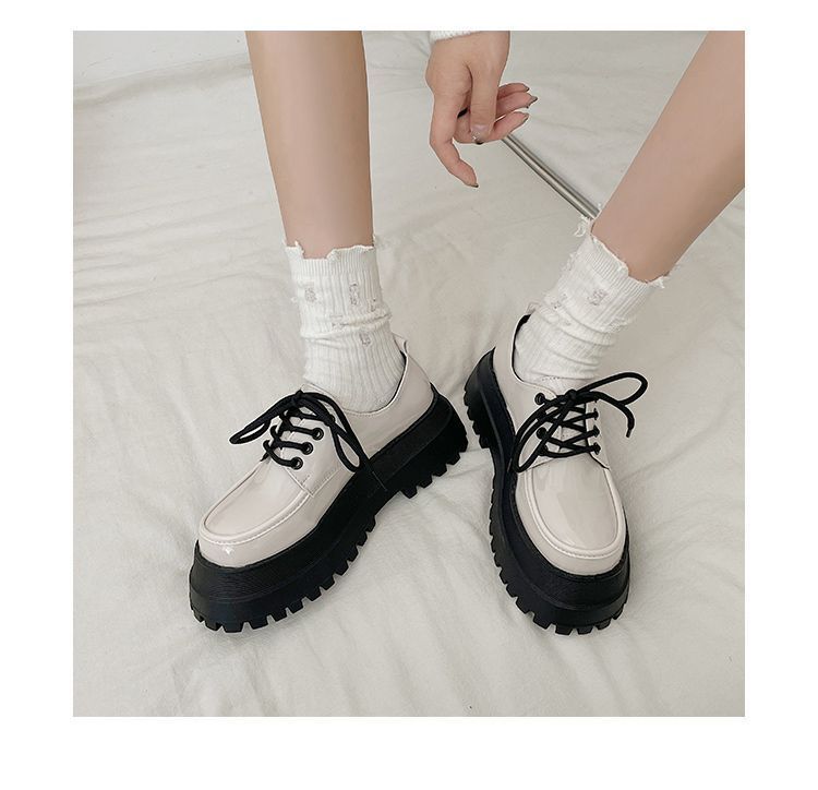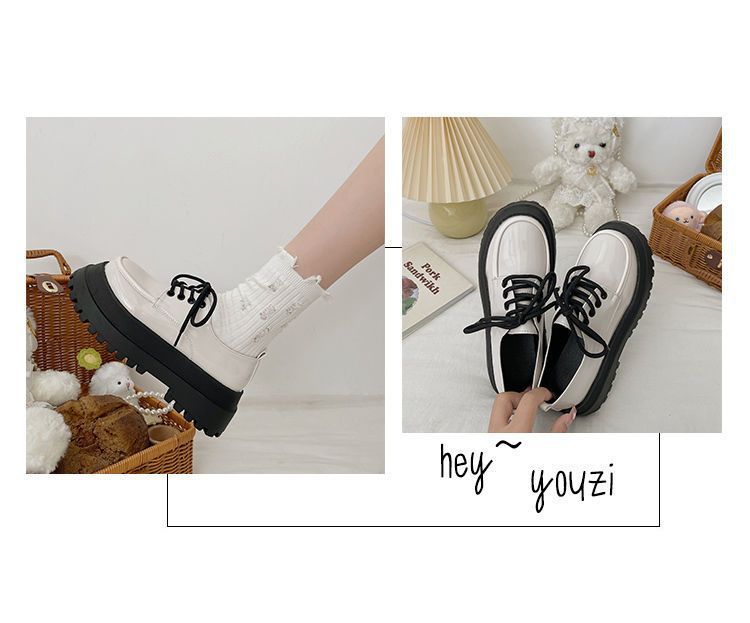 Jk 작은 가죽 신발 여성 두꺼운 일본 스타일 높이 증가 올 매치 레이스 업 로퍼 2022 새로운 라운드 발가락 빈티지 플랫폼 싱글 레이어 신발스토어 가기