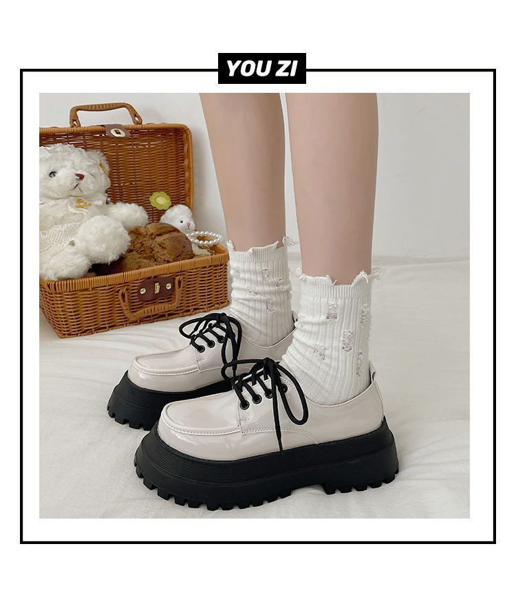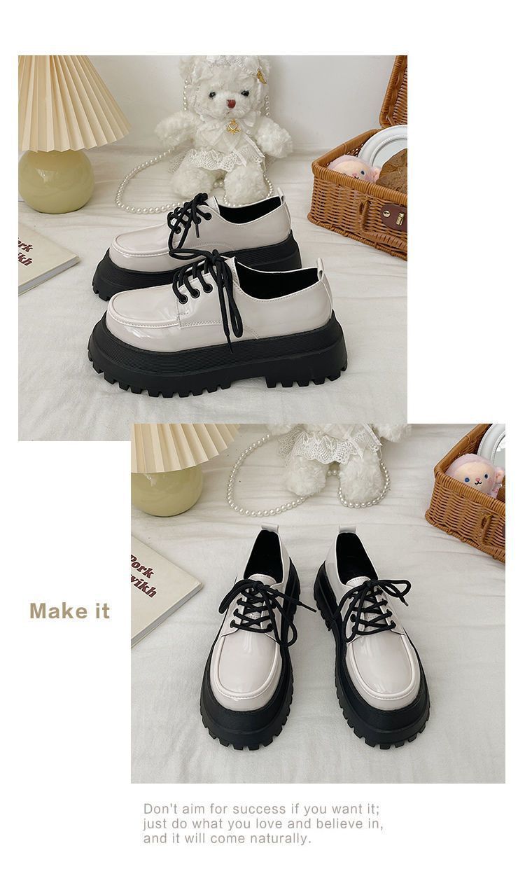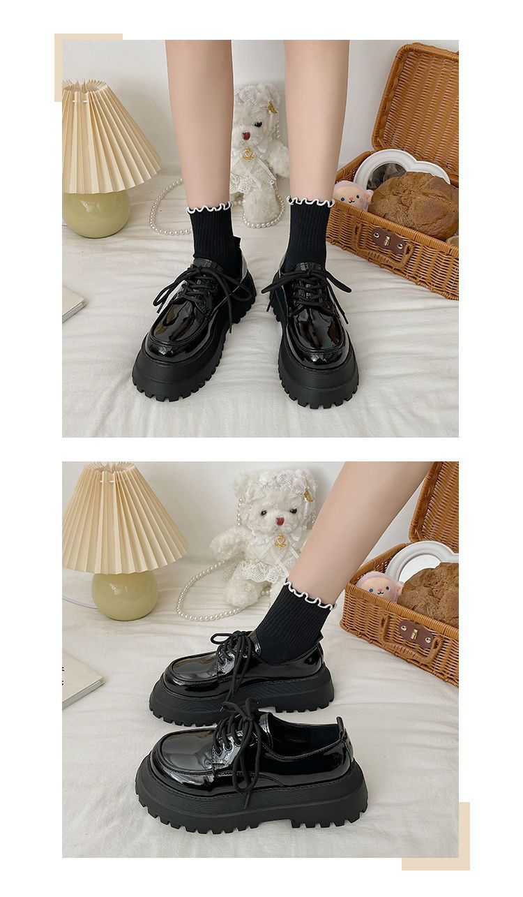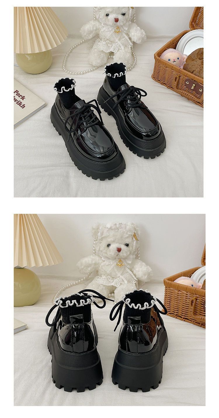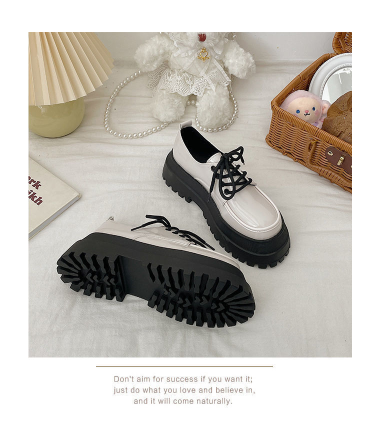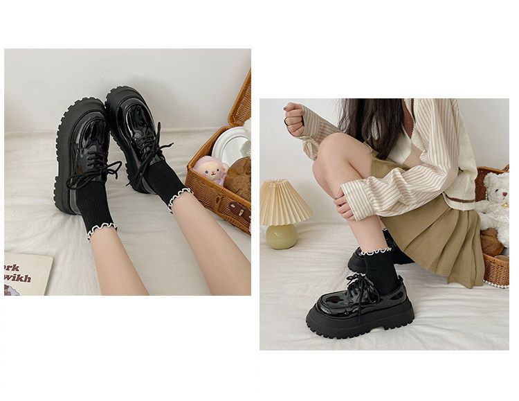Jk 작은 가죽 신발 여성 두꺼운 일본 스타일 높이 증가 올 매치 레이스 업 로퍼 2022 새로운 라운드 발가락 빈티지 플랫폼 싱글 레이어 신발스토어 가기