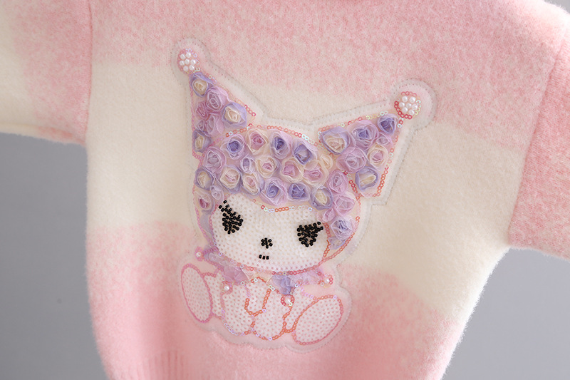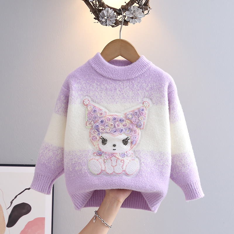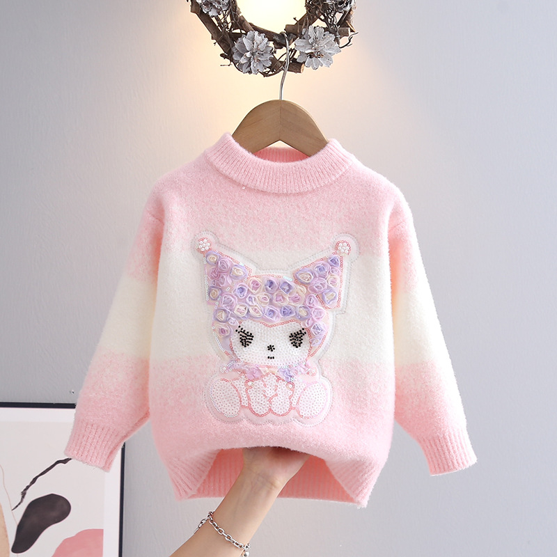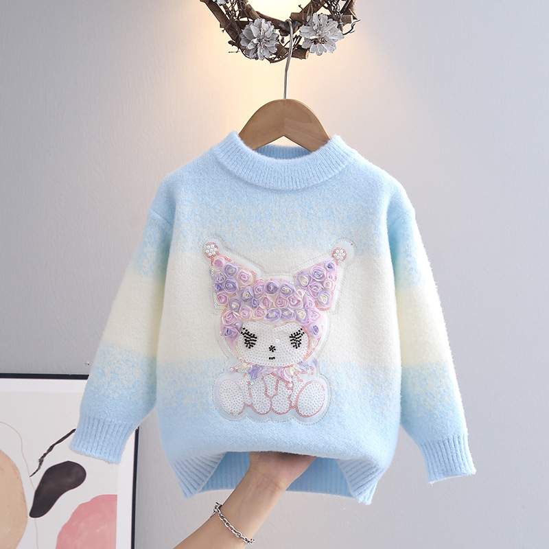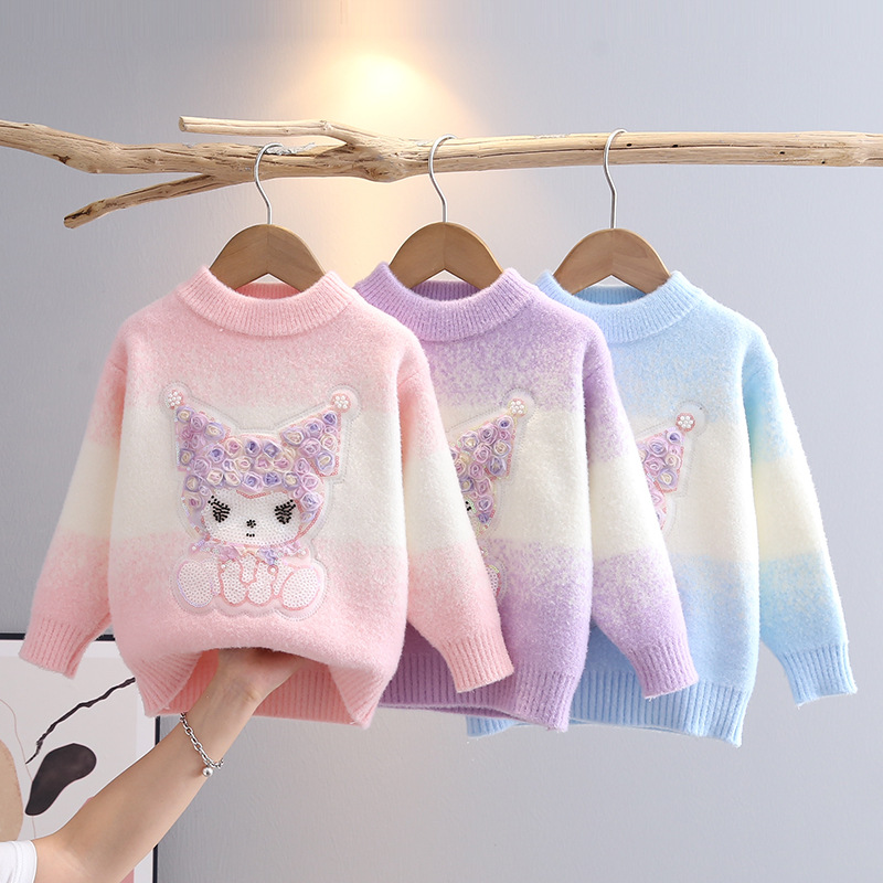 소녀 스웨터 2024 가을과 겨울 쿨로 미 뉴 풀오버 니트 셔츠 크루 넥 긴팔 중소 어린이 어린 소녀 스웨터