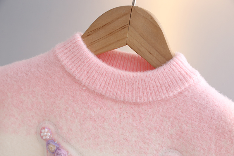 소녀 스웨터 2024 가을과 겨울 쿨로 미 뉴 풀오버 니트 셔츠 크루 넥 긴팔 중소 어린이 어린 소녀 스웨터스토어 가기