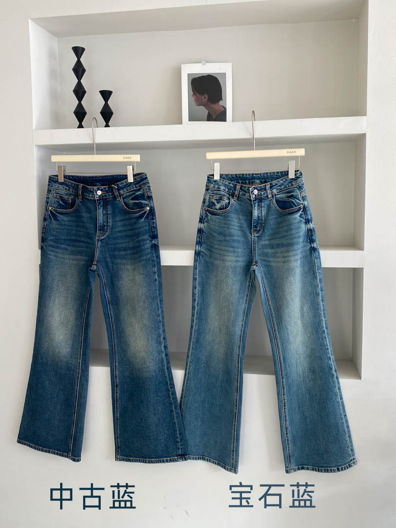 GAGD 중형 골동품 복고풍 마이크로 데님 바지 여성용 터키 고 탄성 플라스틱 슈퍼 모델 다리 파이프 플레어 바지스토어 가기