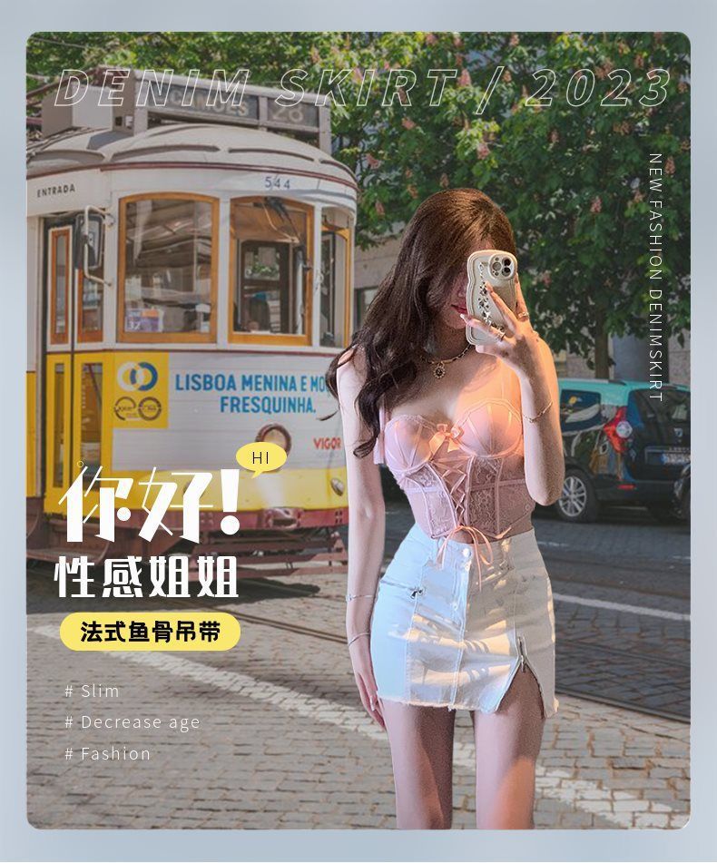 달콤하고 섹시한 새로운 Fishbone Brassiere Spice Girls 레이스 속옷 스트랩 조끼 슬리밍 여성용 최고의 아름다운 백 파우더