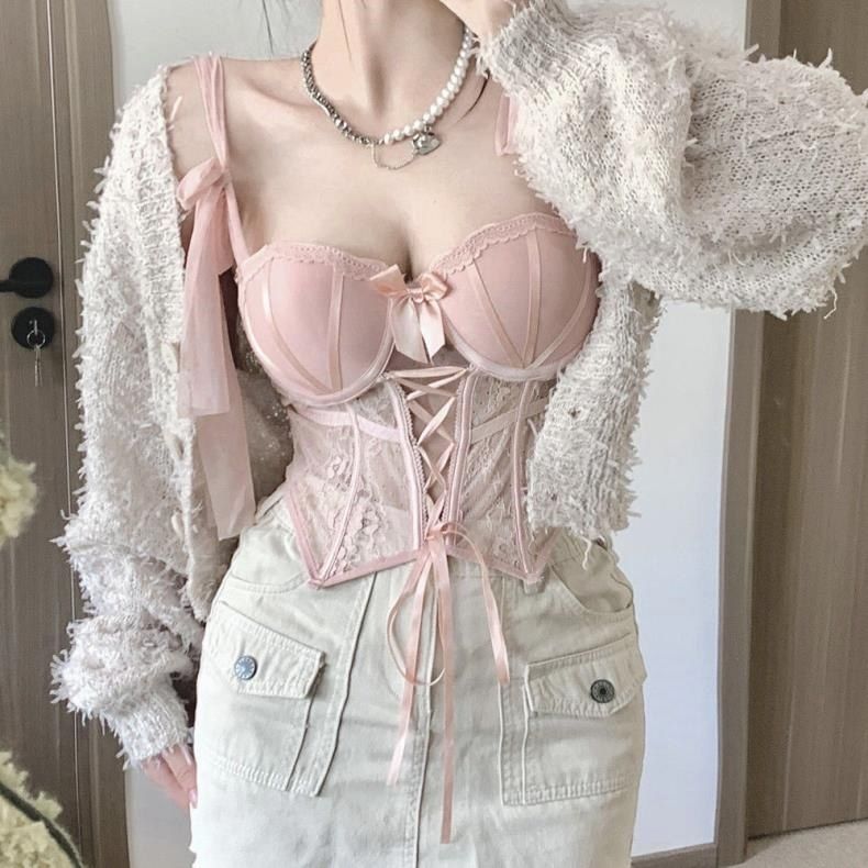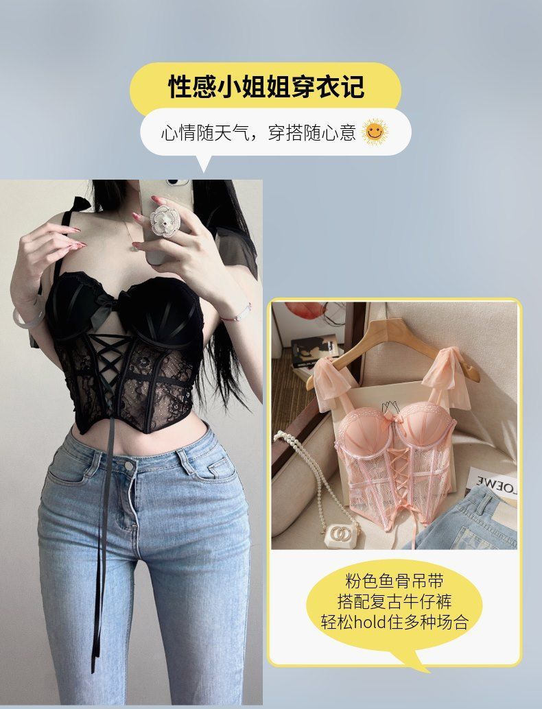 달콤하고 섹시한 새로운 Fishbone Brassiere Spice Girls 레이스 속옷 스트랩 조끼 슬리밍 여성용 최고의 아름다운 백 파우더스토어 가기