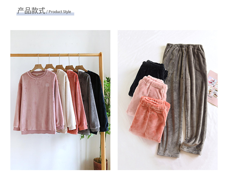 산호 양털 잠옷 남녀 싱글피스 탑 가을과 겨울 기모 두꺼운 긴팔 풀오버 커플의 플란넬 홈 옷