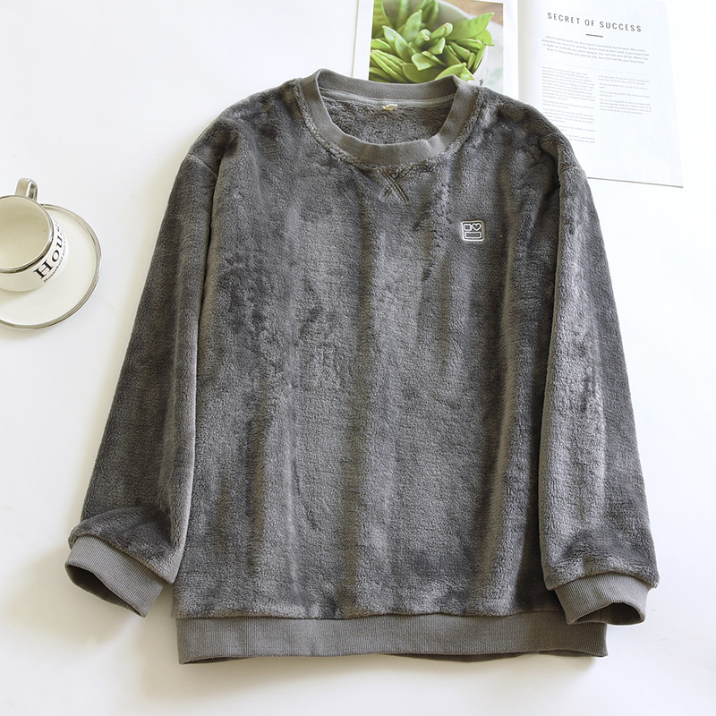 산호 양털 잠옷 남녀 싱글피스 탑 가을과 겨울 기모 두꺼운 긴팔 풀오버 커플의 플란넬 홈 옷스토어 가기