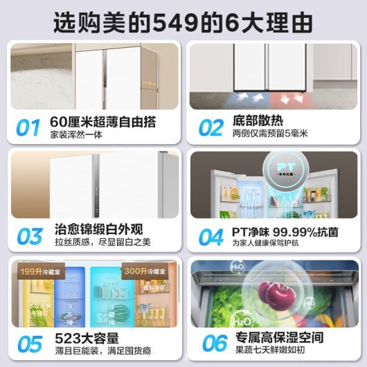 Midea 냉장고 MR-549WUKPZE 더블 도어 초박은 가정용 스마트 냉장고에 대용량 내장 할 수 있습니다.