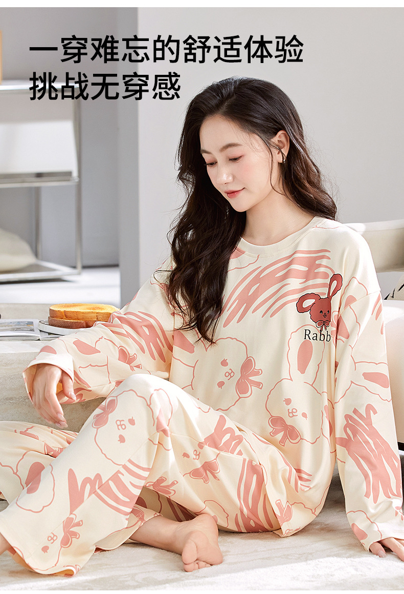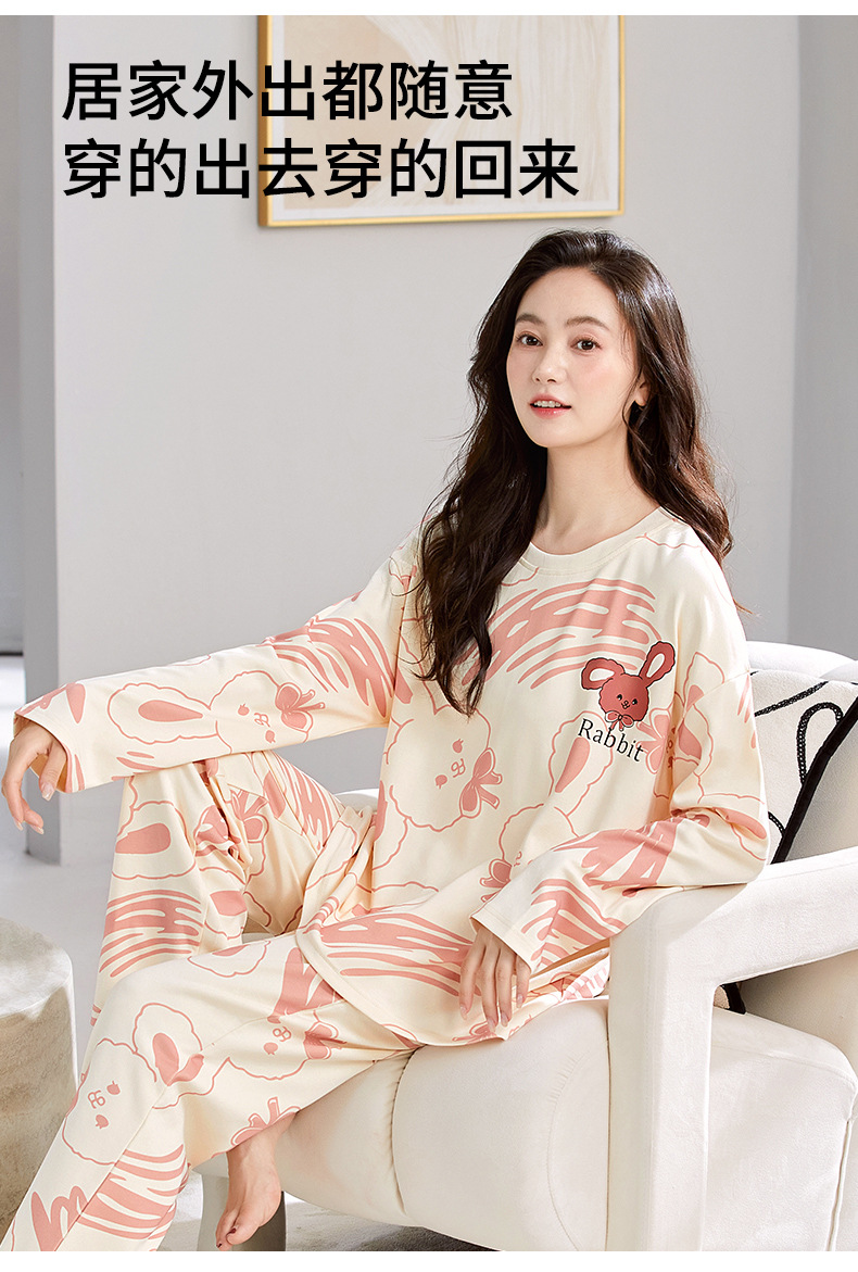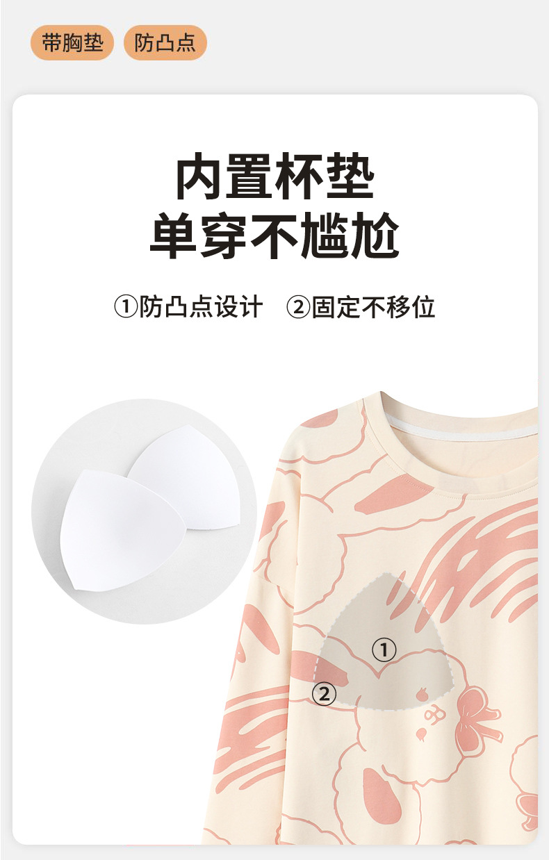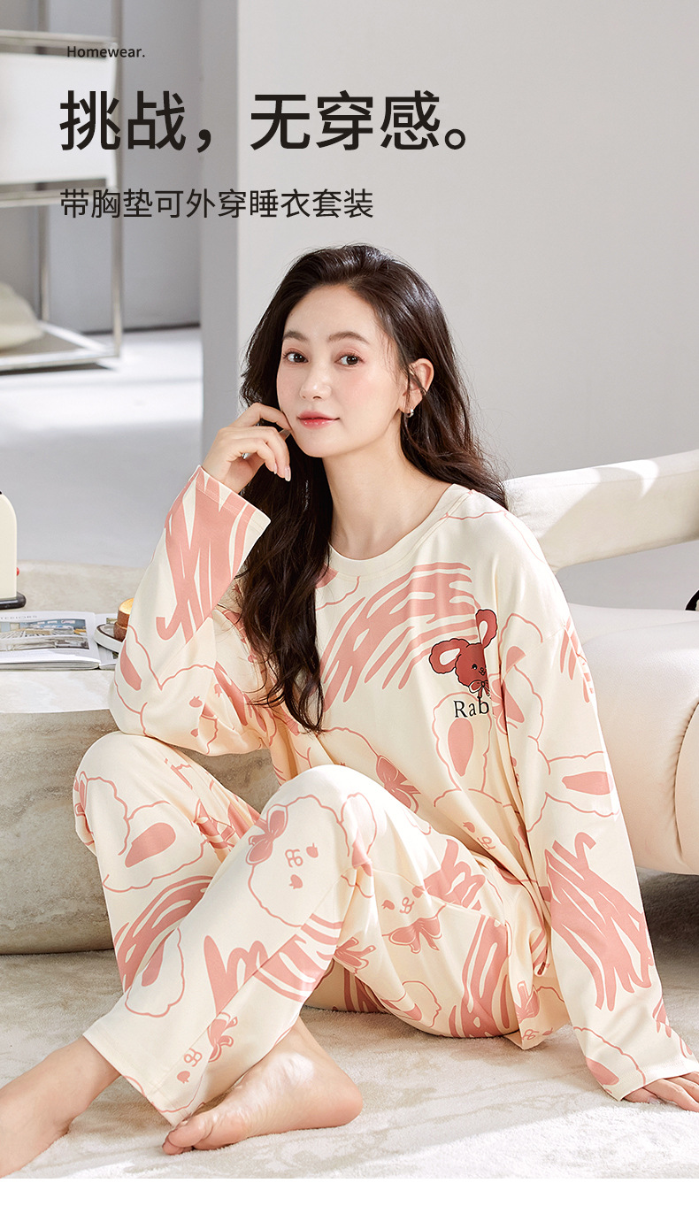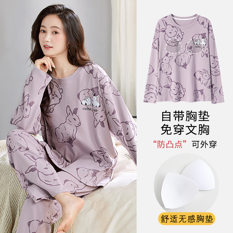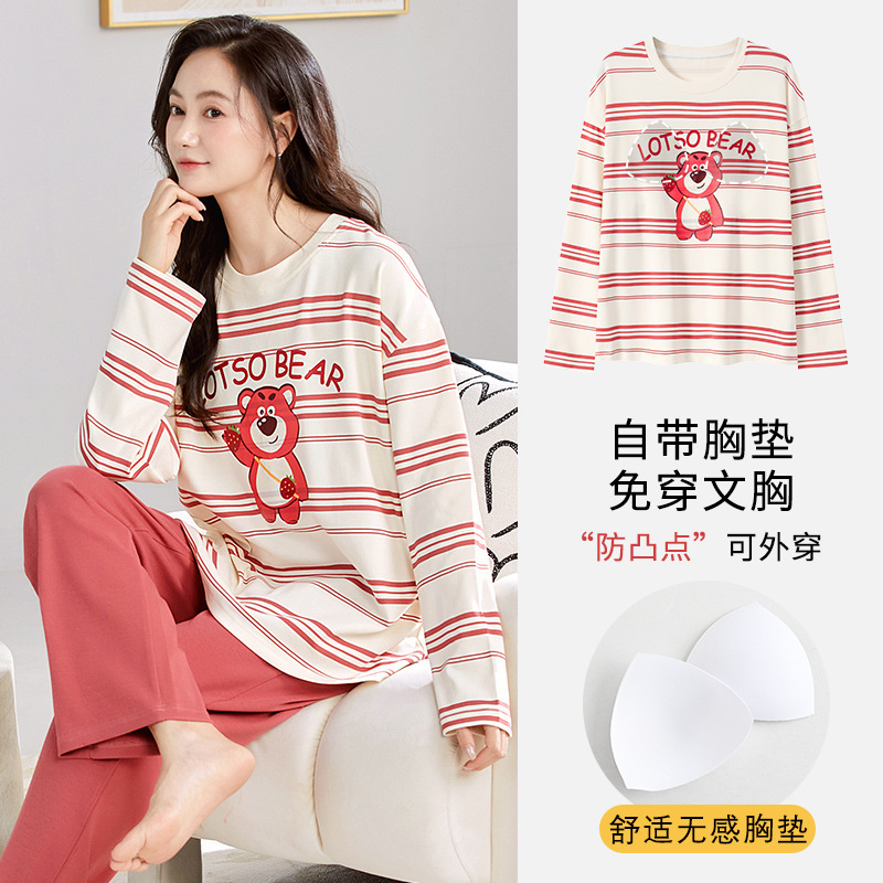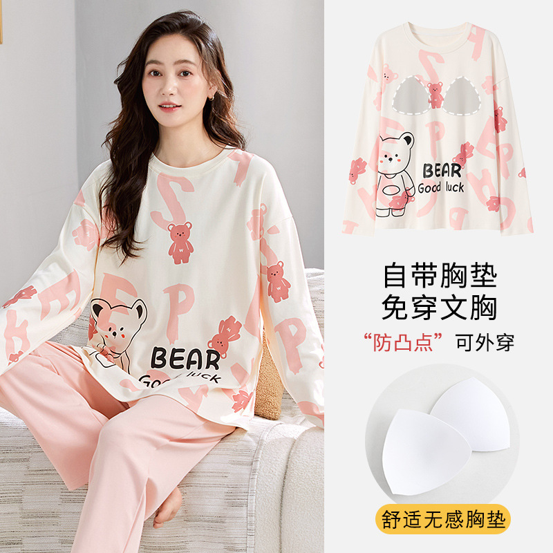 2024 긴팔 잠옷 여성 가을 만화 풀오버 면 가슴 패드 홈 옷은 봄, 가을, 겨울 세트 밖에서 입을 수 있습니다.스토어 가기