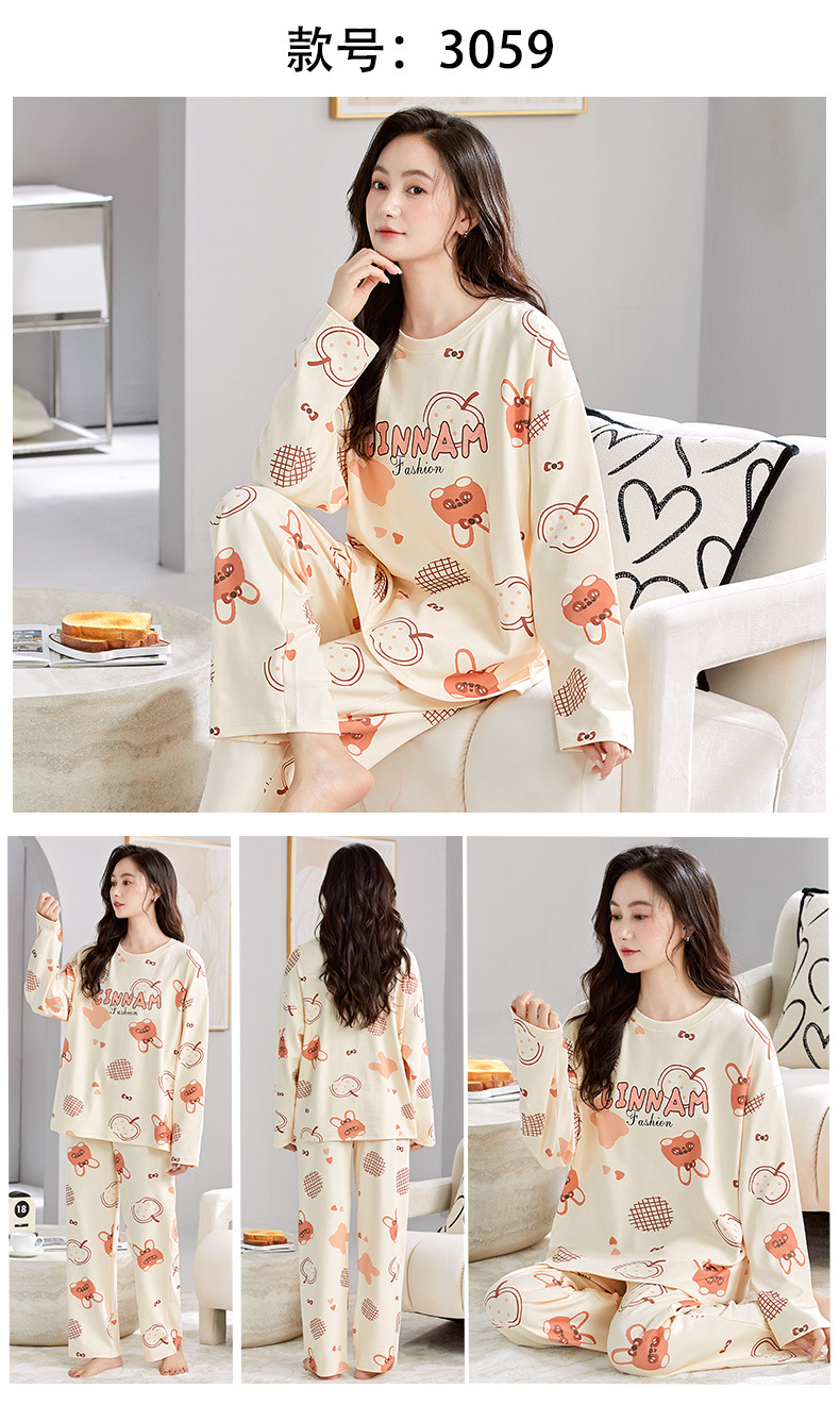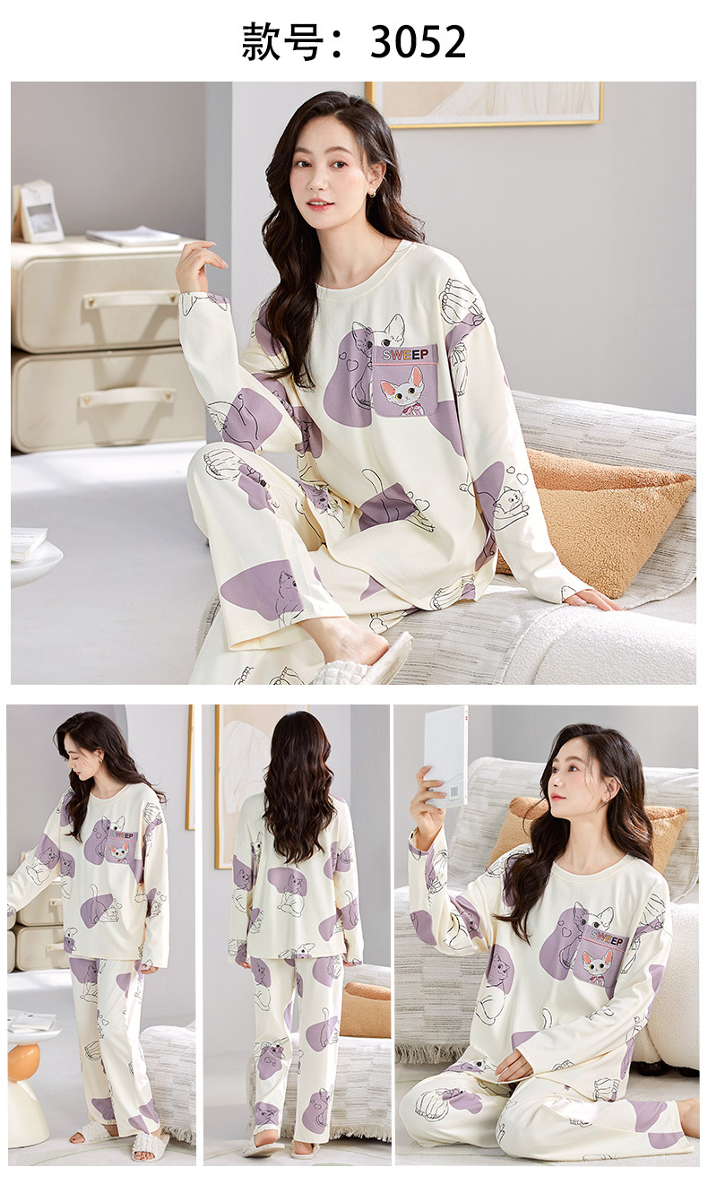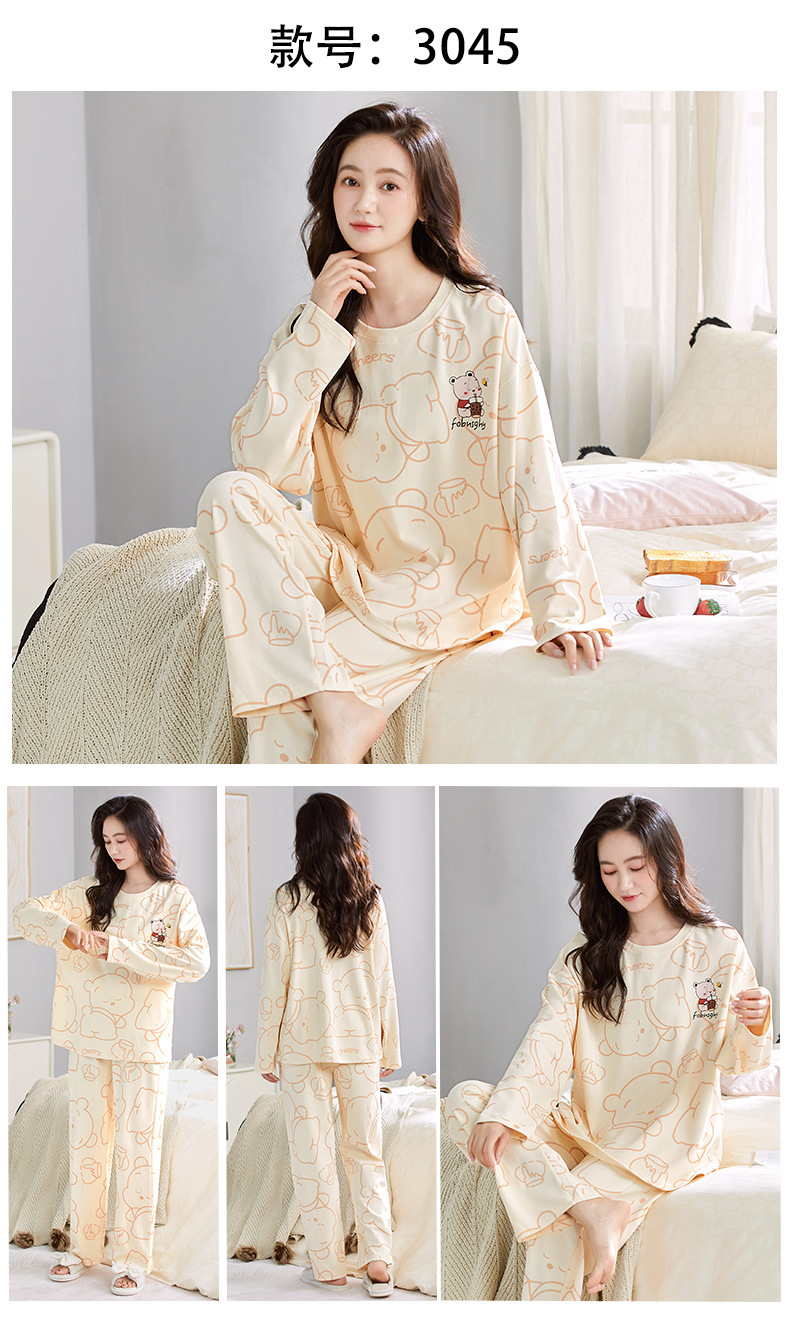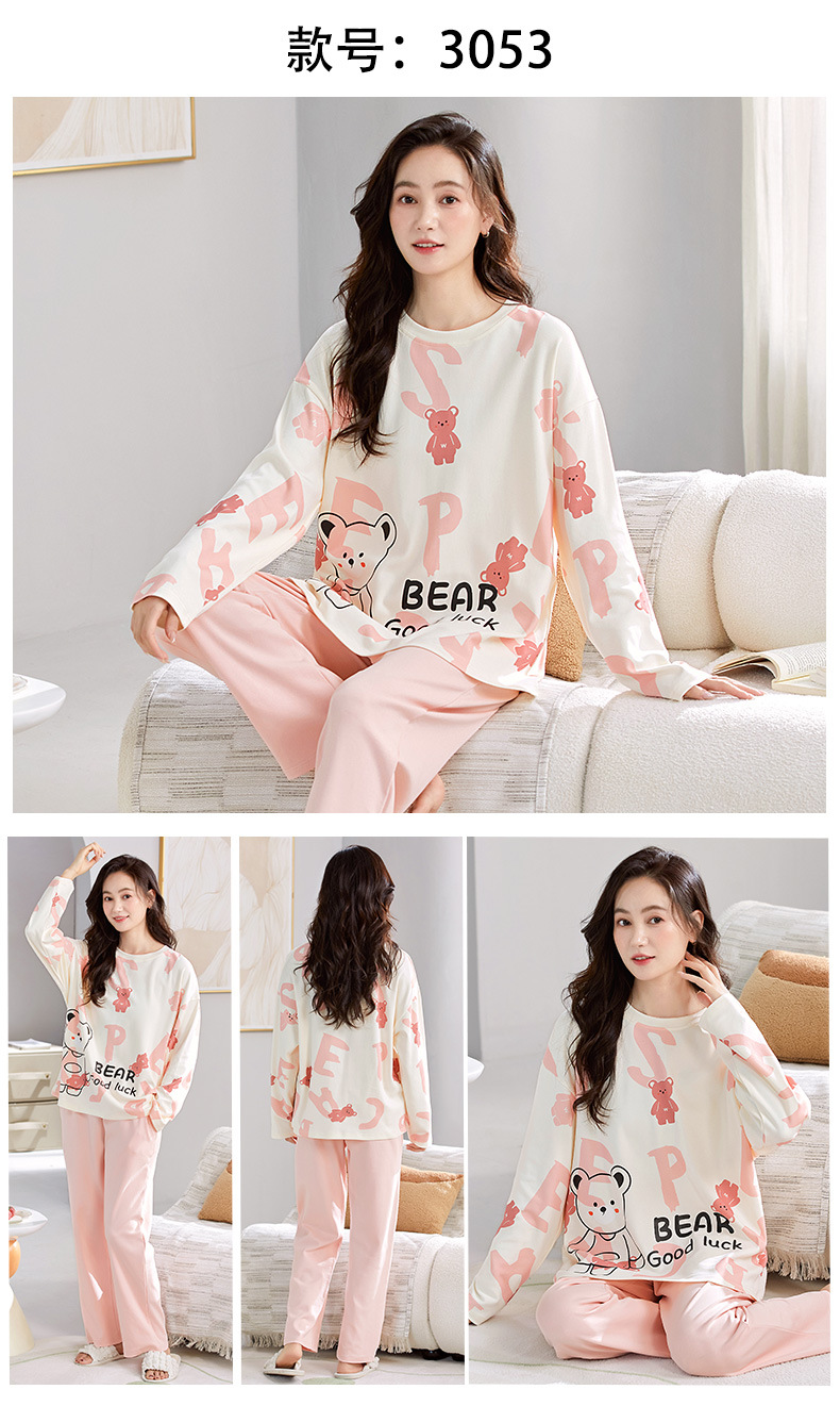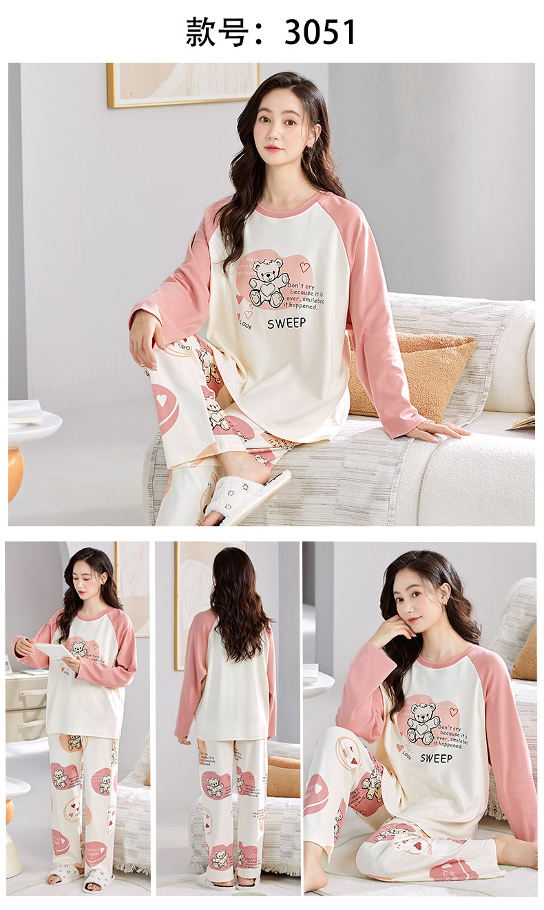 2024 긴팔 잠옷 여성 가을 만화 풀오버 면 가슴 패드 홈 옷은 봄, 가을, 겨울 세트 밖에서 입을 수 있습니다.스토어 가기