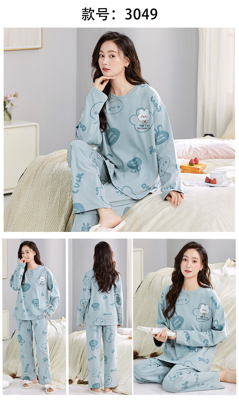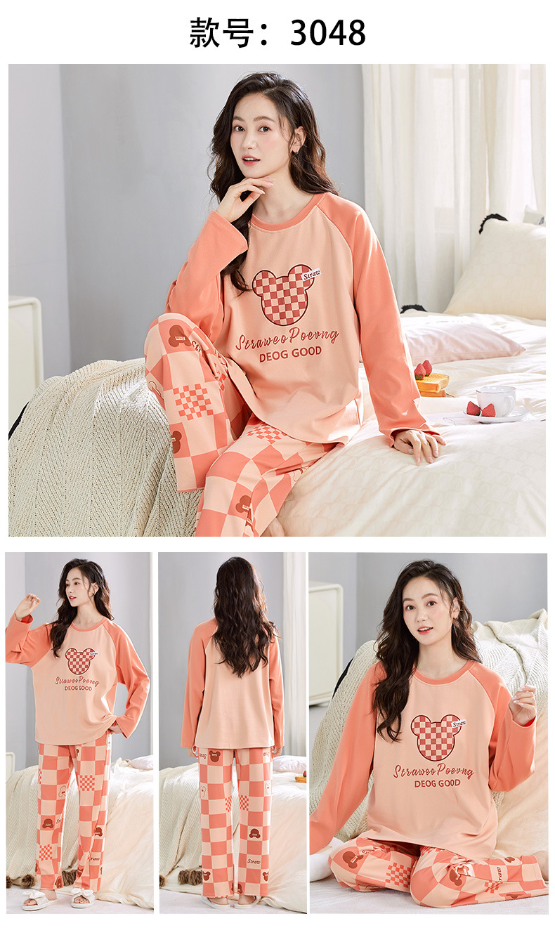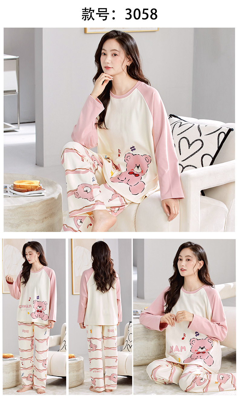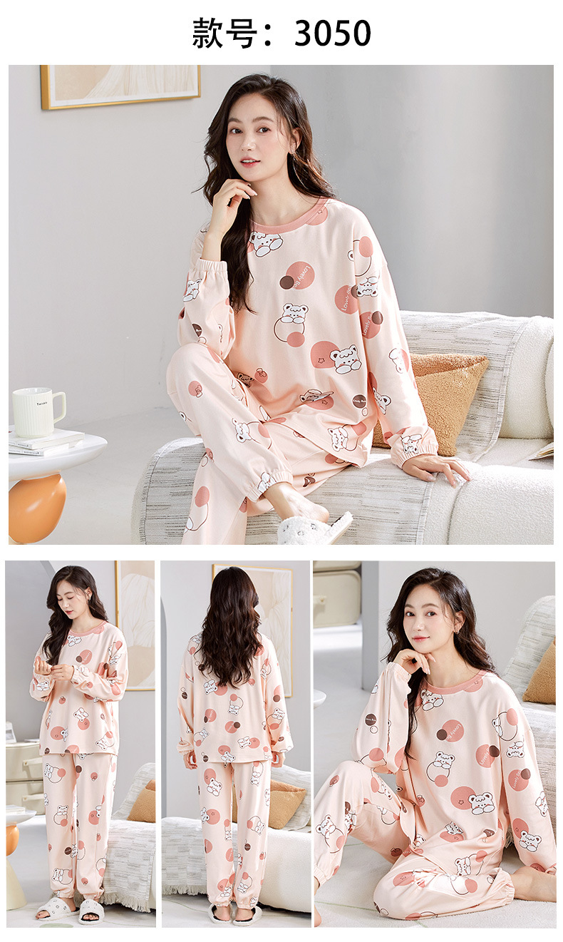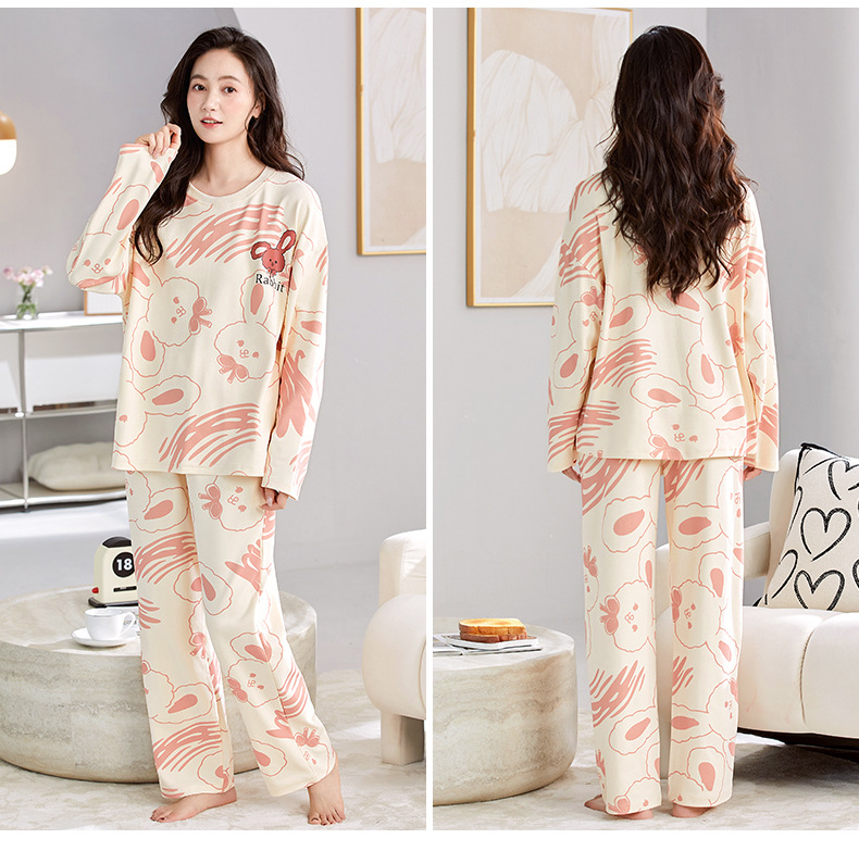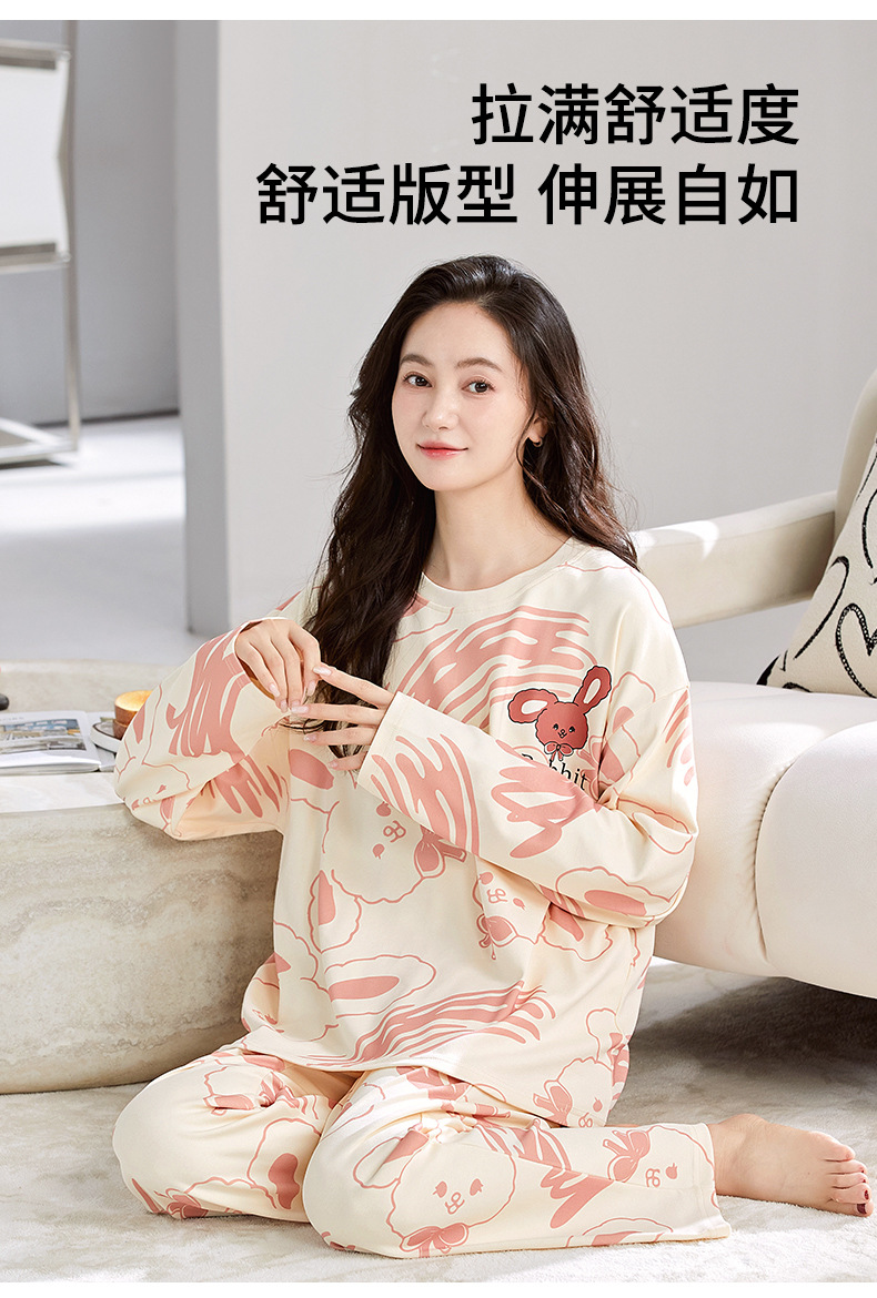 2024 긴팔 잠옷 여성 가을 만화 풀오버 면 가슴 패드 홈 옷은 봄, 가을, 겨울 세트 밖에서 입을 수 있습니다.스토어 가기