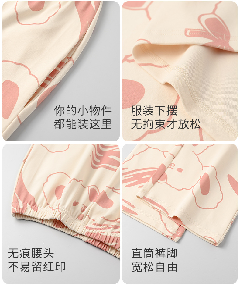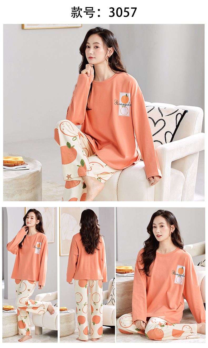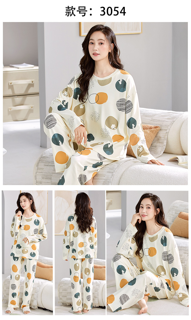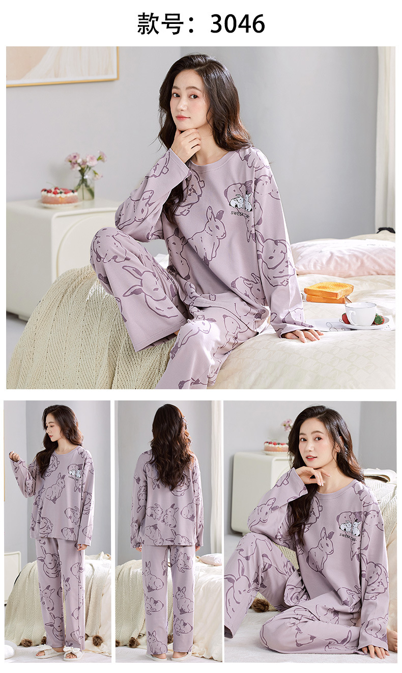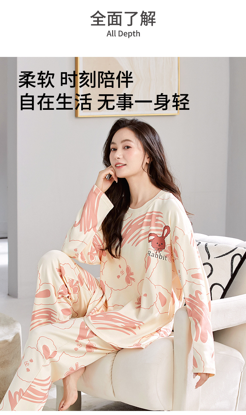 2024 긴팔 잠옷 여성 가을 만화 풀오버 면 가슴 패드 홈 옷은 봄, 가을, 겨울 세트 밖에서 입을 수 있습니다.스토어 가기