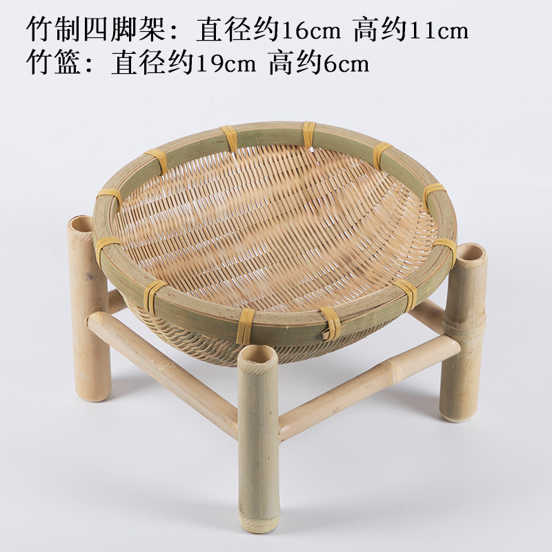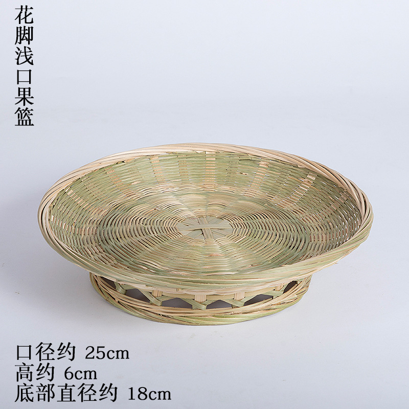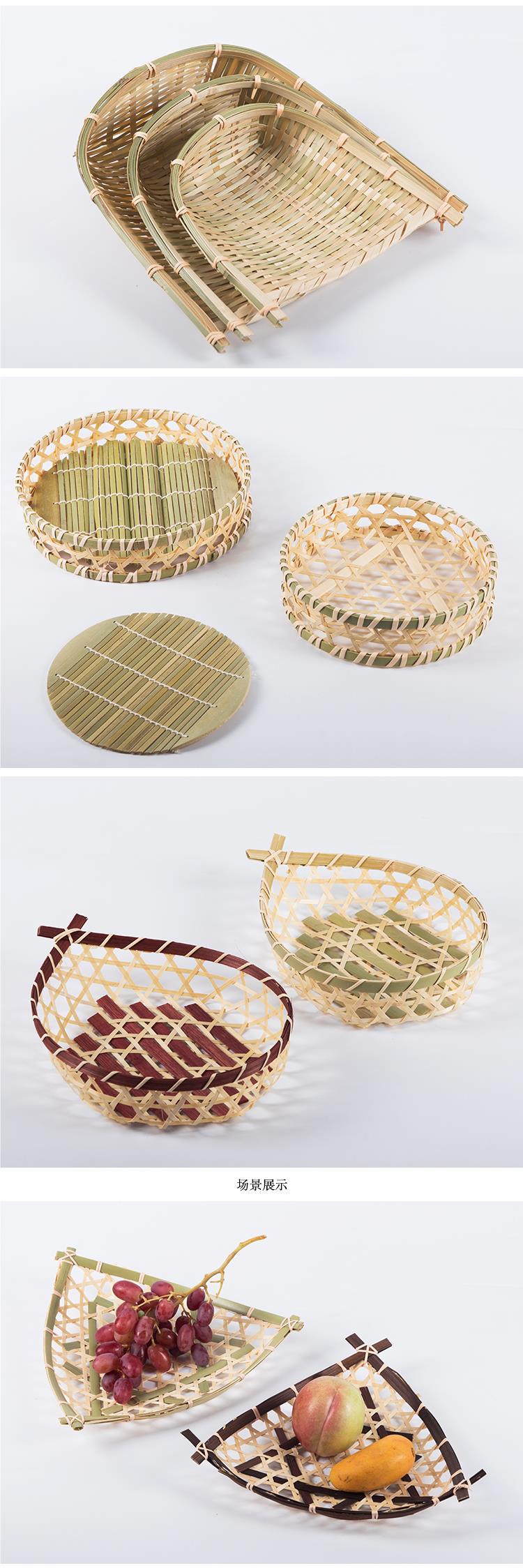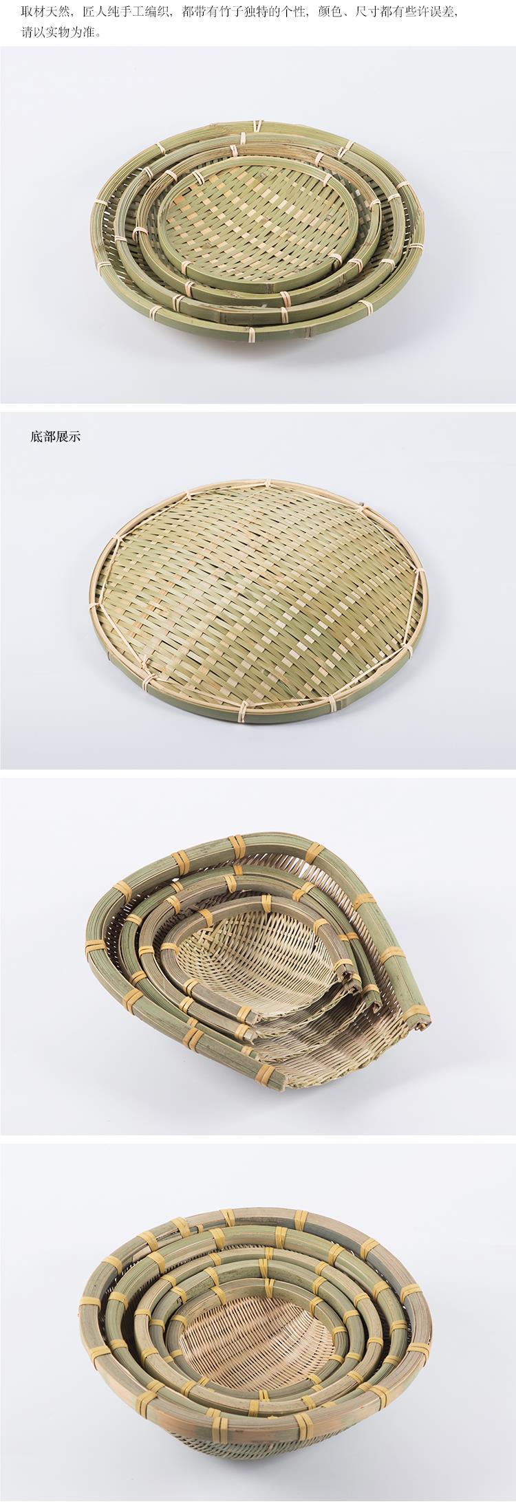 手工竹编织品竹筛竹篮子收纳筐水果盘子点心托盘农家用编织圆簸箕