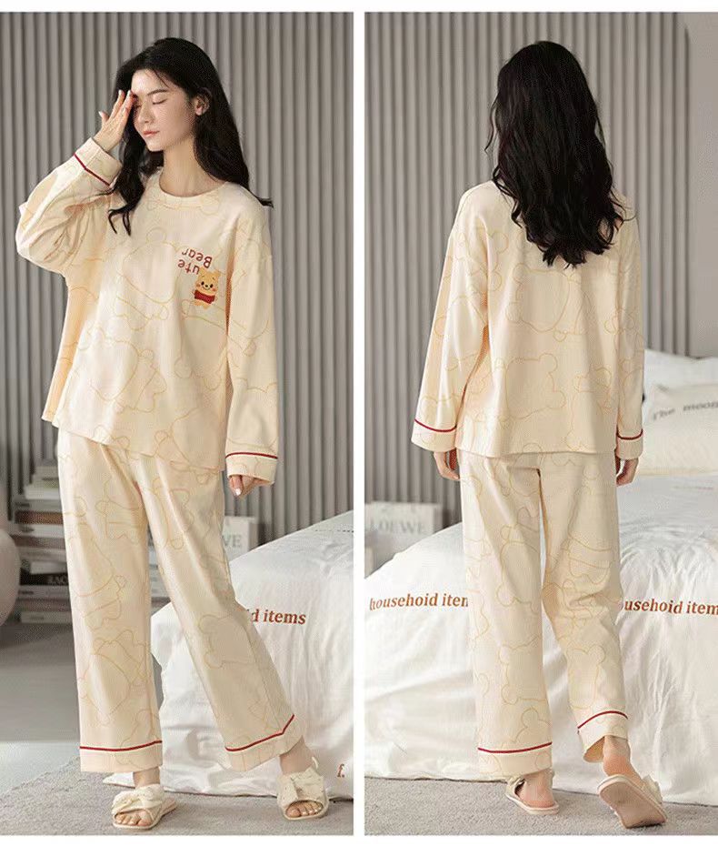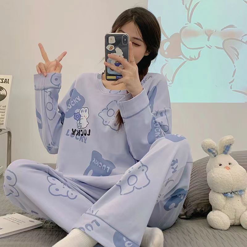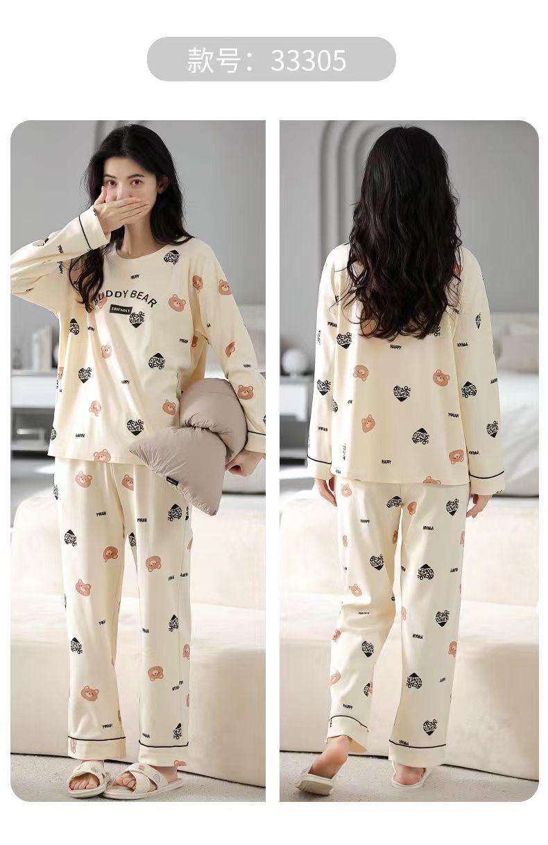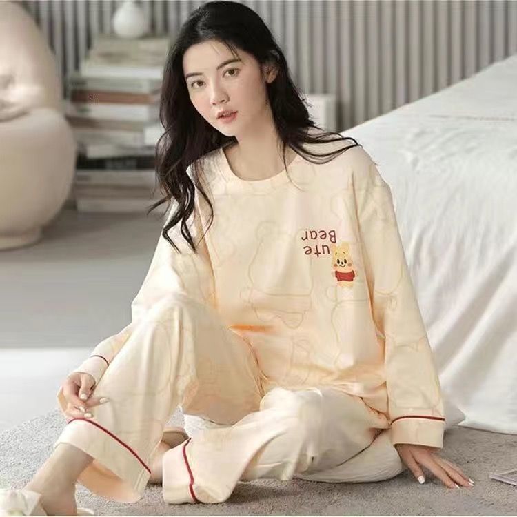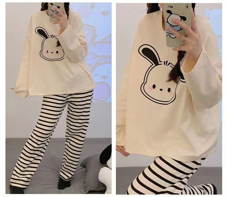 새로운 봄과 가을 긴 소매 바지 가슴 패드 잠옷 여성의 귀여운 느슨한 얇은 외형 가정 옷 세트스토어 가기