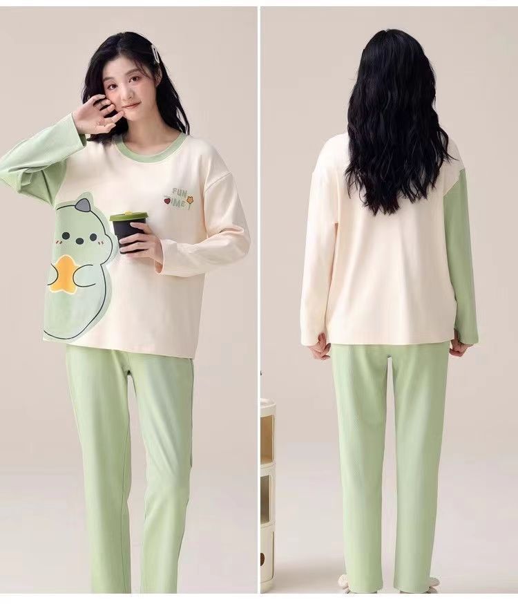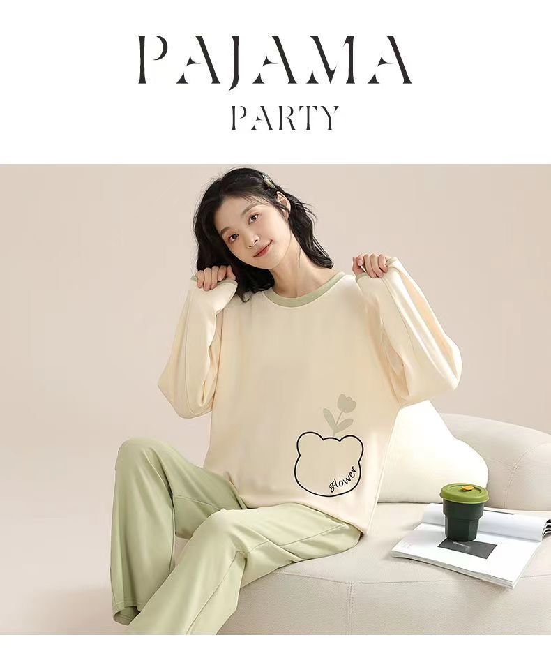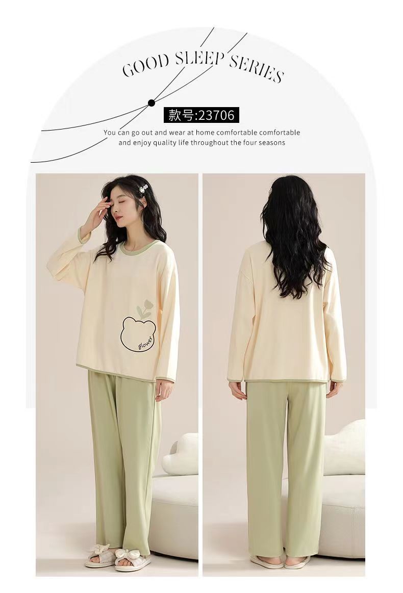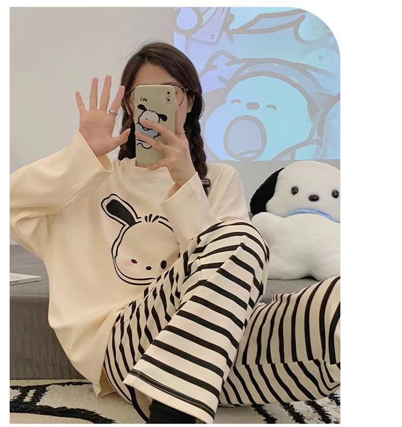 새로운 봄과 가을 긴 소매 바지 가슴 패드 잠옷 여성의 귀여운 느슨한 얇은 외형 가정 옷 세트스토어 가기
