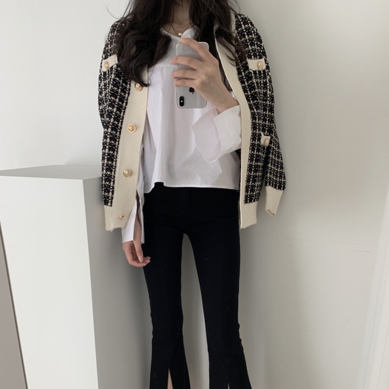 플러스 사이즈 여성 의류 2024 가을 새 뚱뚱한 자매 간단한 스타일 싱글 브레스트 격자 무늬 스웨터 카디건 재킷 코트