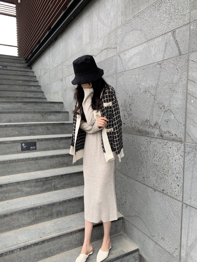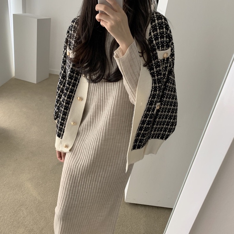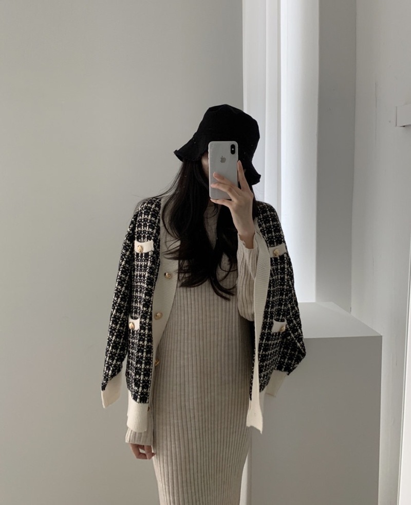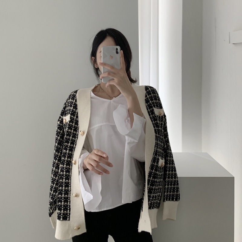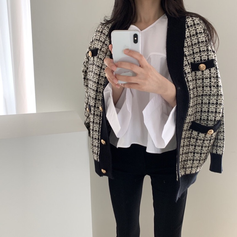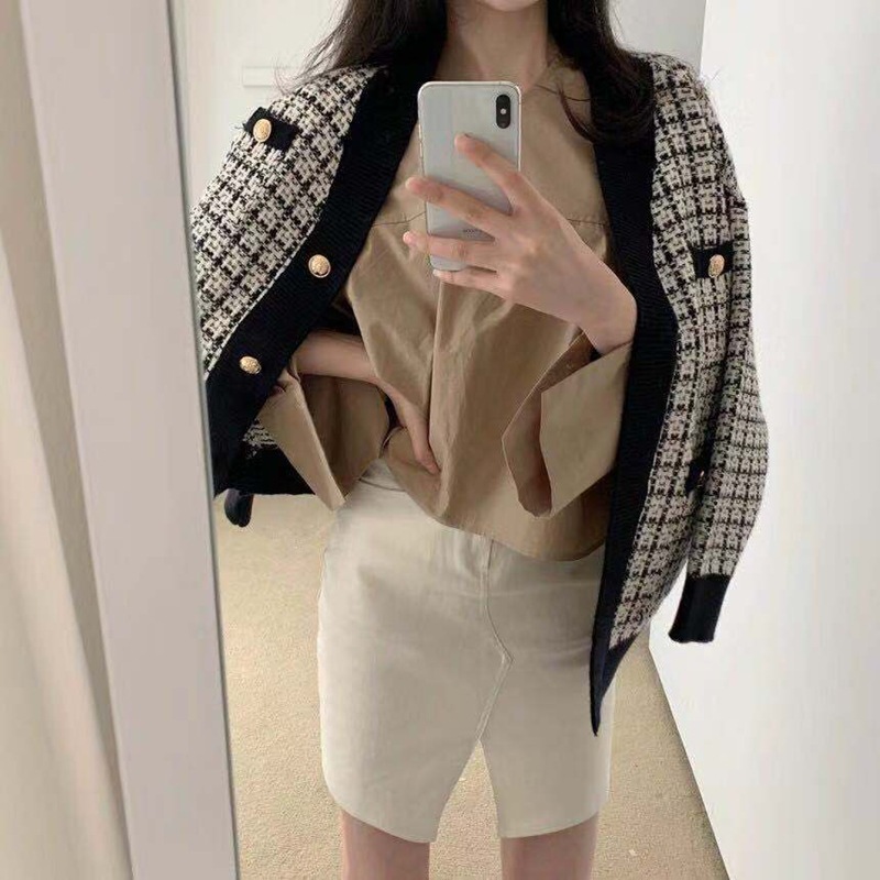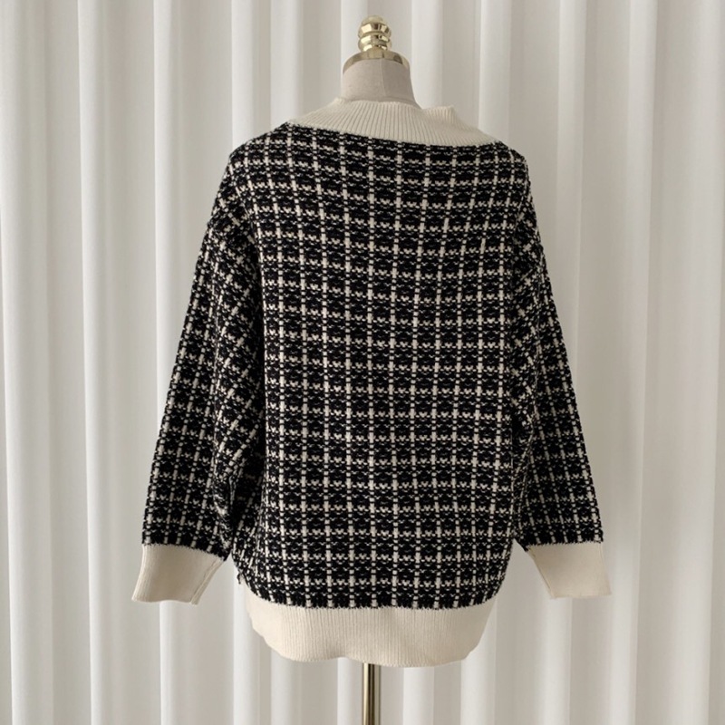 플러스 사이즈 여성 의류 2024 가을 새 뚱뚱한 자매 간단한 스타일 싱글 브레스트 격자 무늬 스웨터 카디건 재킷 코트스토어 가기