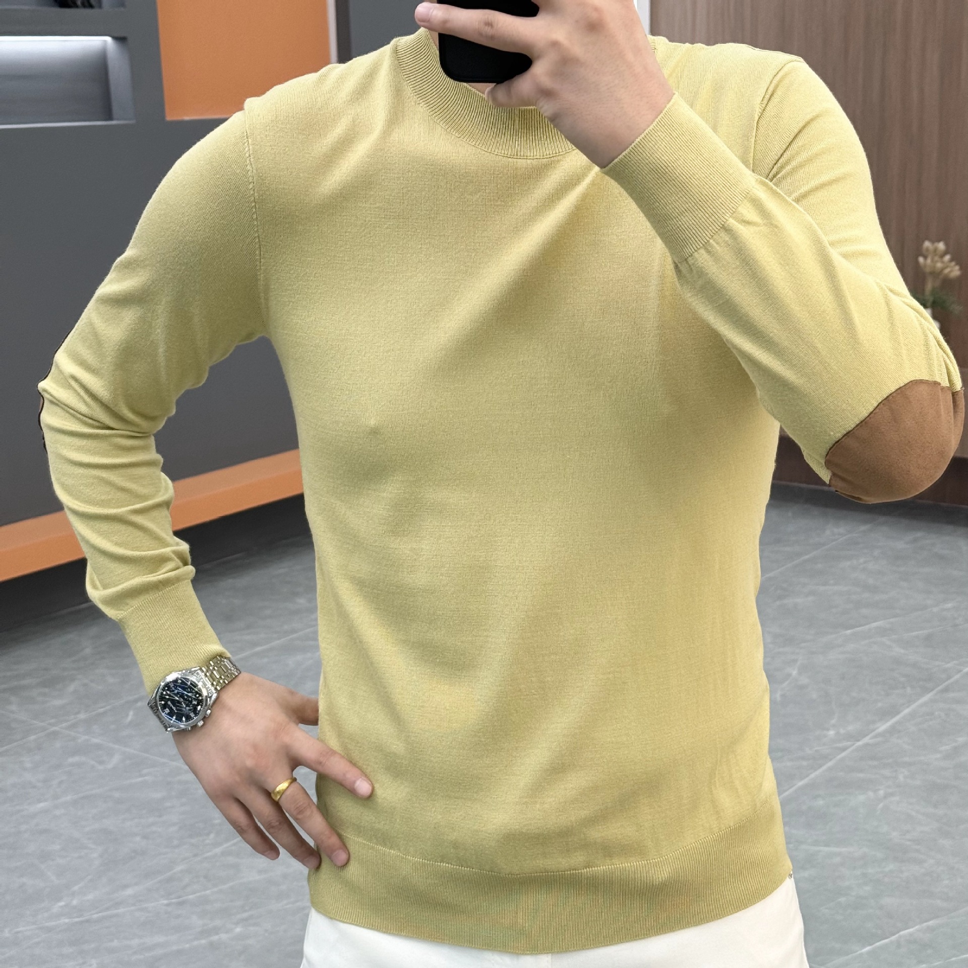 같은 스타일의 공 사이 파 카이 남성 의류 [가벼운 고급 품질] 봄 2024 새로운 단색 니트 스웨터 긴 소매 둥근 목