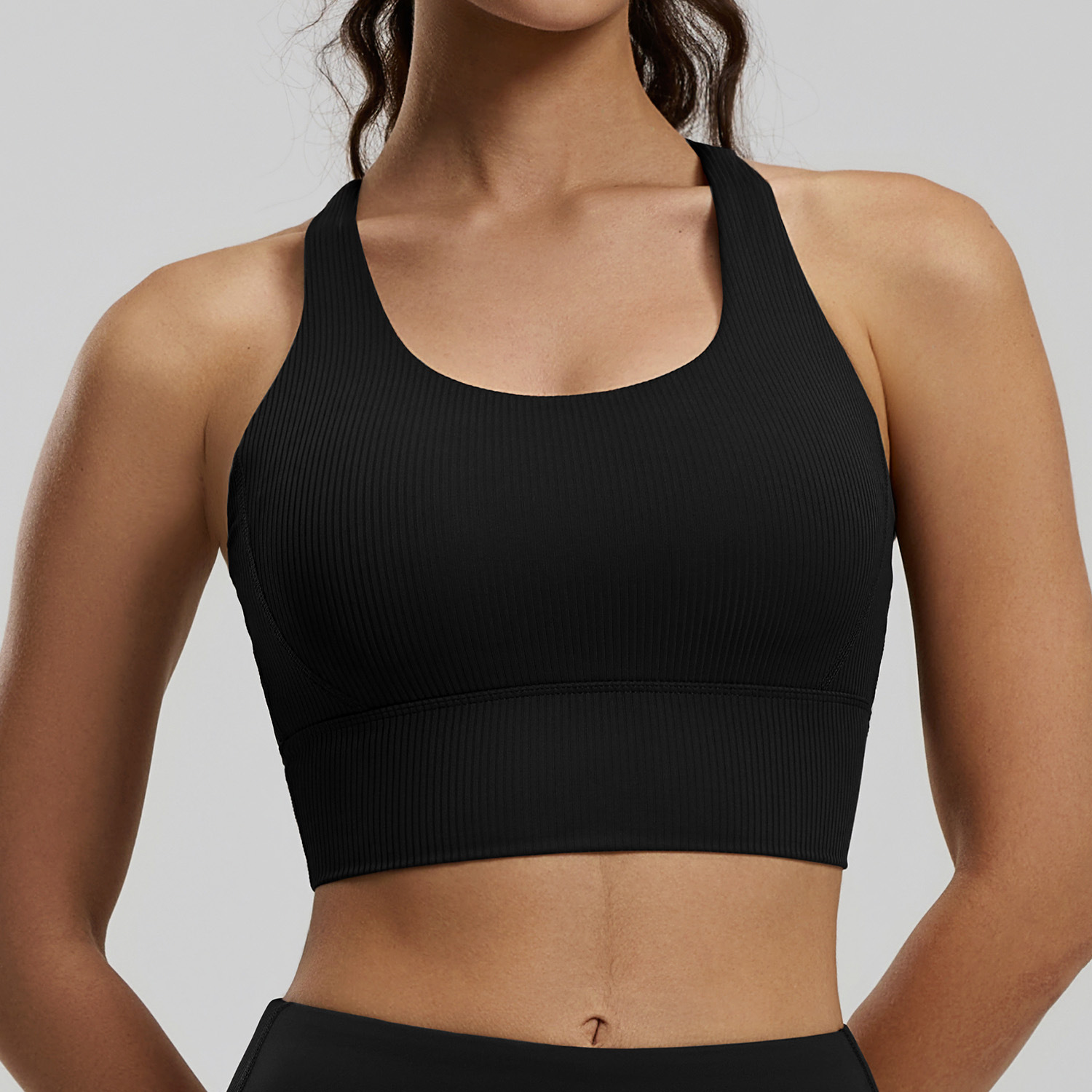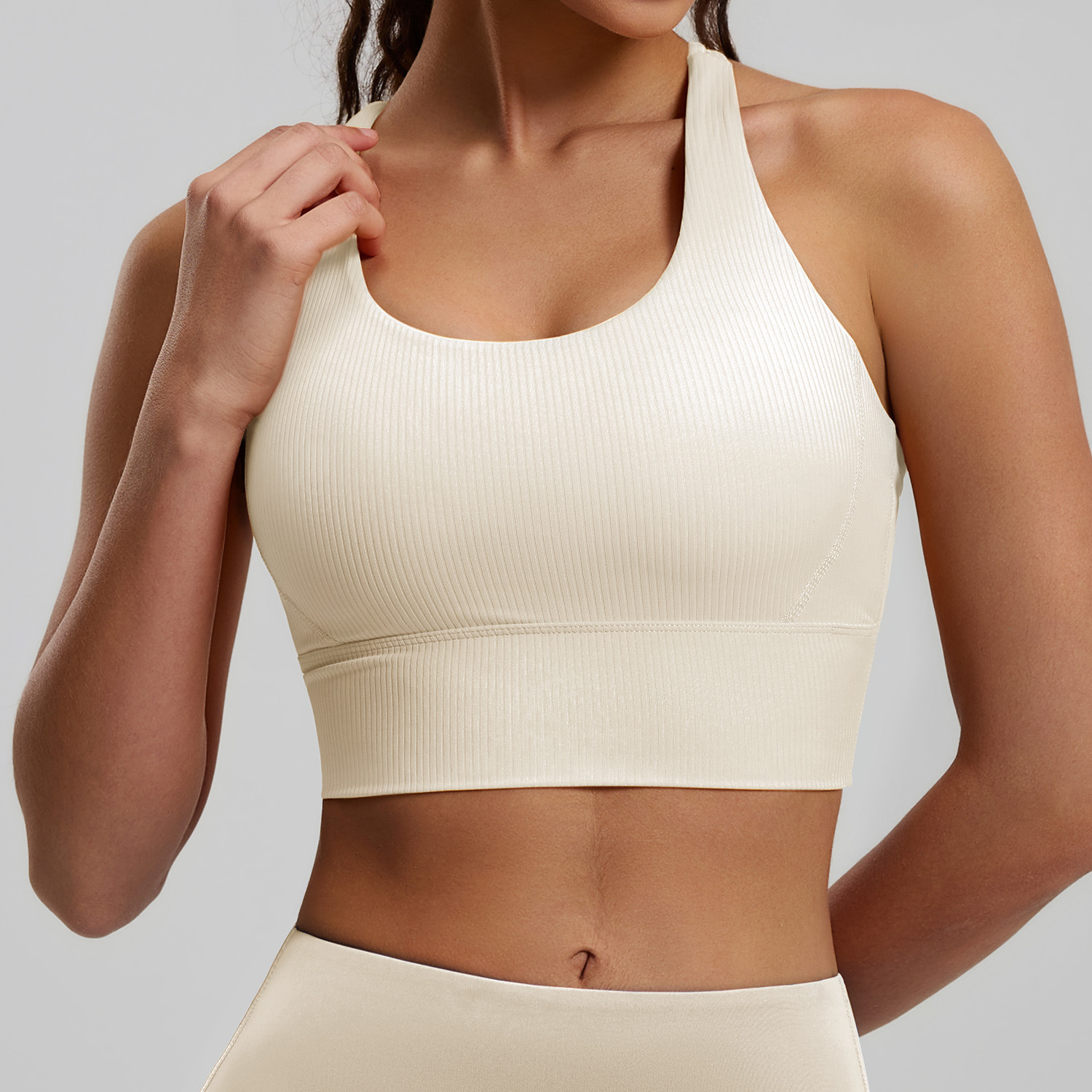 Juyitang 새로운 고정 가슴 패드 충격 방지 요가 아름다운 등 스트라이프 백 크로스 얇은 어깨 스트랩 스포츠 속옷