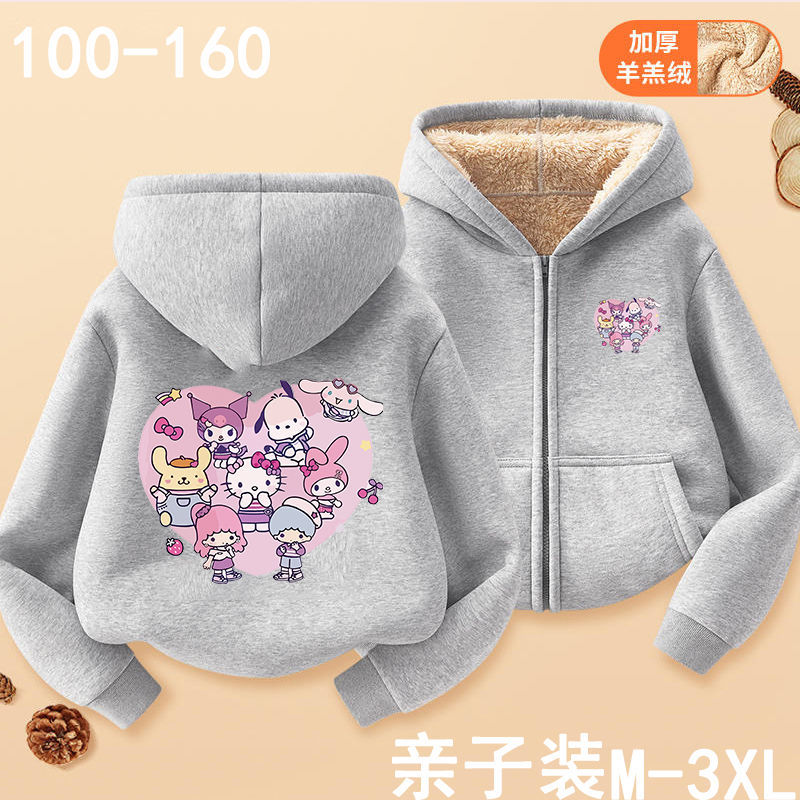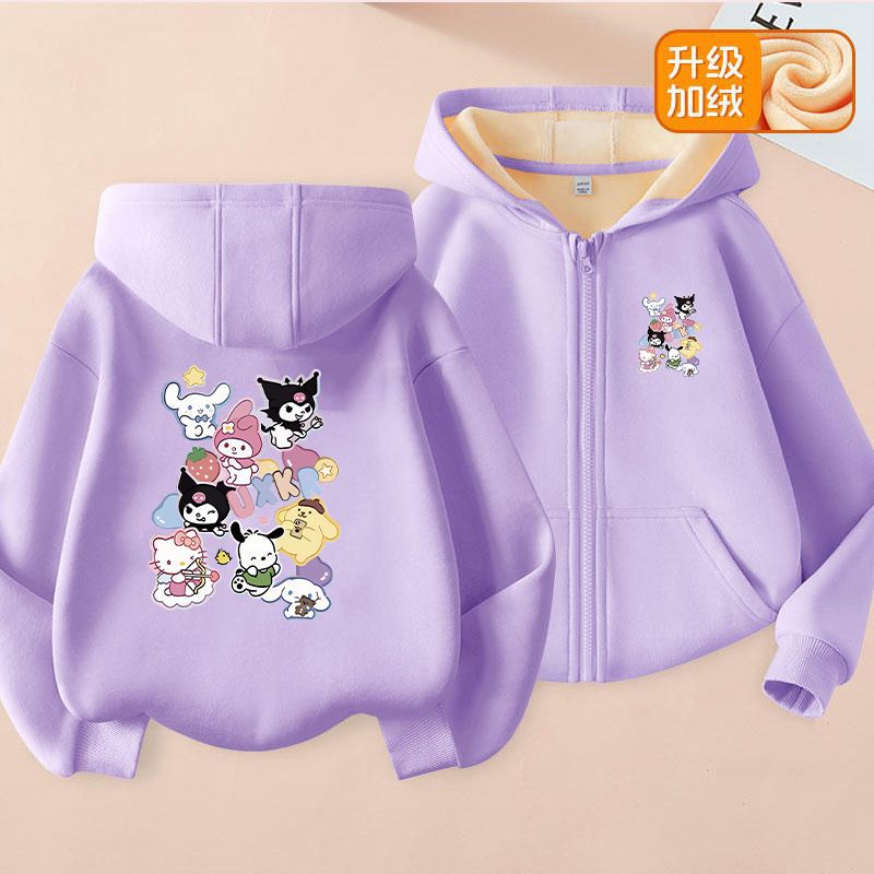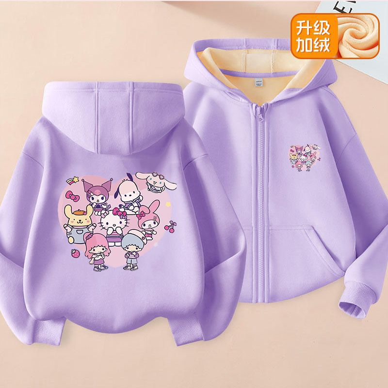 산리오 가을과 겨울 소녀 지퍼 코트 봄 2024 새로운 서양식 어린이 중 큰 어린이 후드 카디건 스웨터스토어 가기
