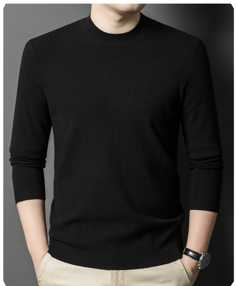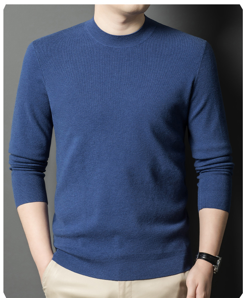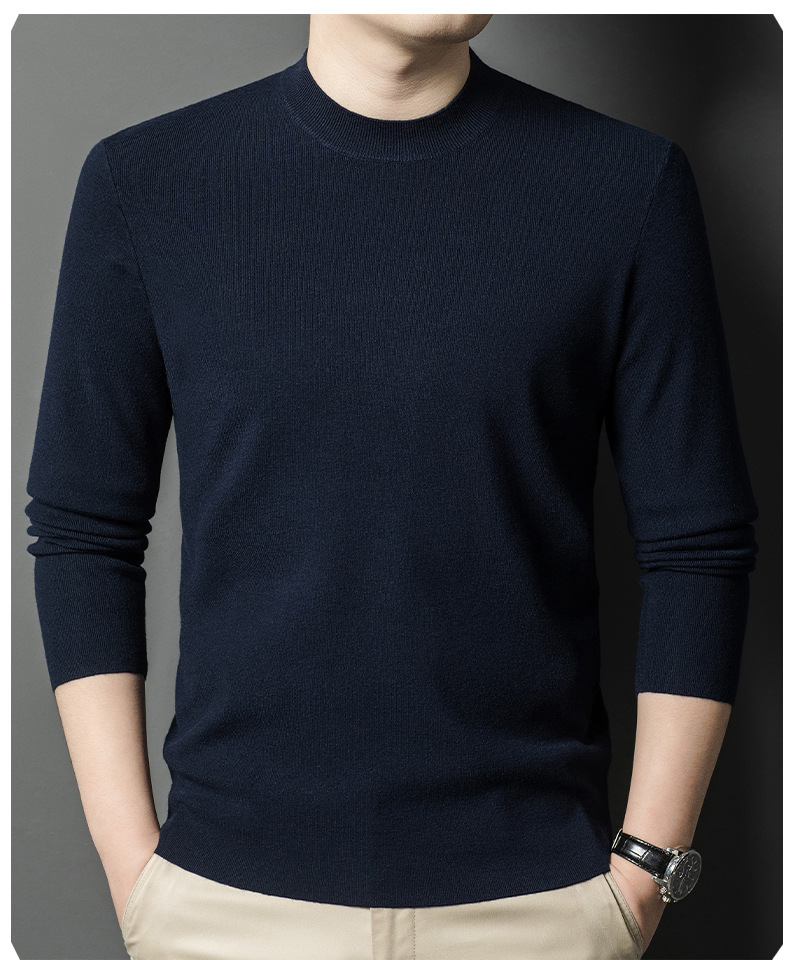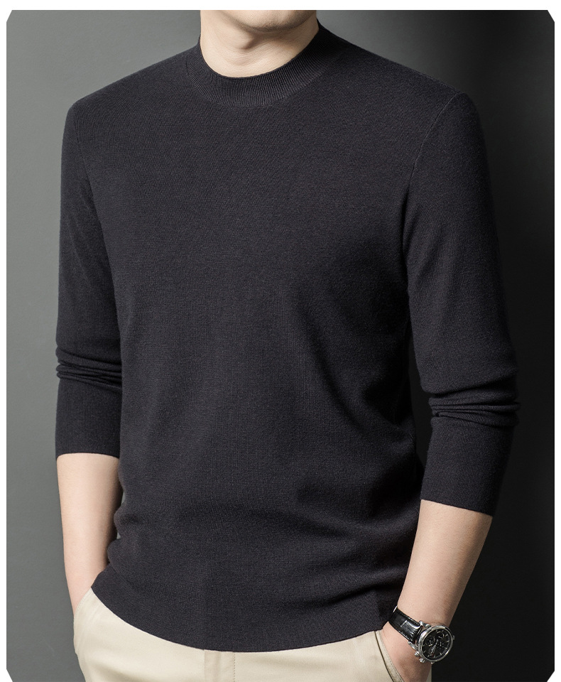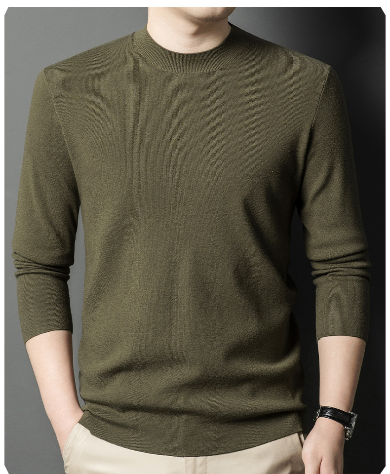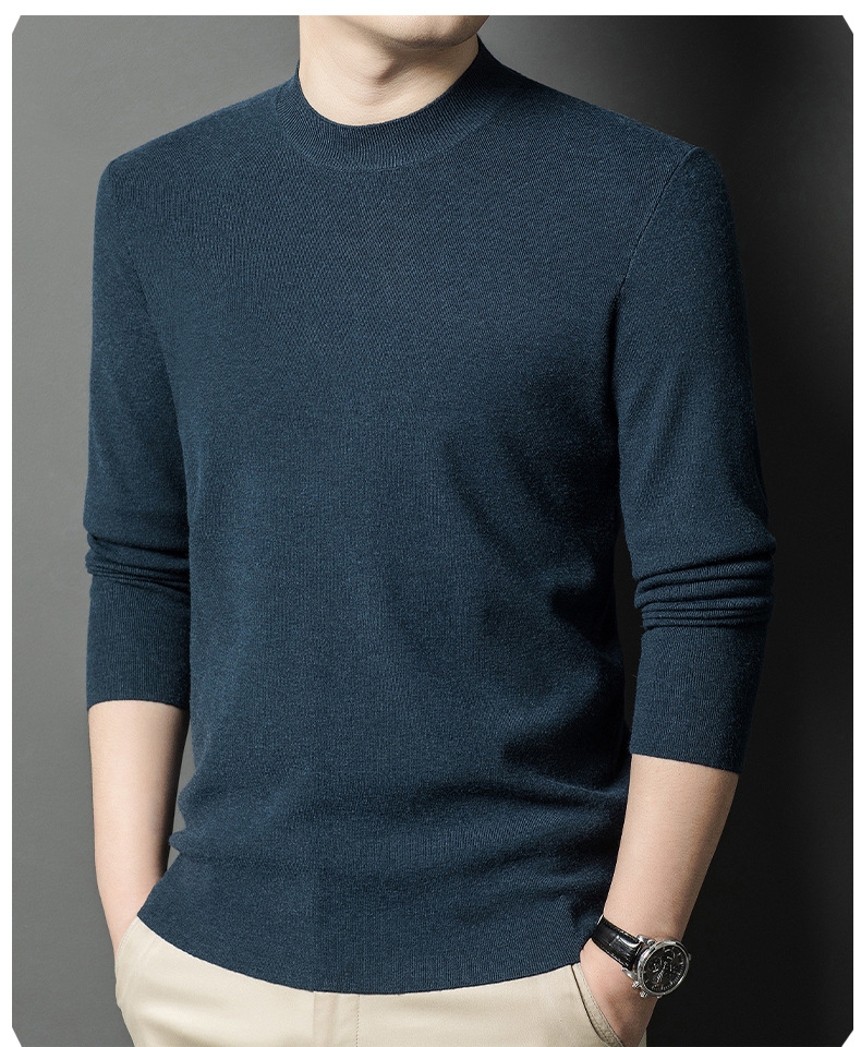국경을 넘나 드는 가을과 겨울 남자 중년 아빠를위한 최악의 반 터틀넥 따뜻한 스웨터 솔리드 컬러 니트베이스 셔츠스토어 가기