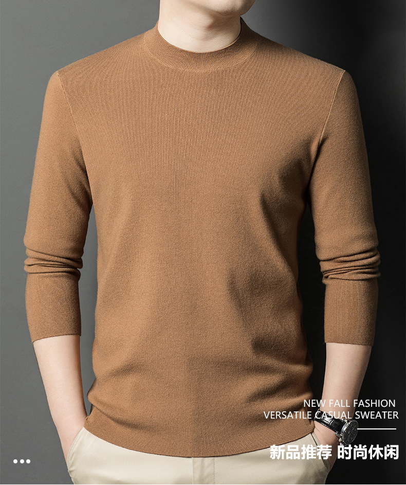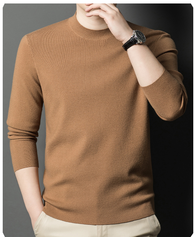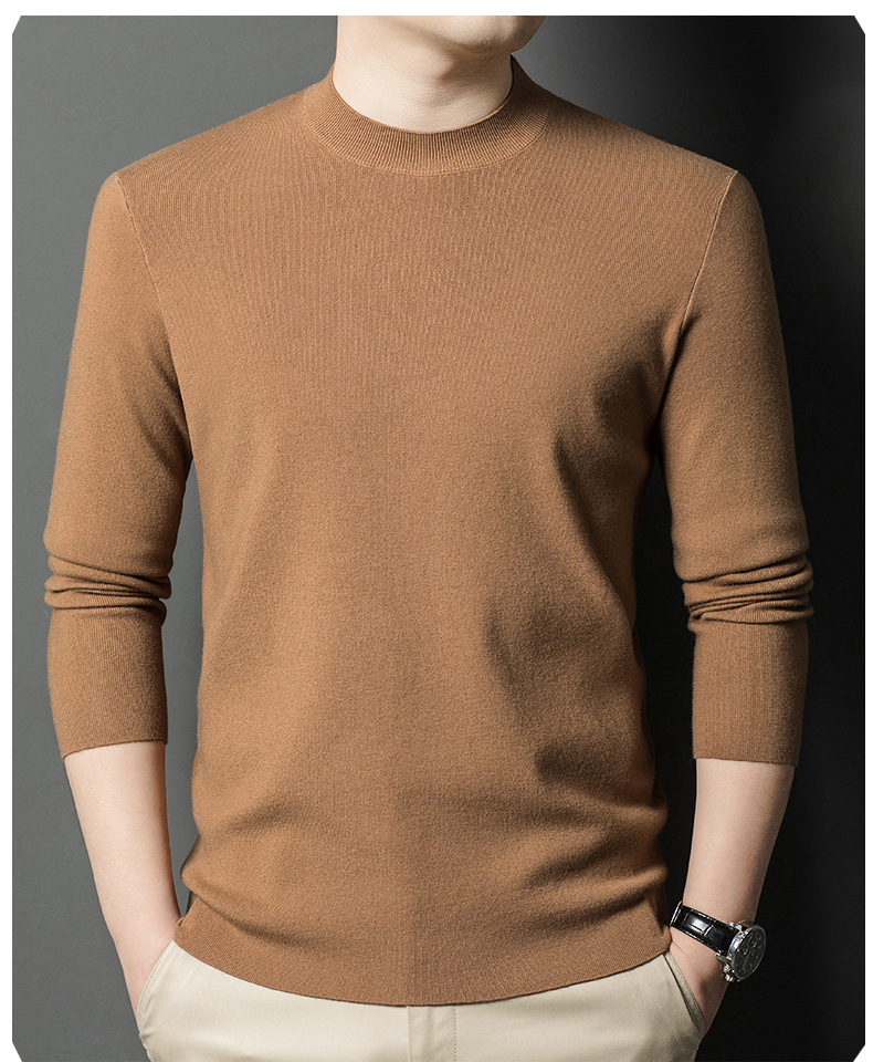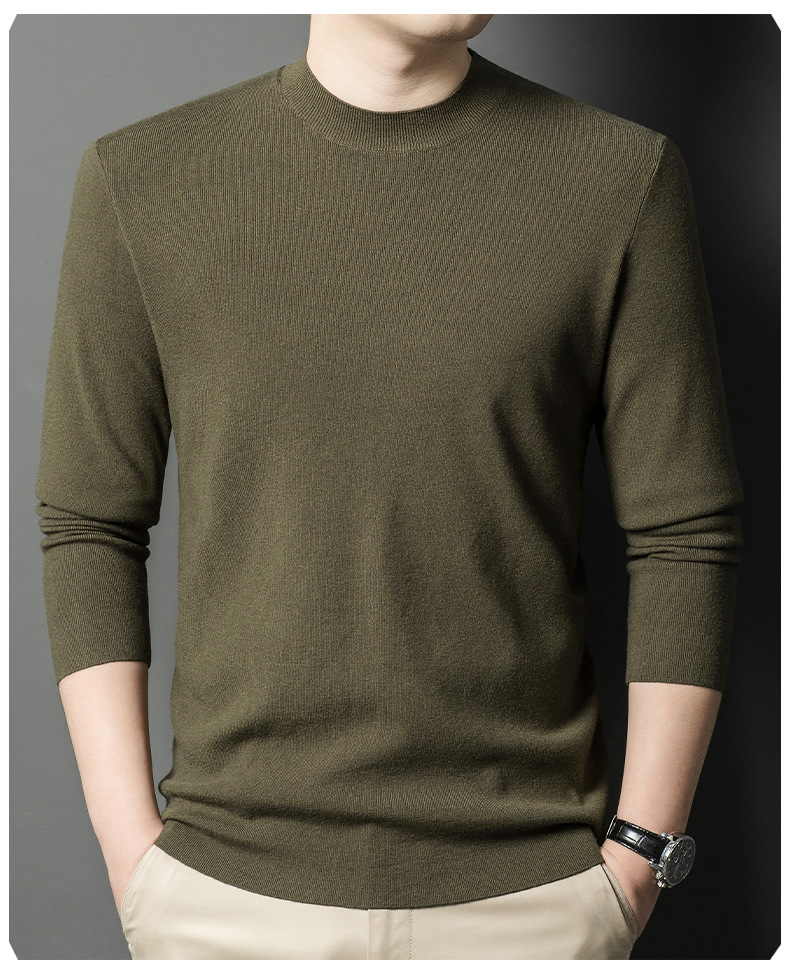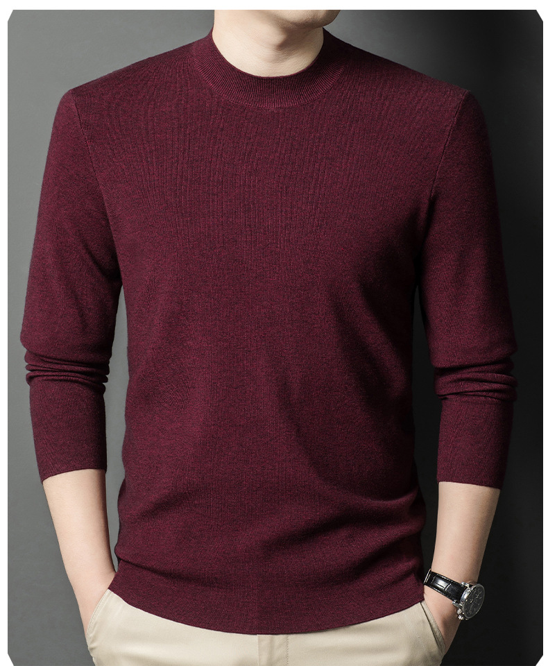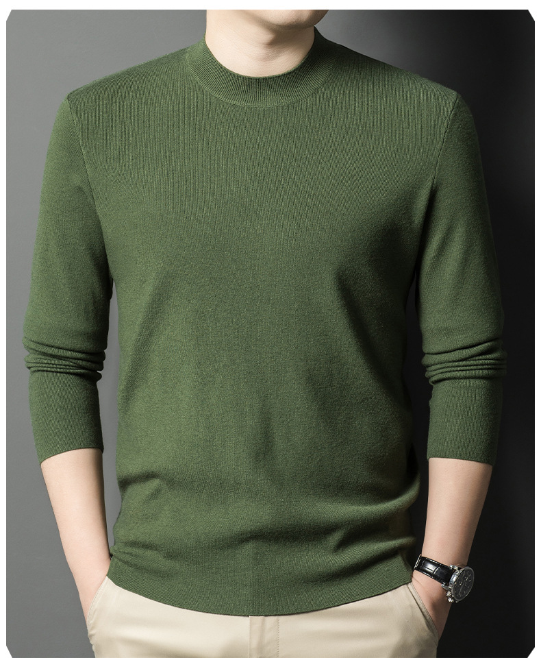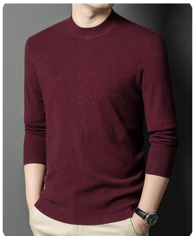 국경을 넘나 드는 가을과 겨울 남자 중년 아빠를위한 최악의 반 터틀넥 따뜻한 스웨터 솔리드 컬러 니트베이스 셔츠스토어 가기