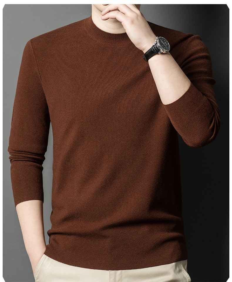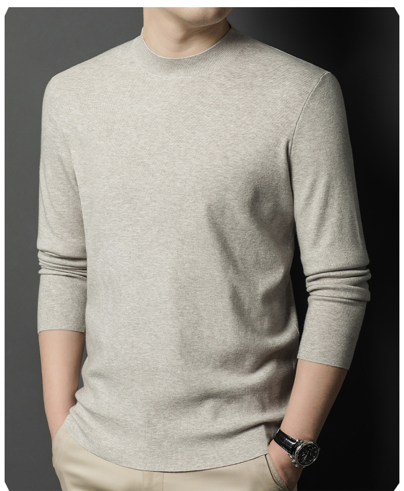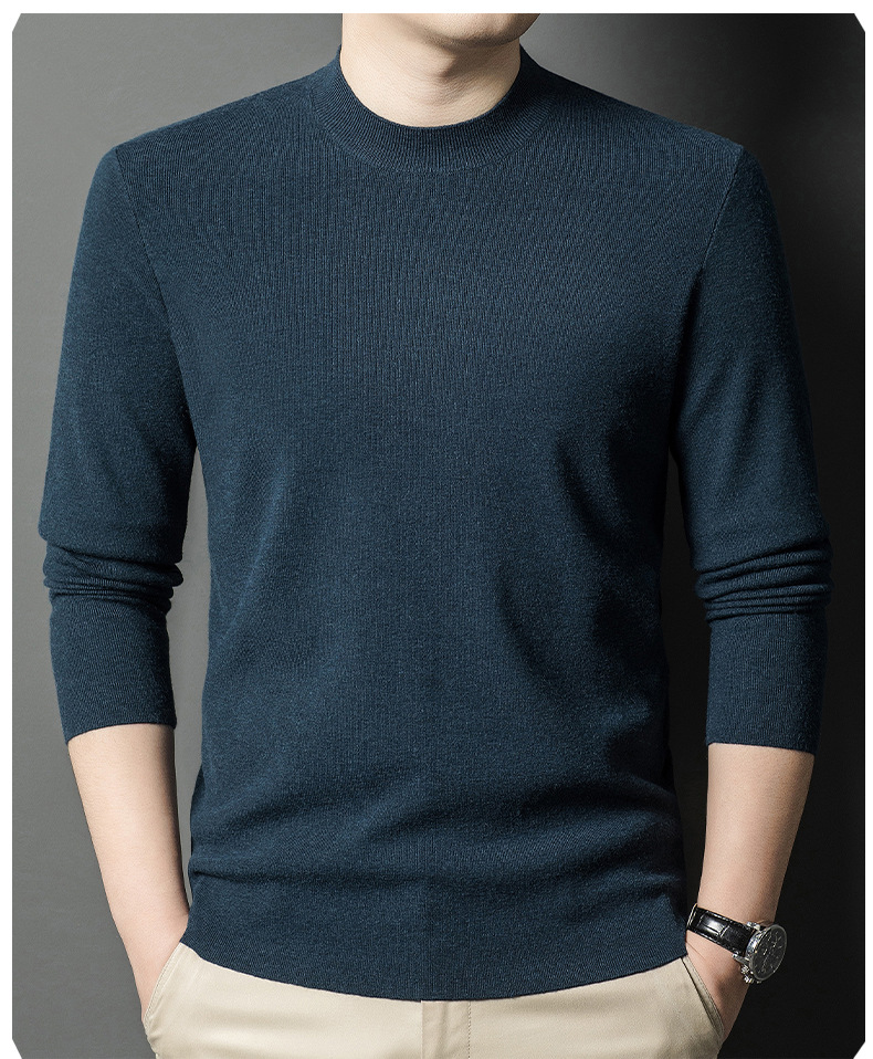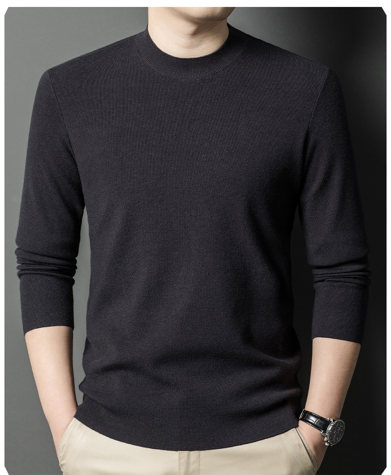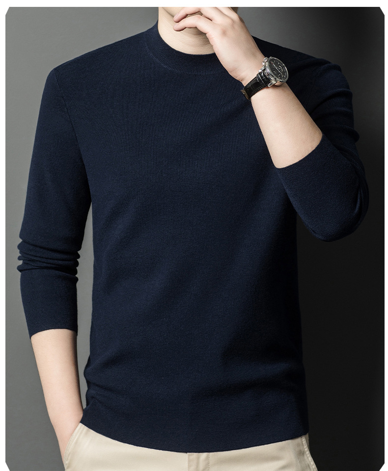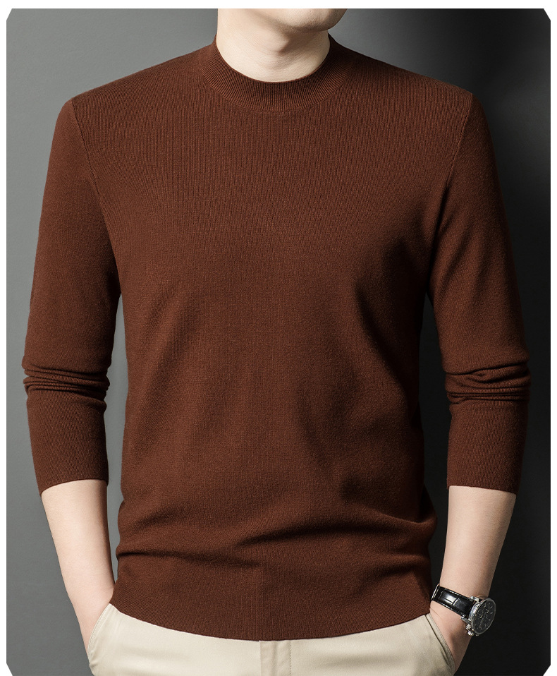 국경을 넘나 드는 가을과 겨울 남자 중년 아빠를위한 최악의 반 터틀넥 따뜻한 스웨터 솔리드 컬러 니트베이스 셔츠스토어 가기