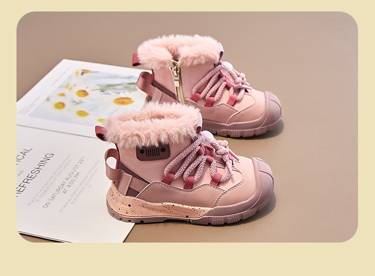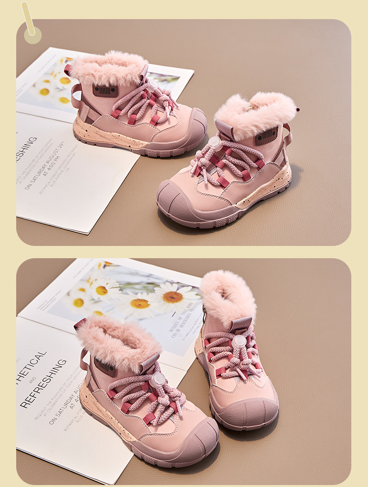 어린이 면화 2024 겨울 새로운 야외 소녀 운동화 플러스 큰 소년을위한 푹신한 부츠