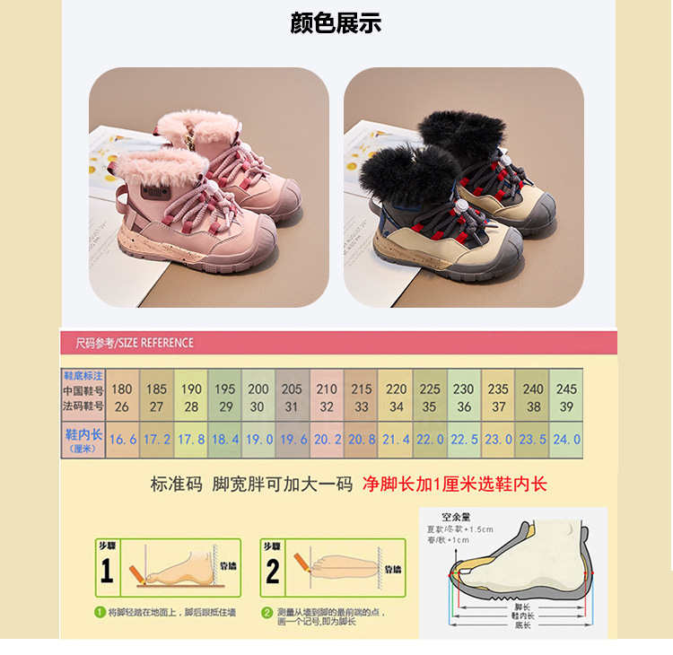 어린이 면화 2024 겨울 새로운 야외 소녀 운동화 플러스 큰 소년을위한 푹신한 부츠스토어 가기
