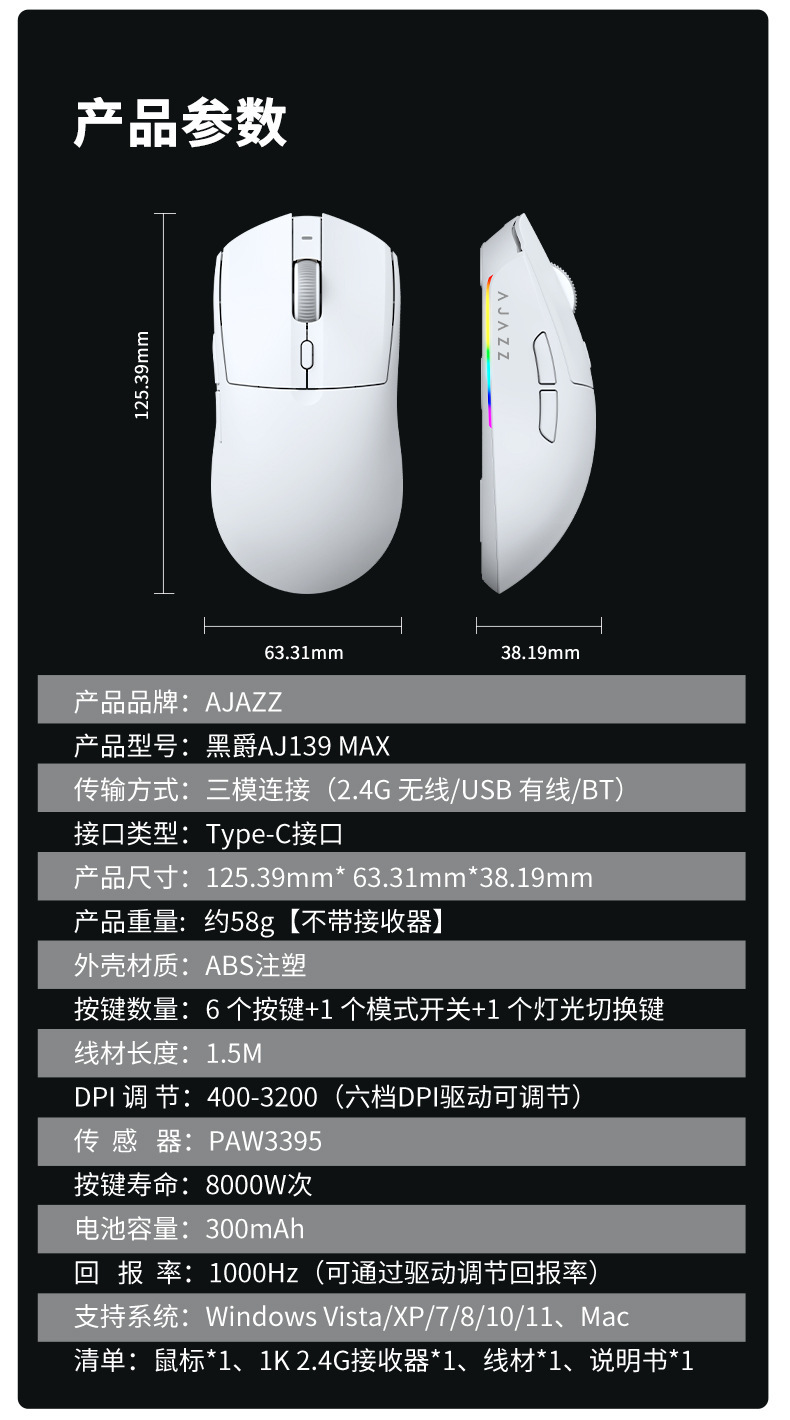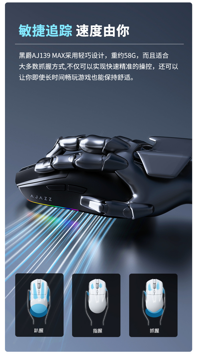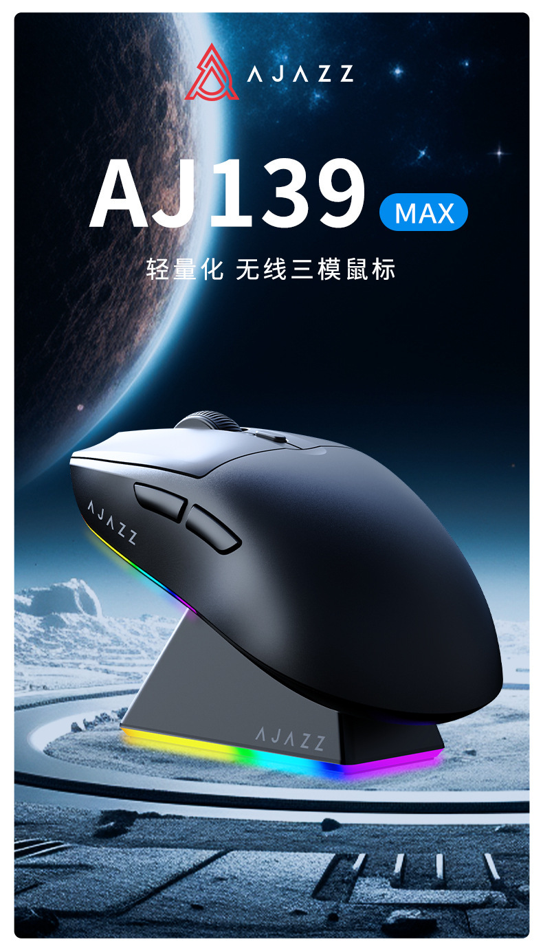 블랙조이 AJ139 V2 MC 3모드 블루투스 2.4G 게이밍 경량 충전식 마우스 3395 충전 스탠드 포함