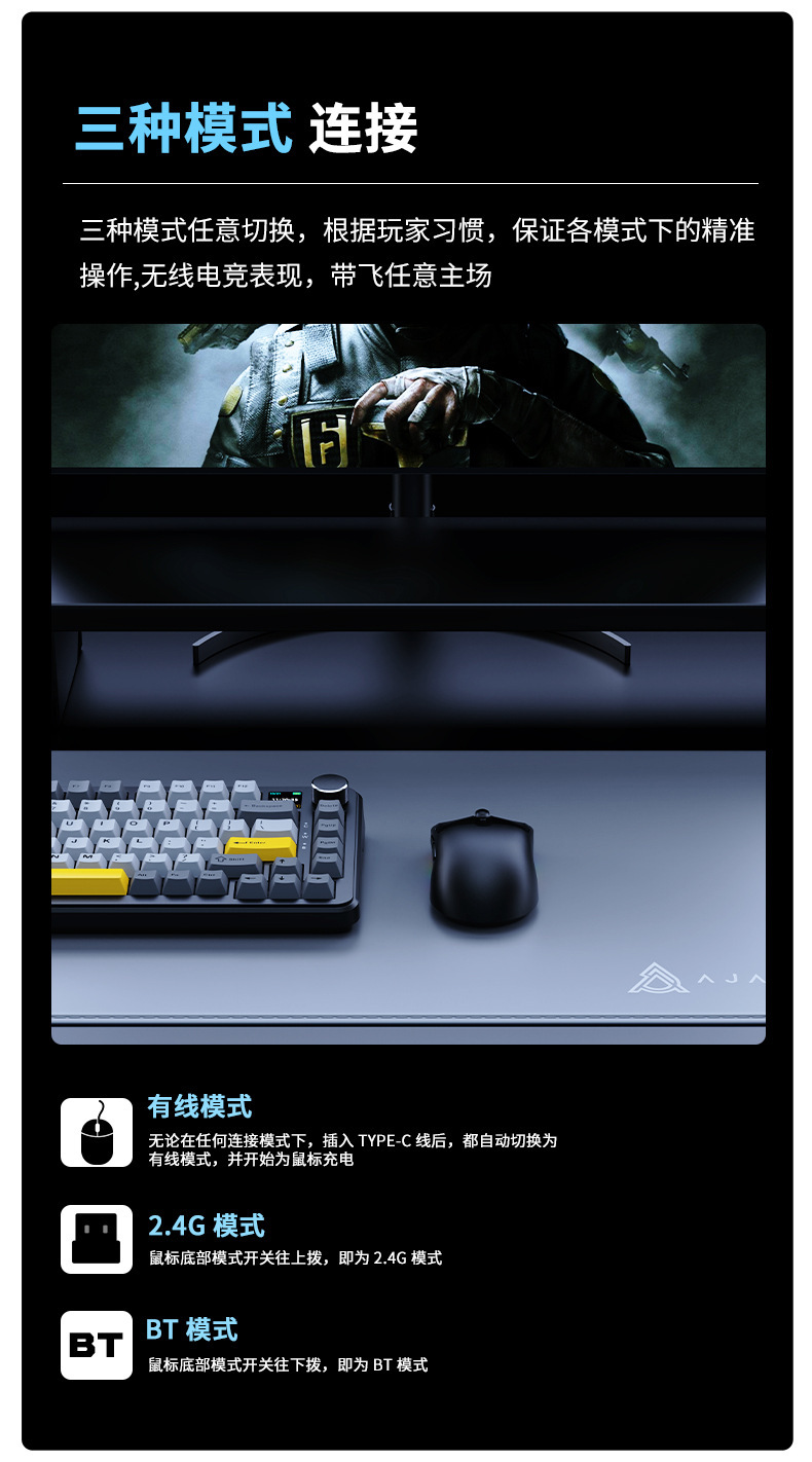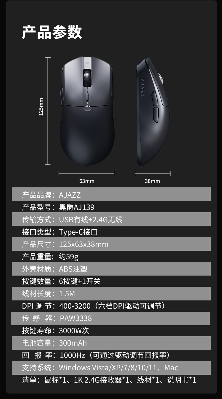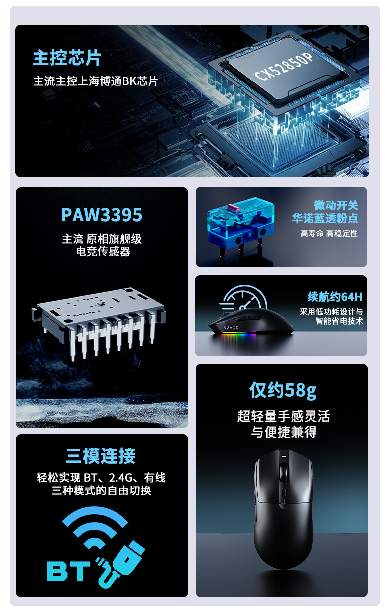 블랙조이 AJ139 V2 MC 3모드 블루투스 2.4G 게이밍 경량 충전식 마우스 3395 충전 스탠드 포함