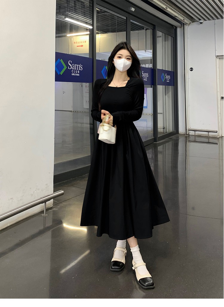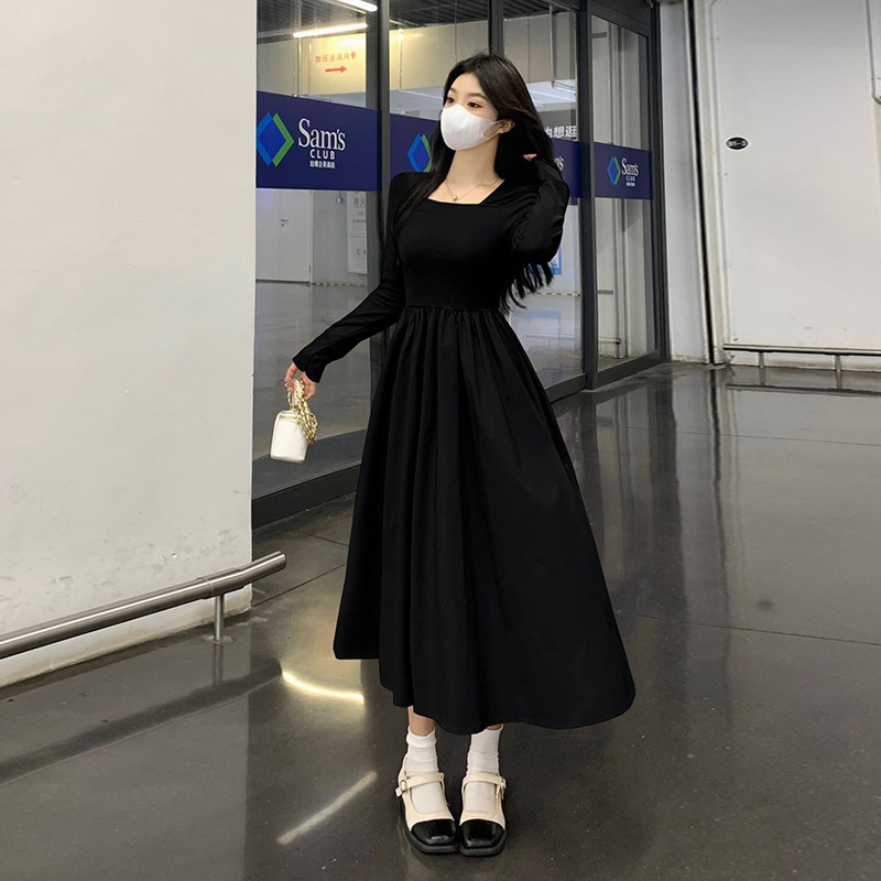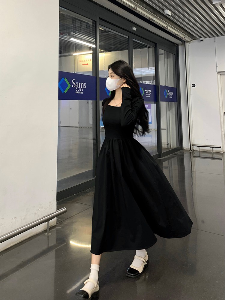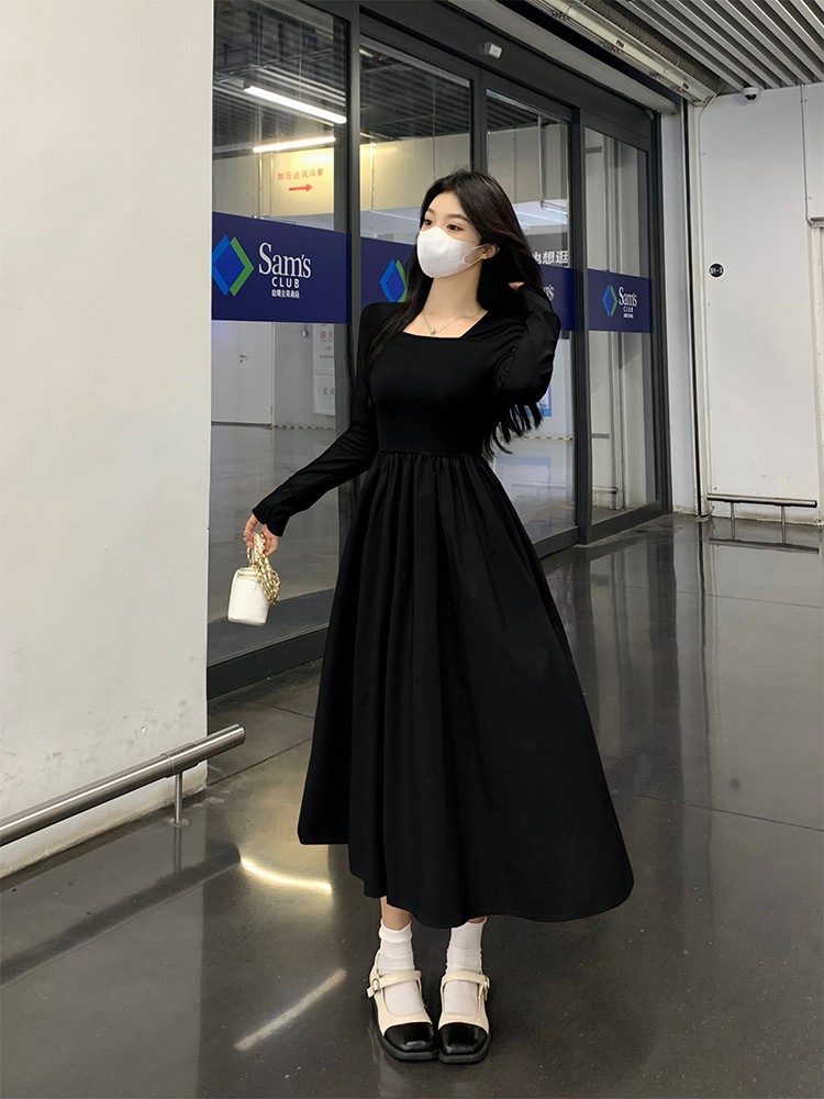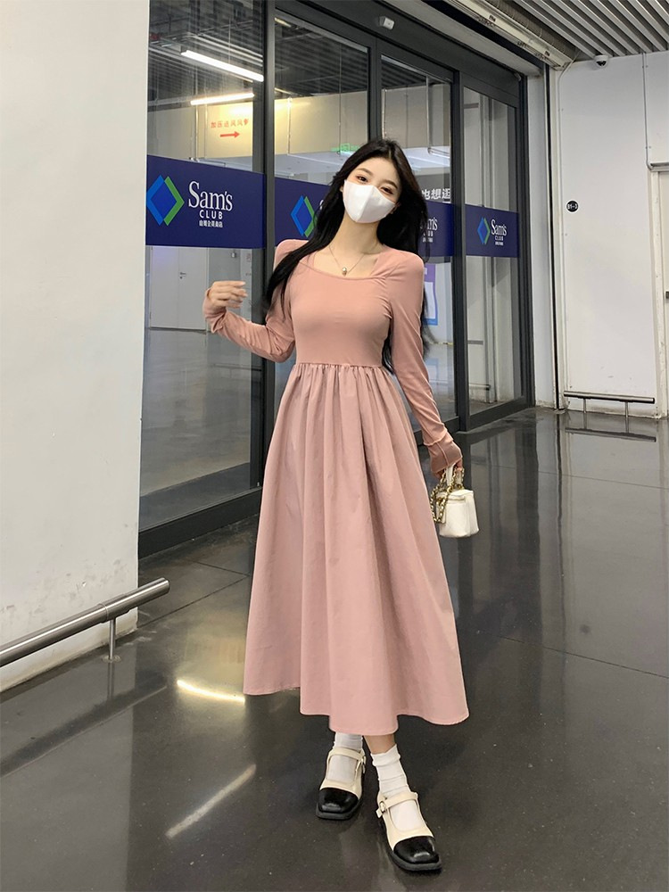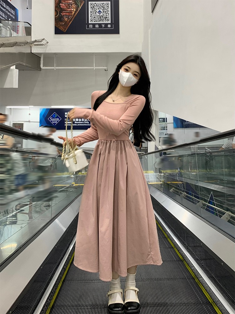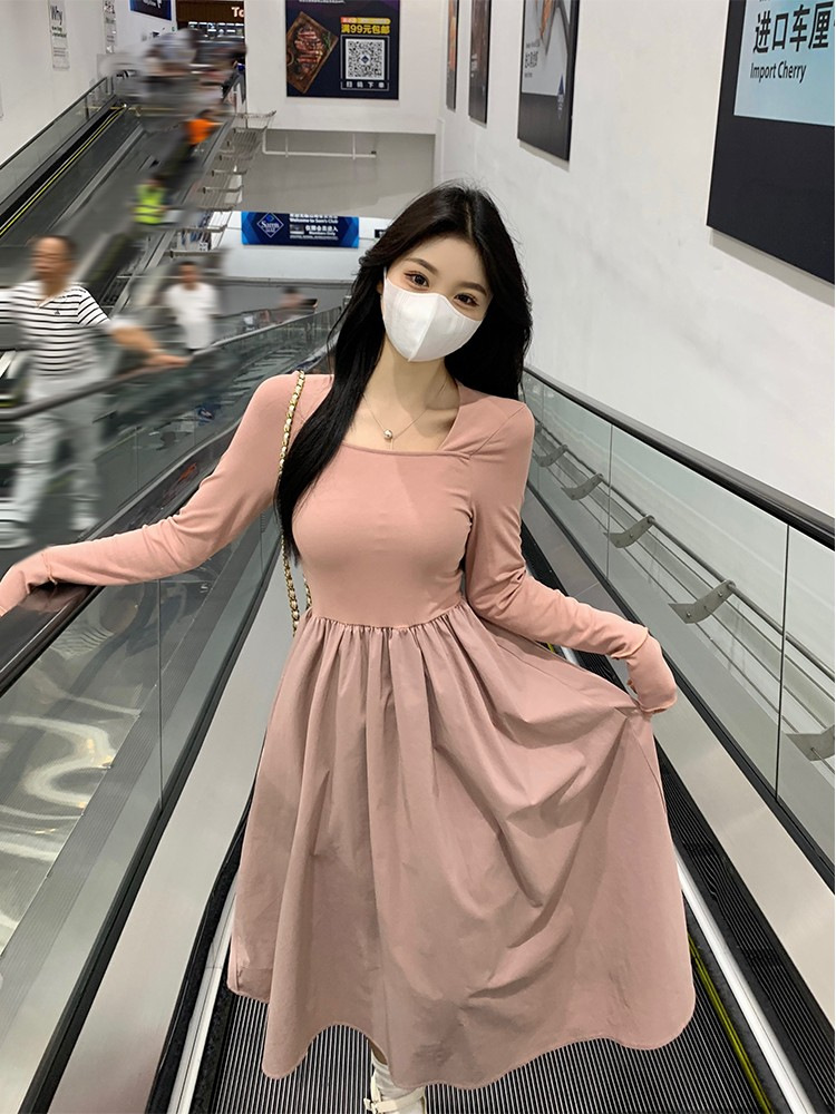 프랑스 스타일 스퀘어 칼라 긴팔 원피스 여성 초가을 작은 하이 엔드 기질 타이트 허리 부드러운 스타일 요정 원피스스토어 가기