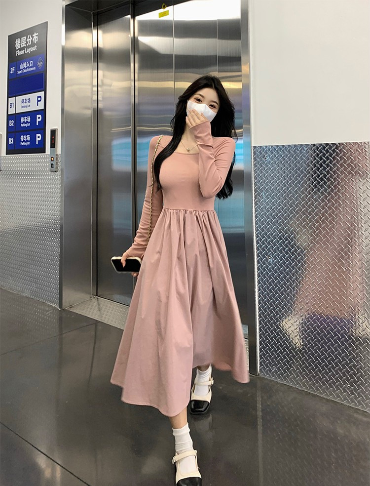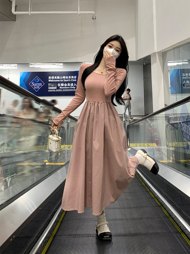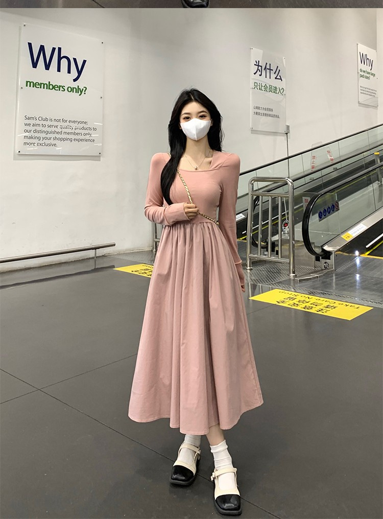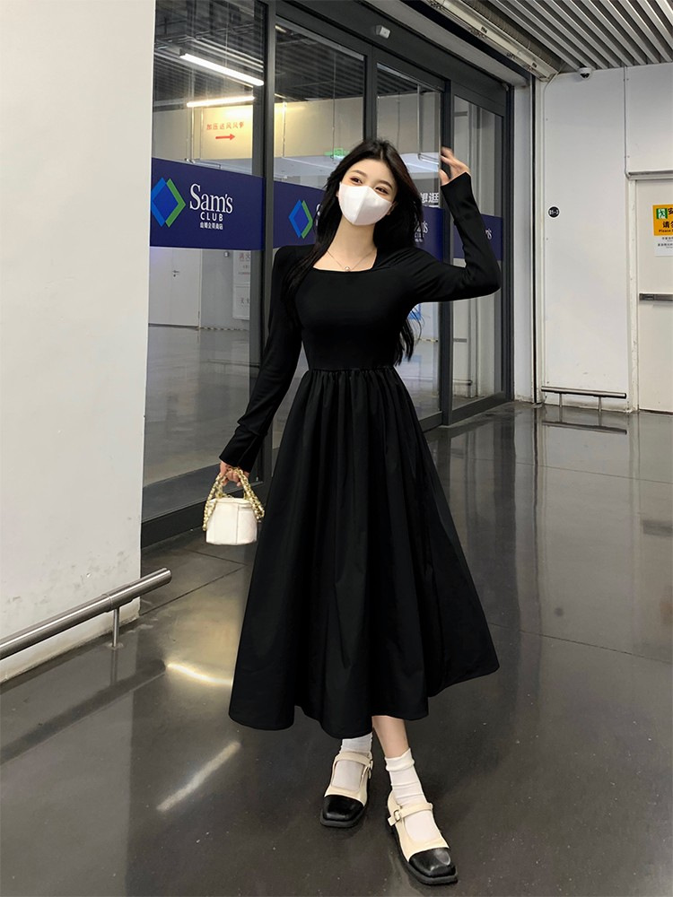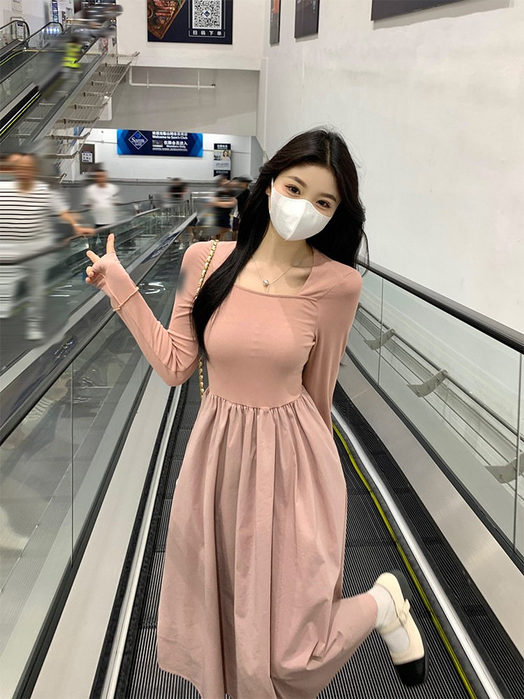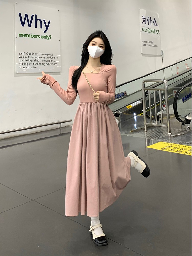 프랑스 스타일 스퀘어 칼라 긴팔 원피스 여성 초가을 작은 하이 엔드 기질 타이트 허리 부드러운 스타일 요정 원피스스토어 가기