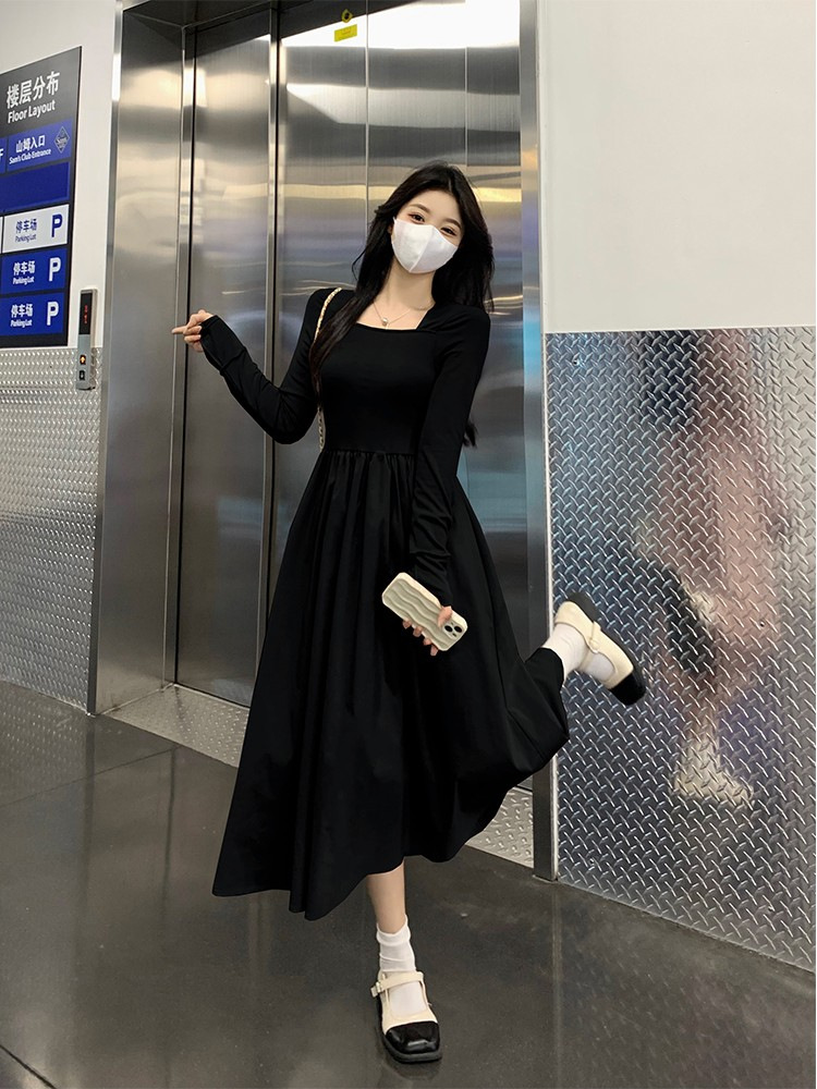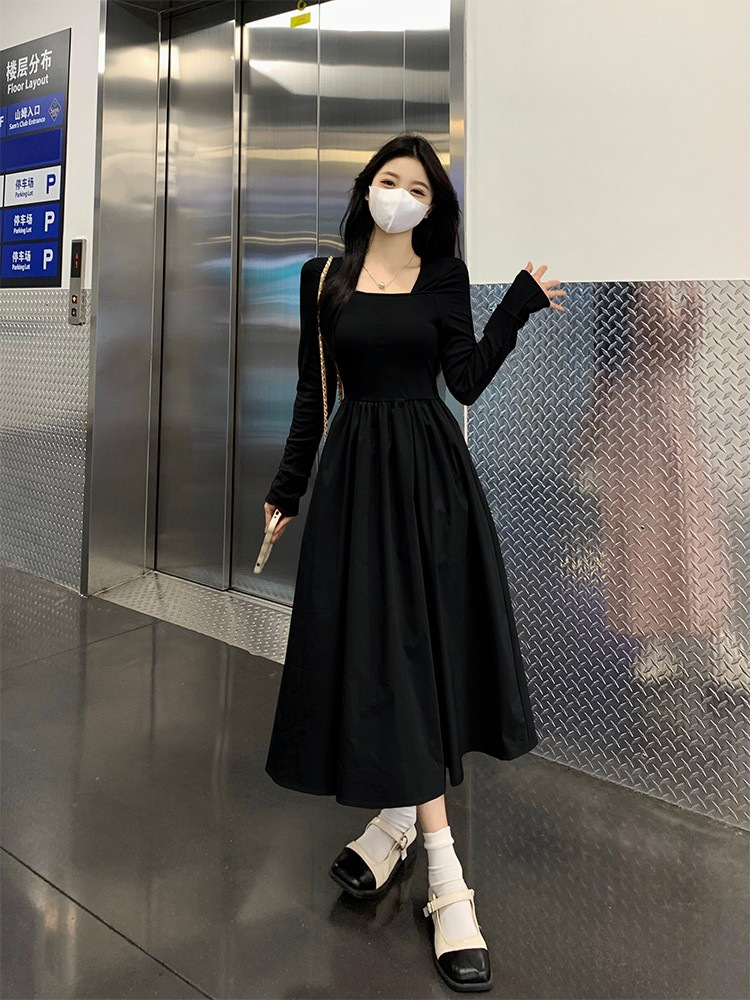 프랑스 스타일 스퀘어 칼라 긴팔 원피스 여성 초가을 작은 하이 엔드 기질 타이트 허리 부드러운 스타일 요정 원피스