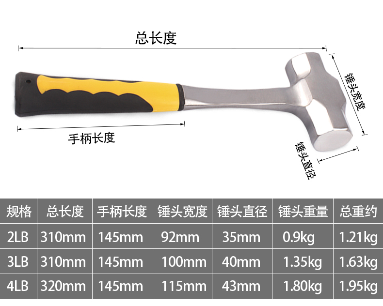 • 4파운드 일체형 팔각 망치 (품질 우수, 무게감 있음)