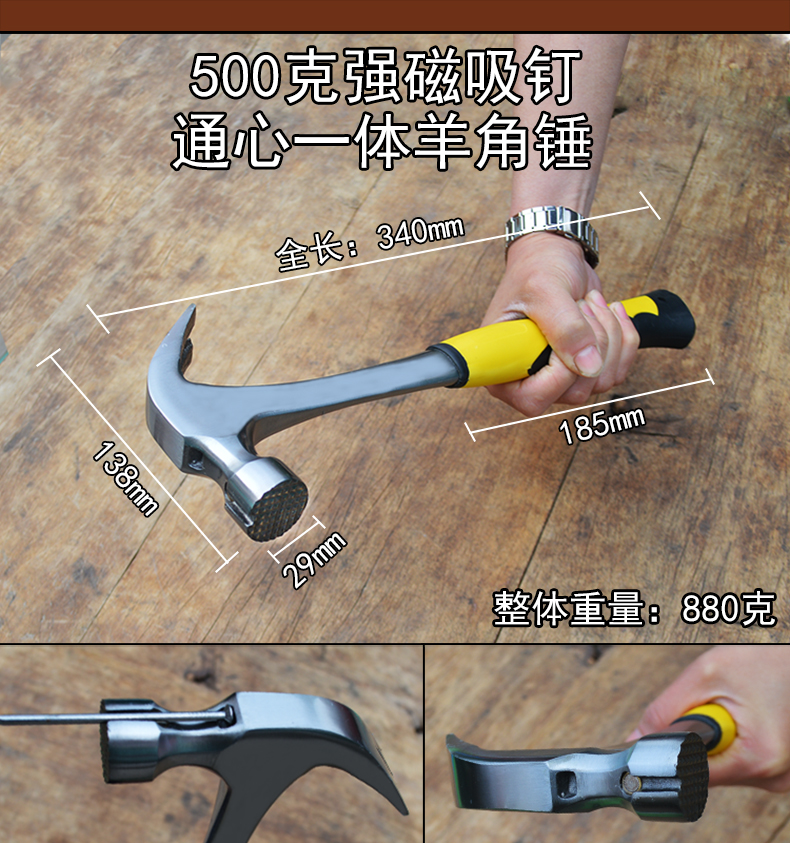 단단한 일체형 클로 해머 결합 된 해머 강한 자기 베이클라이트 네일 해머 스틸 파이프 클로 해머 스퀘어 헤드 목공 직각 해머스토어 가기