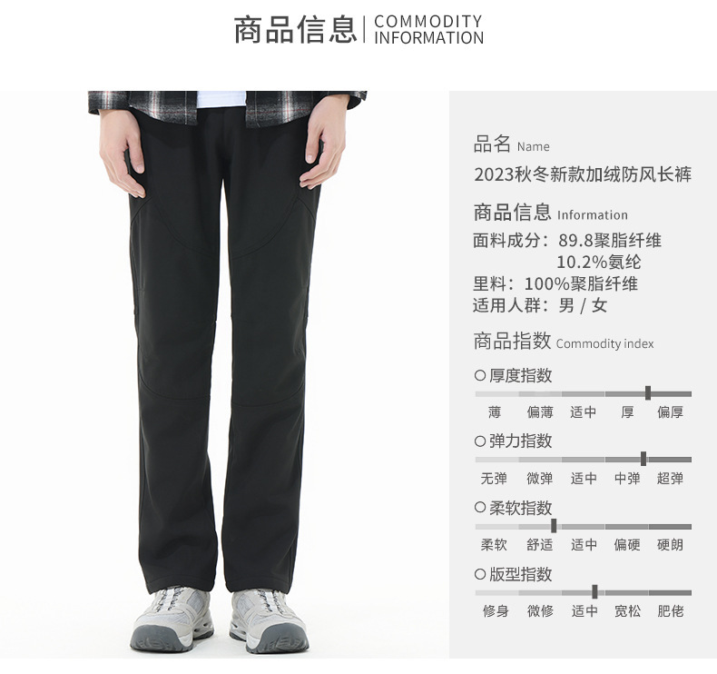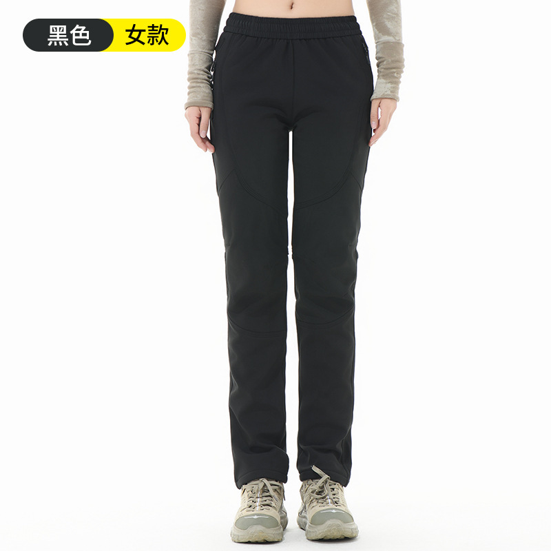 야외 소프트 쉘 바지 여성의 2024 새로운 방수 방풍 탄성 겨울 기모 등산 세트 남자 스키 바지