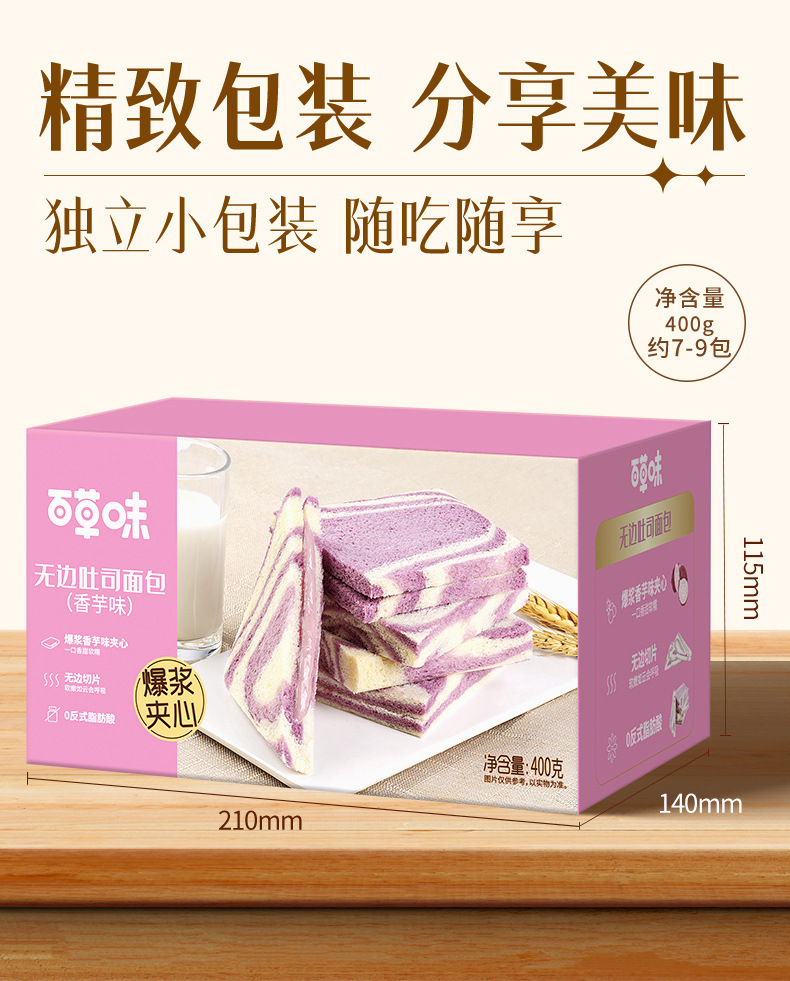 새로운 허브 토스트 타로 400g 아침 빵 음식 전체 상자 영양 케이크 간식 도매스토어 가기