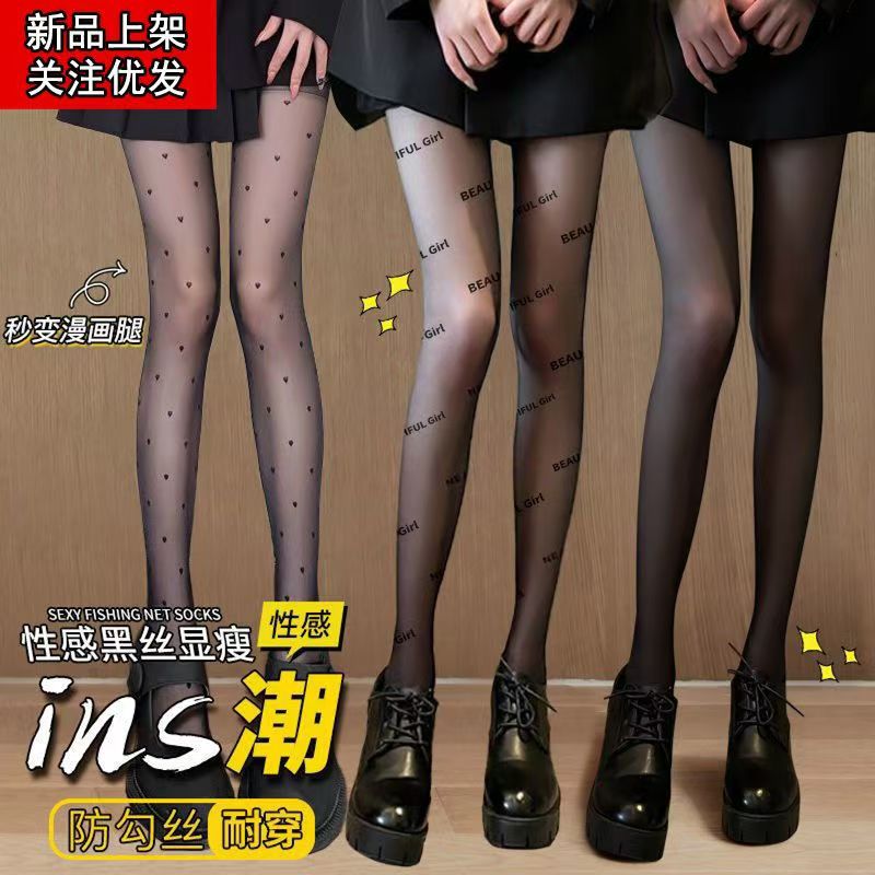 Pologram 기모 두꺼운 따뜻한 검은 실크 스타킹 가벼운 다리 섹시한 가짜 피부 레깅스 가을과 겨울 팬티 스타킹 편지 인쇄