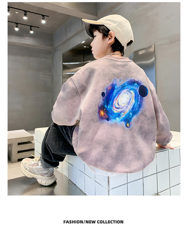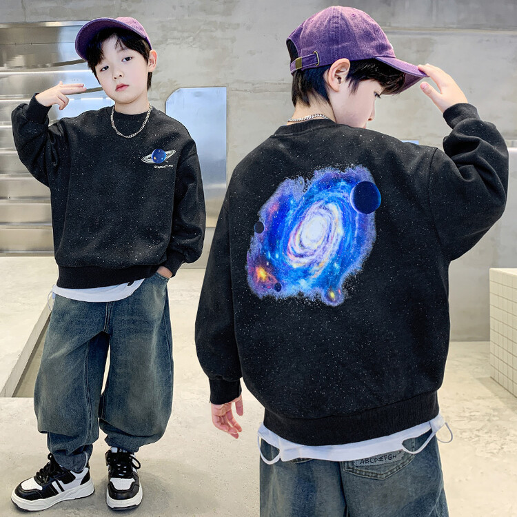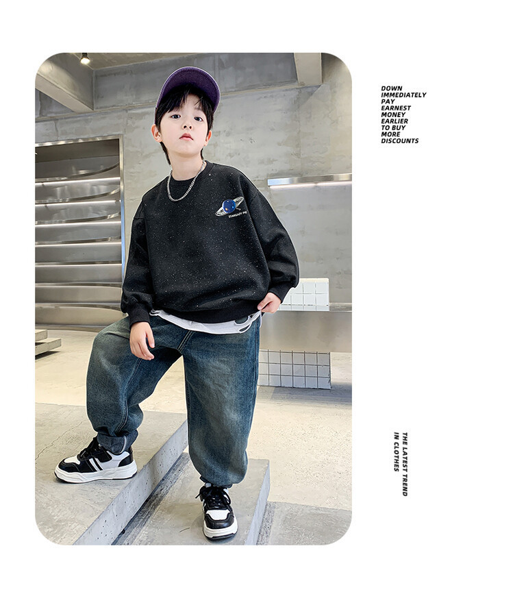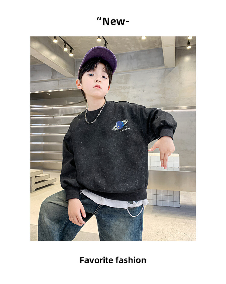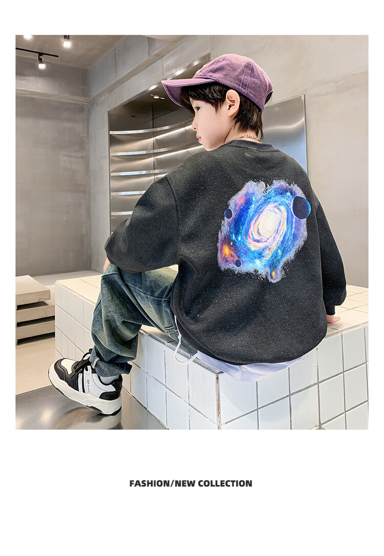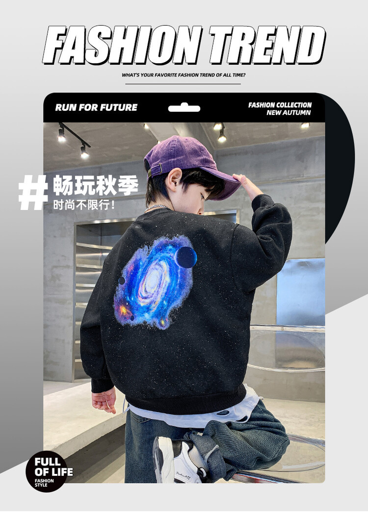 국경 소년들의 반사 땀 유행 가을 의류 한국 스타일 어린이 느슨한 스포츠 라운드 넥 긴 소매 탑 가을 어린이 의류스토어 가기
