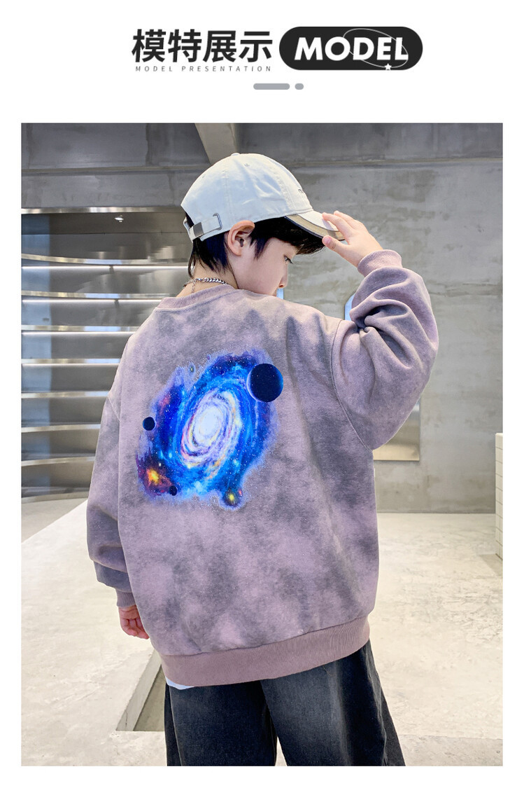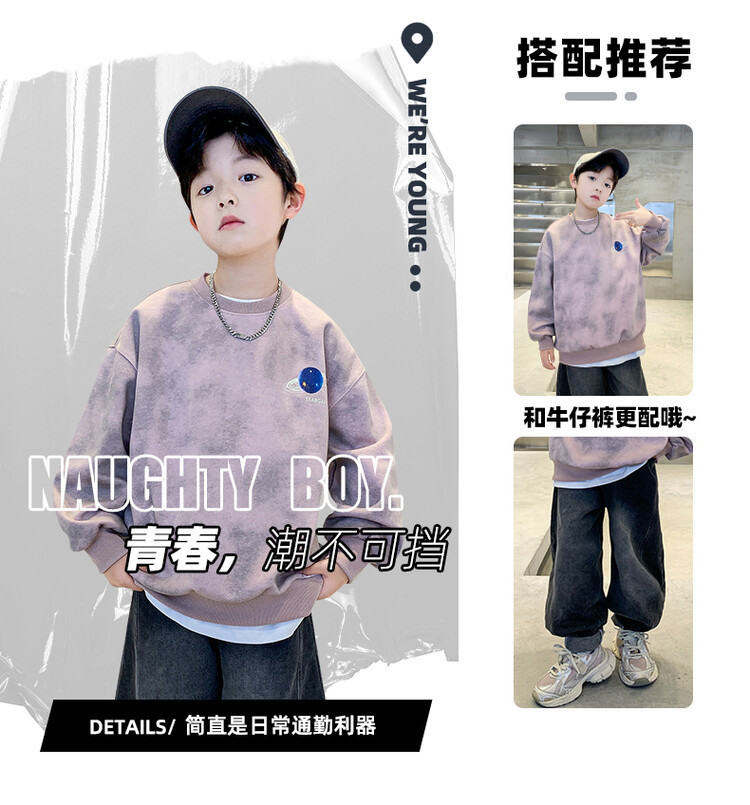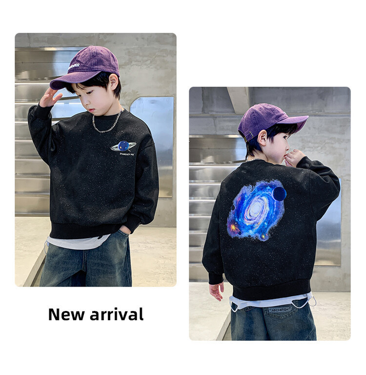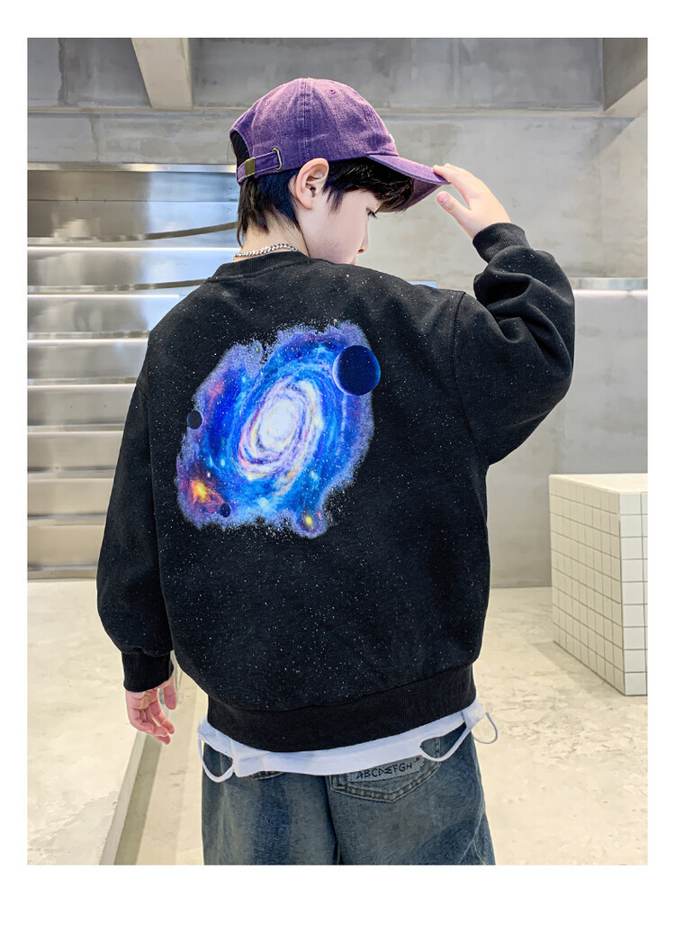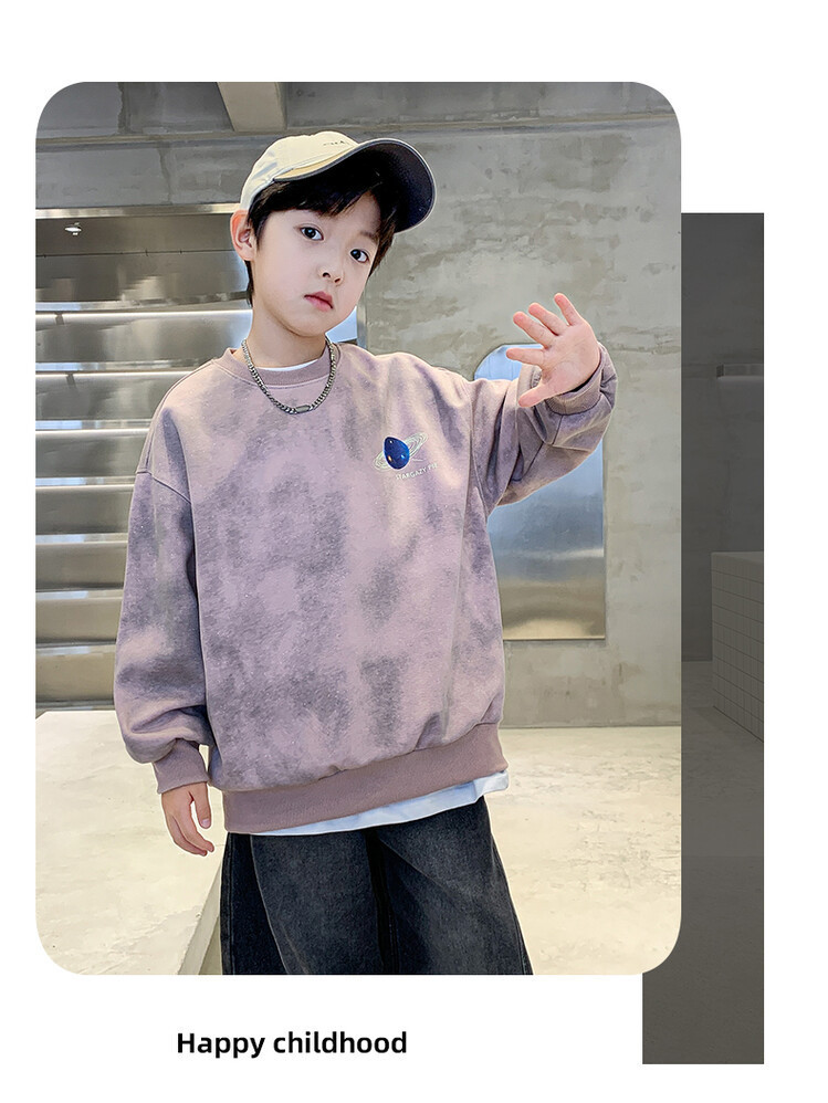 국경 소년들의 반사 땀 유행 가을 의류 한국 스타일 어린이 느슨한 스포츠 라운드 넥 긴 소매 탑 가을 어린이 의류스토어 가기
